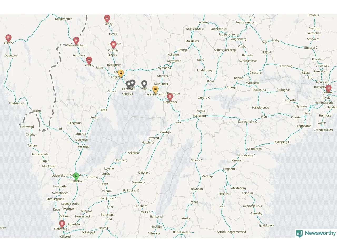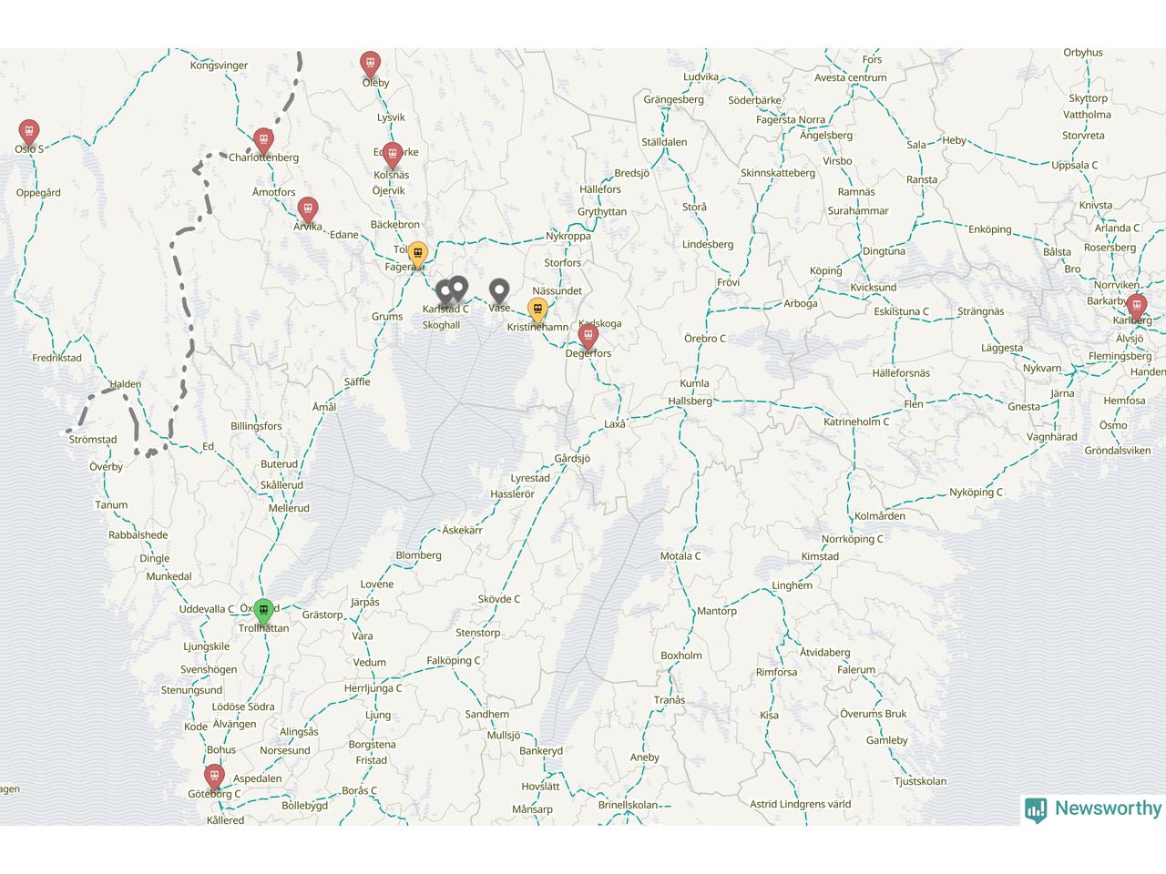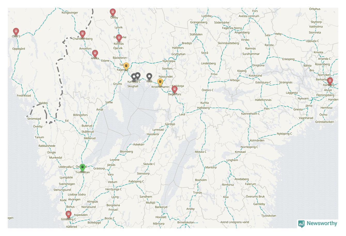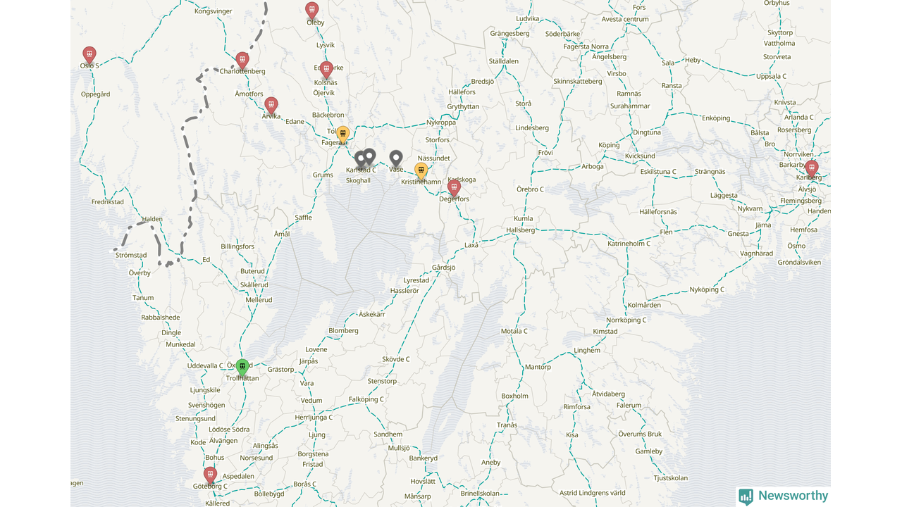 Kartdata från Mapbox, Newsworthy, OpenStreetMap och Trafikverket. Uppgifter om sträckor med passagerartrafik från jarnvag.net.