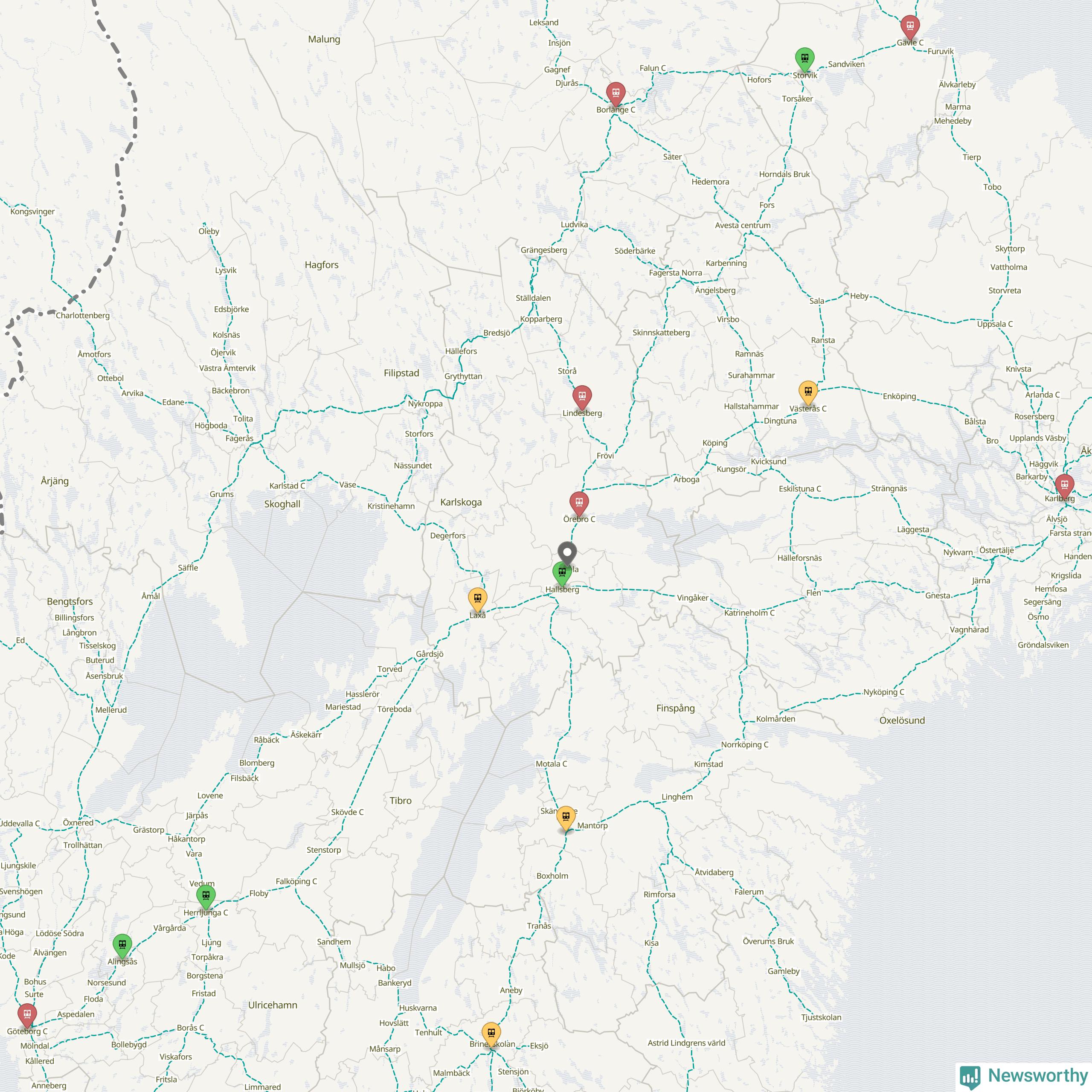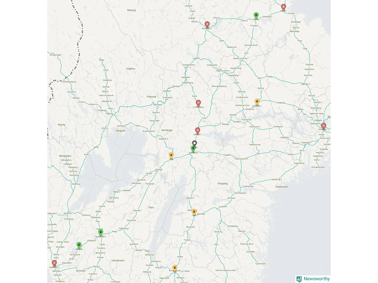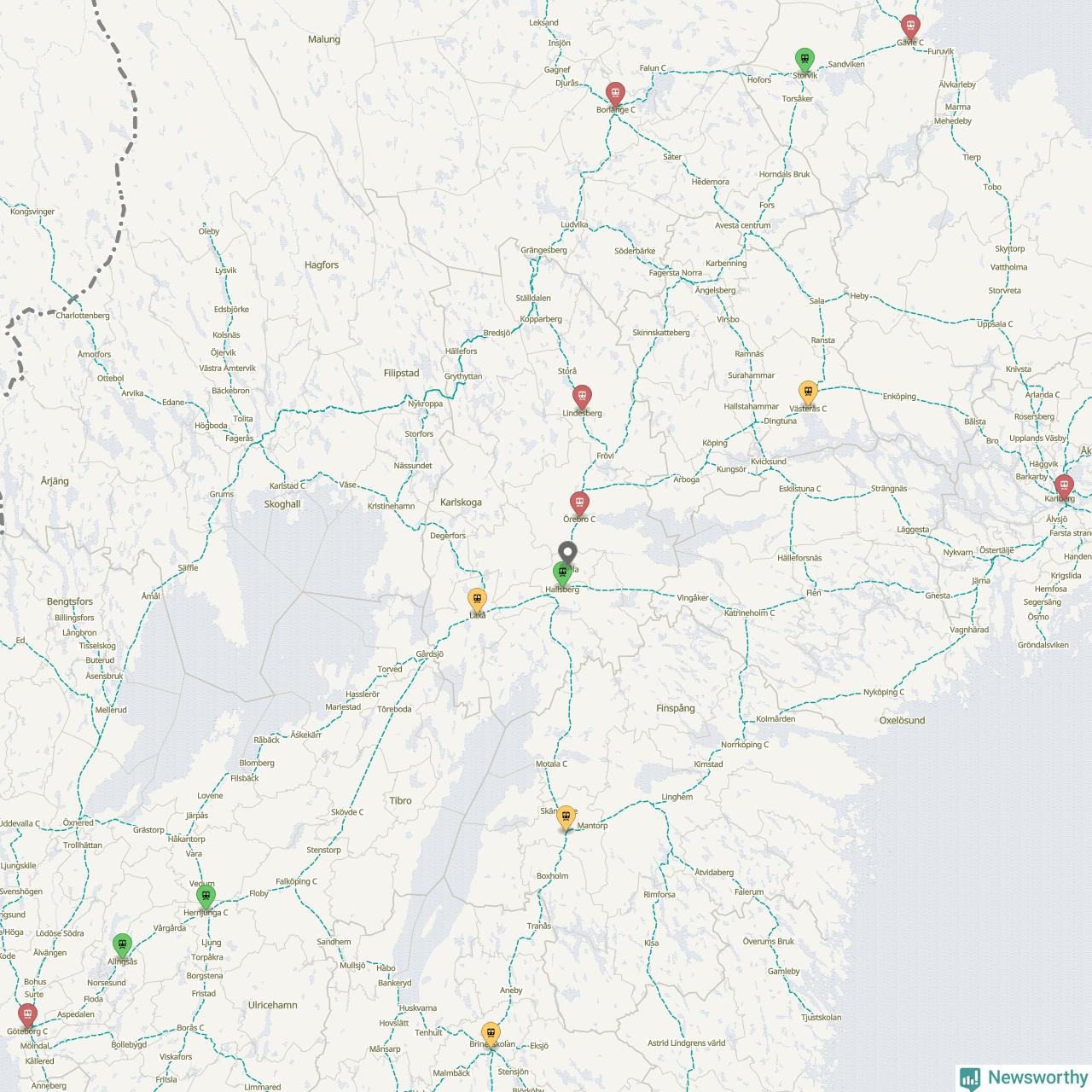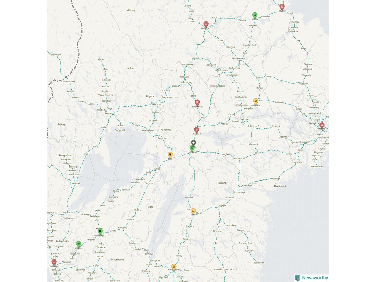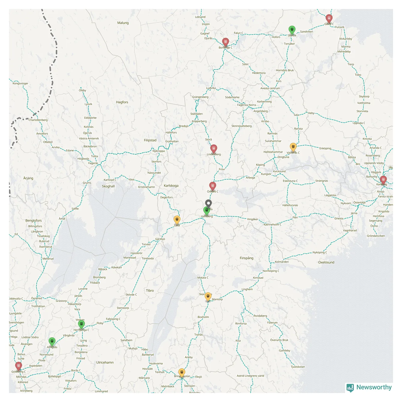 Kartdata från Mapbox, Newsworthy, OpenStreetMap och Trafikverket. Uppgifter om sträckor med passagerartrafik från jarnvag.net.