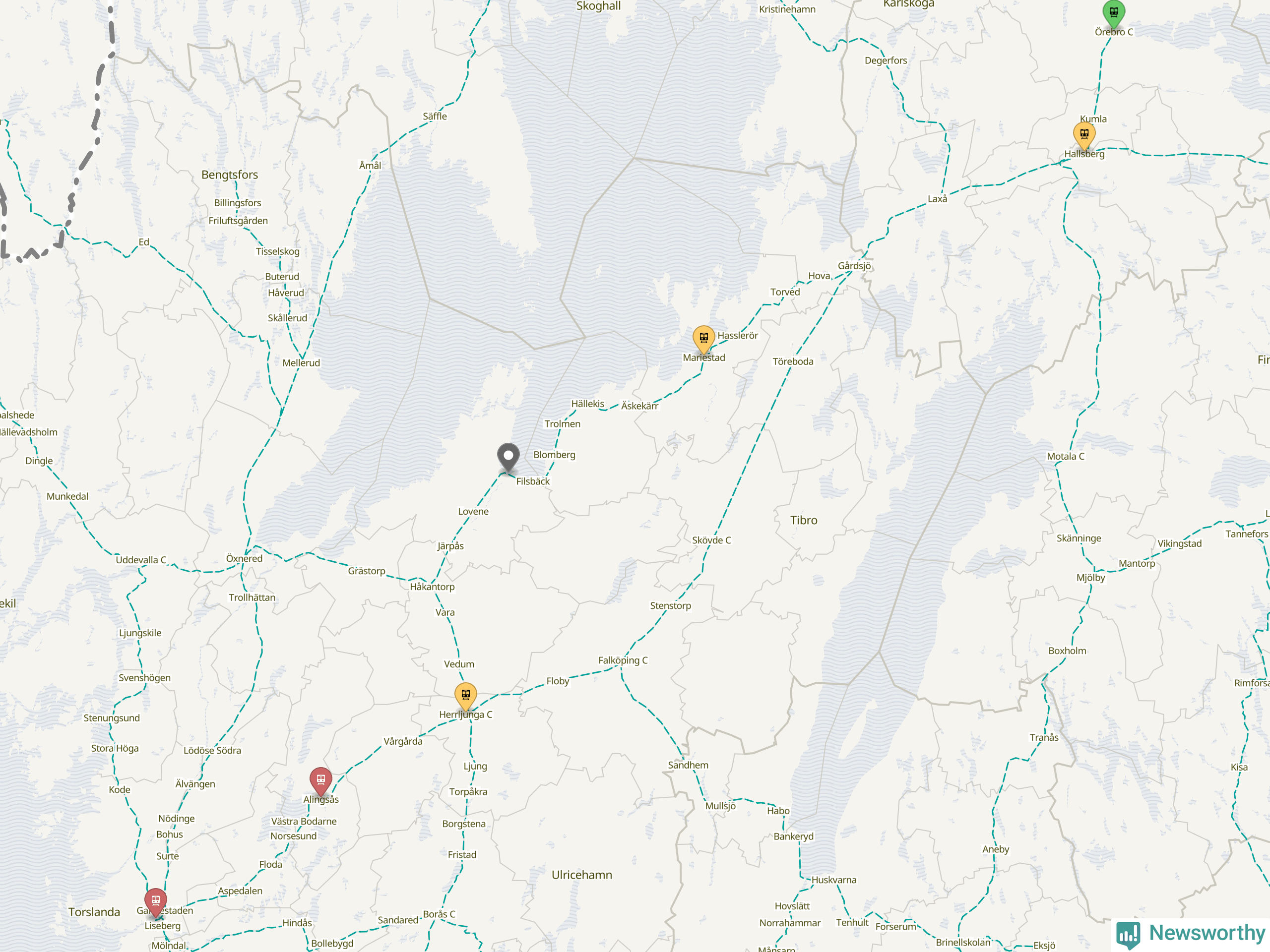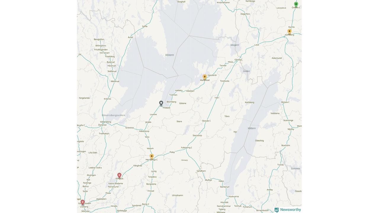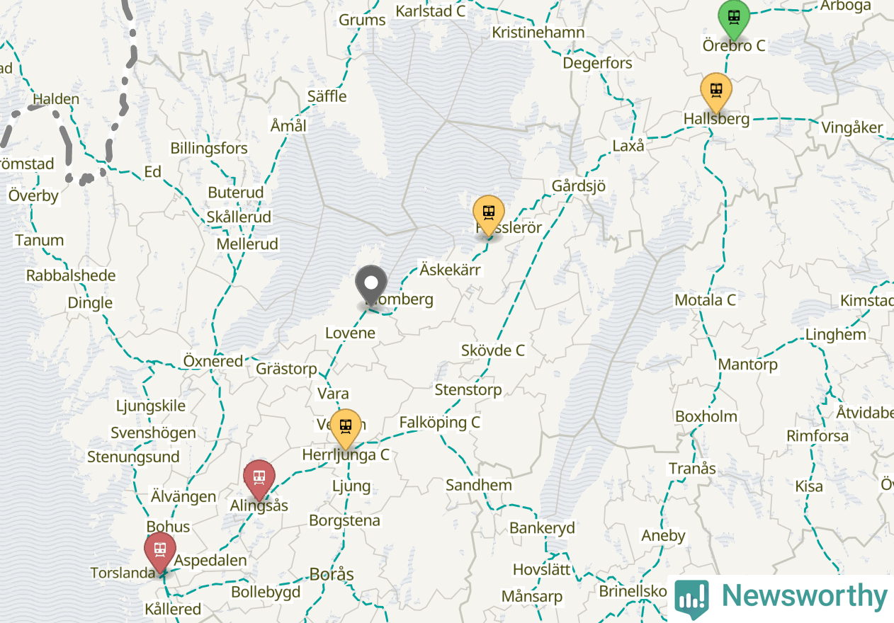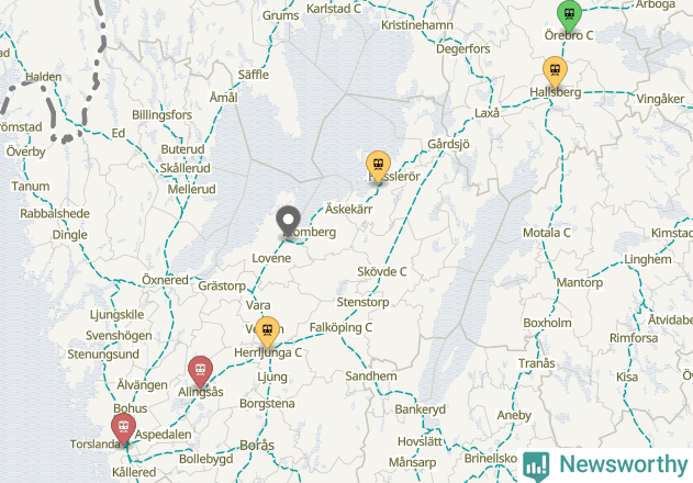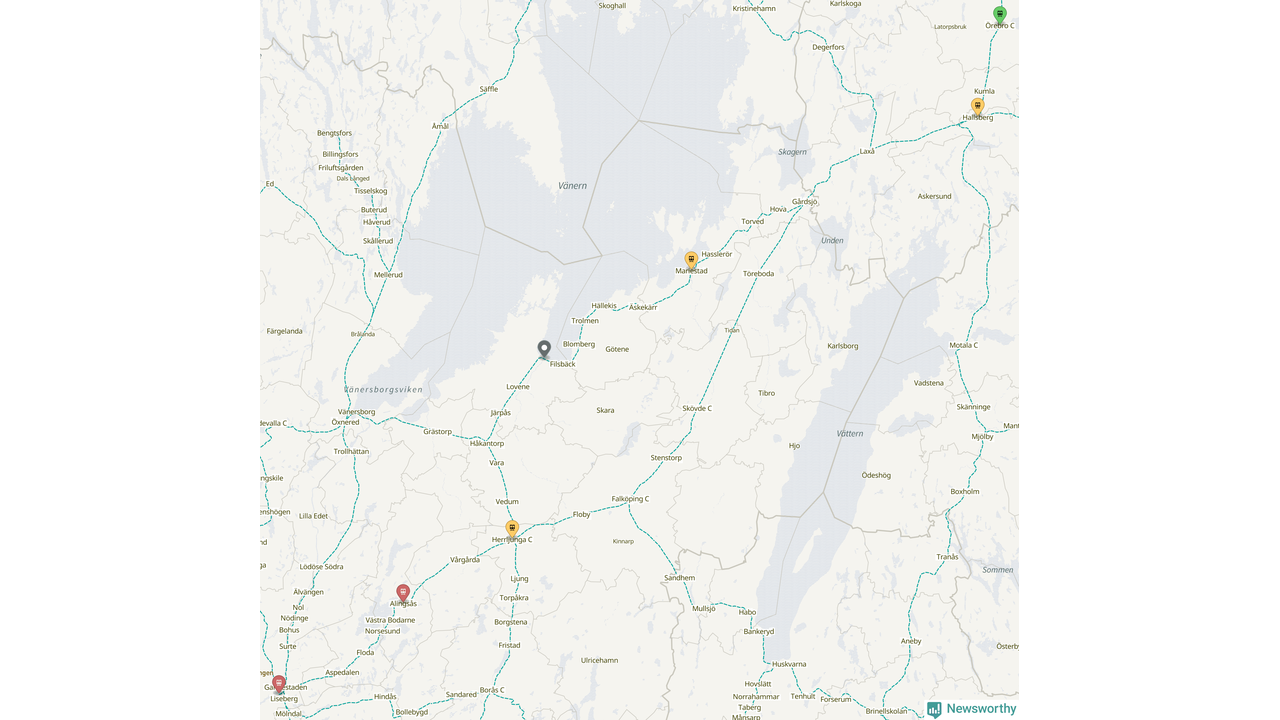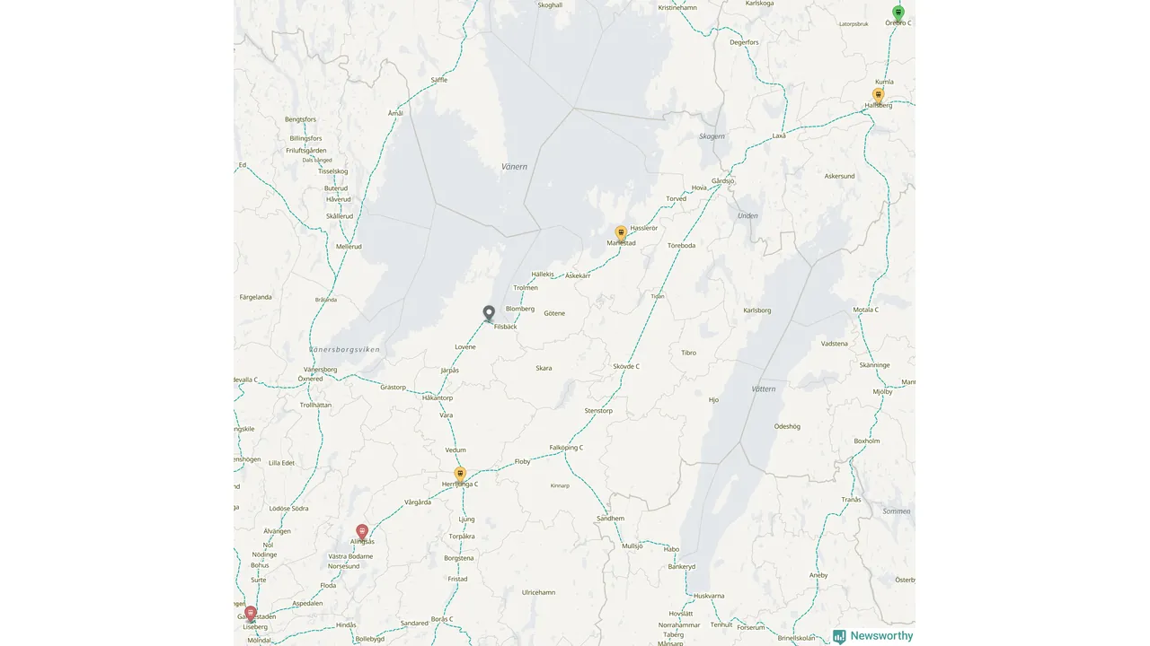 Kartdata från Mapbox, Newsworthy, OpenStreetMap och Trafikverket. Uppgifter om sträckor med passagerartrafik från jarnvag.net.