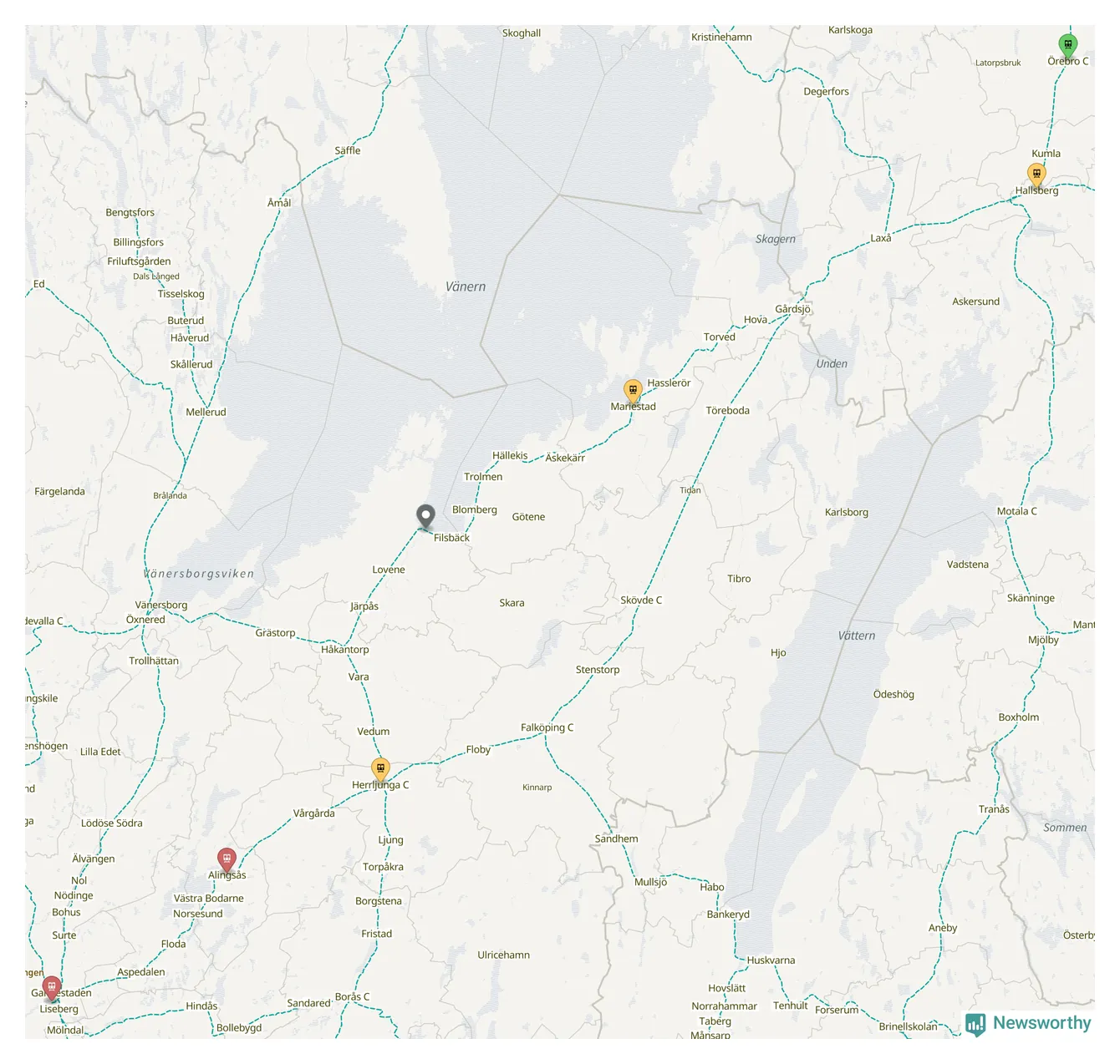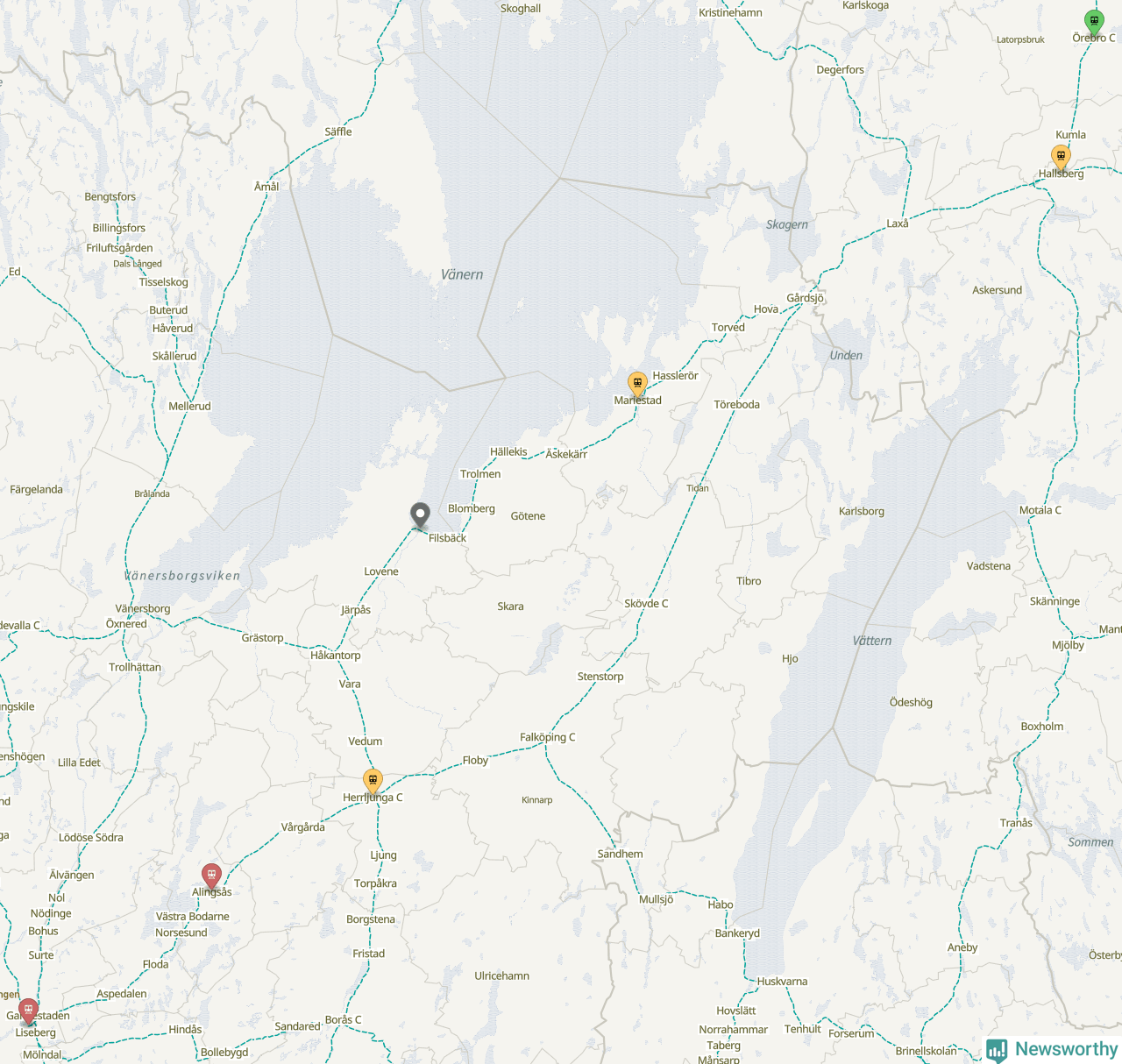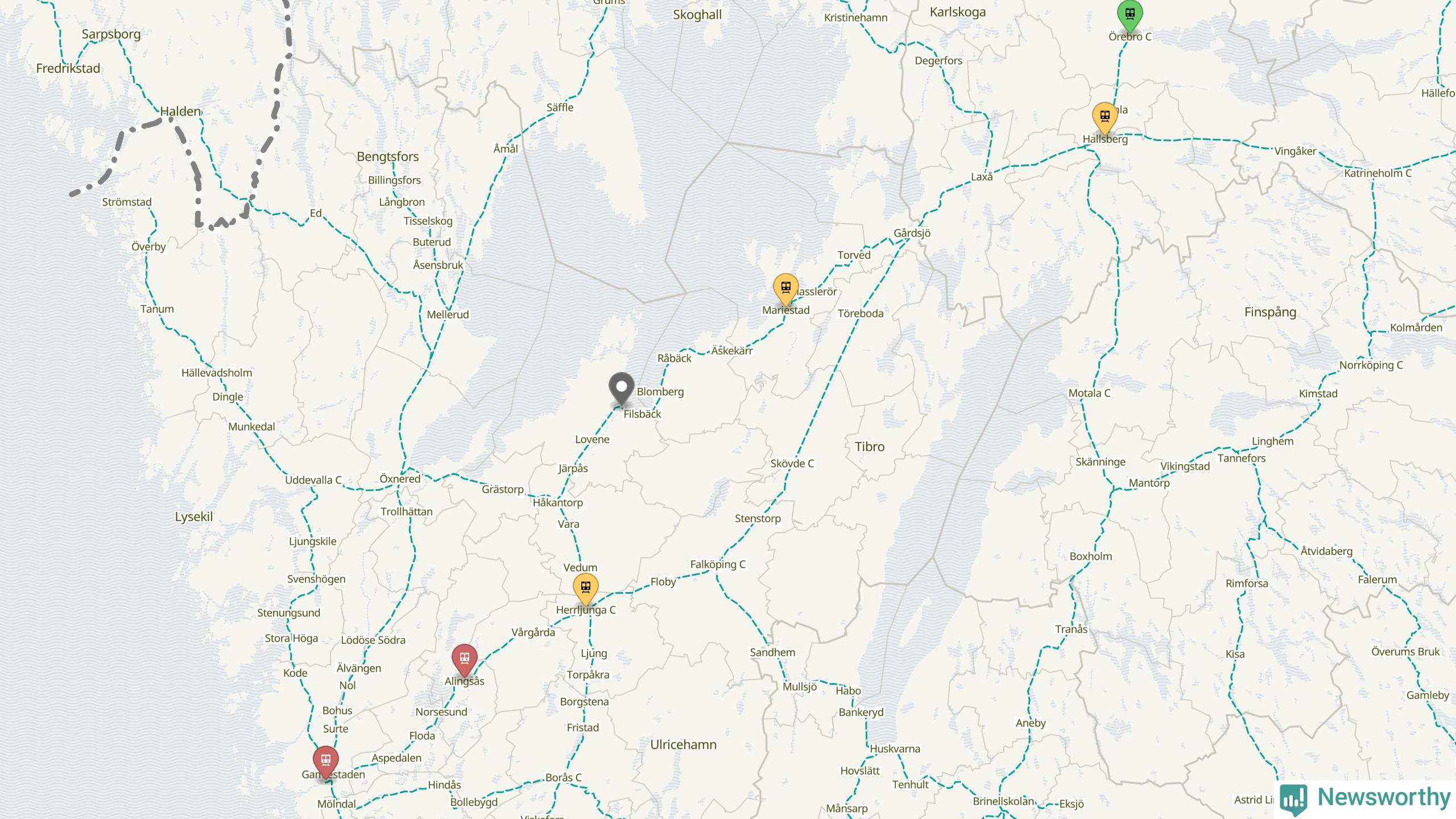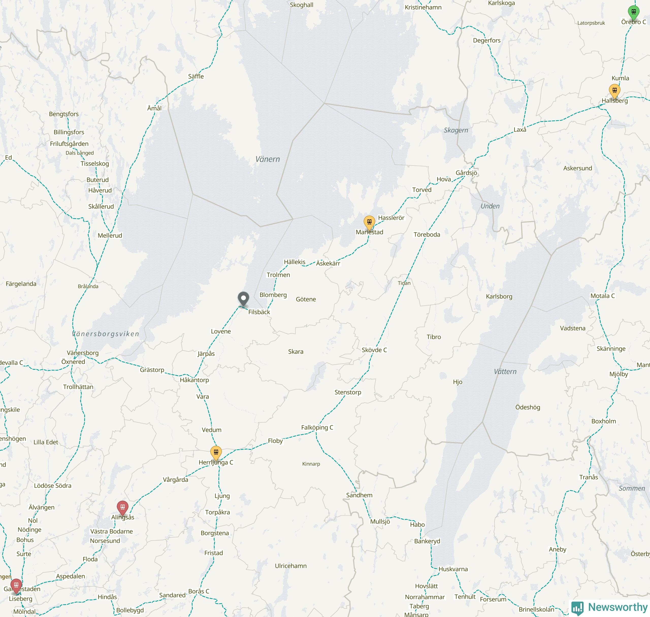 Kartdata från Mapbox, Newsworthy, OpenStreetMap och Trafikverket. Uppgifter om sträckor med passagerartrafik från jarnvag.net.