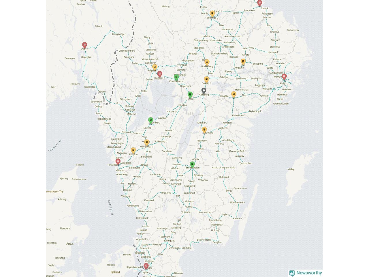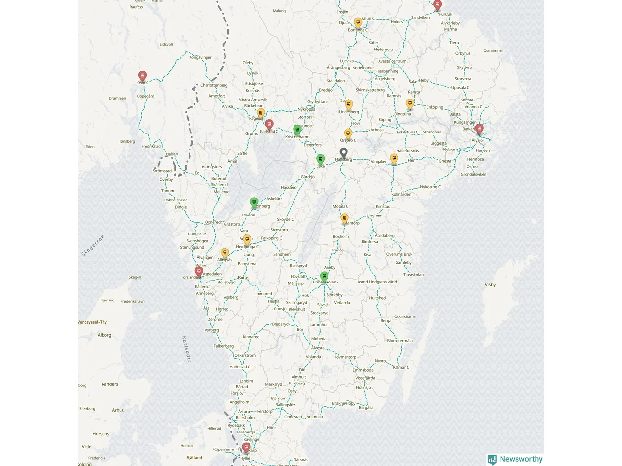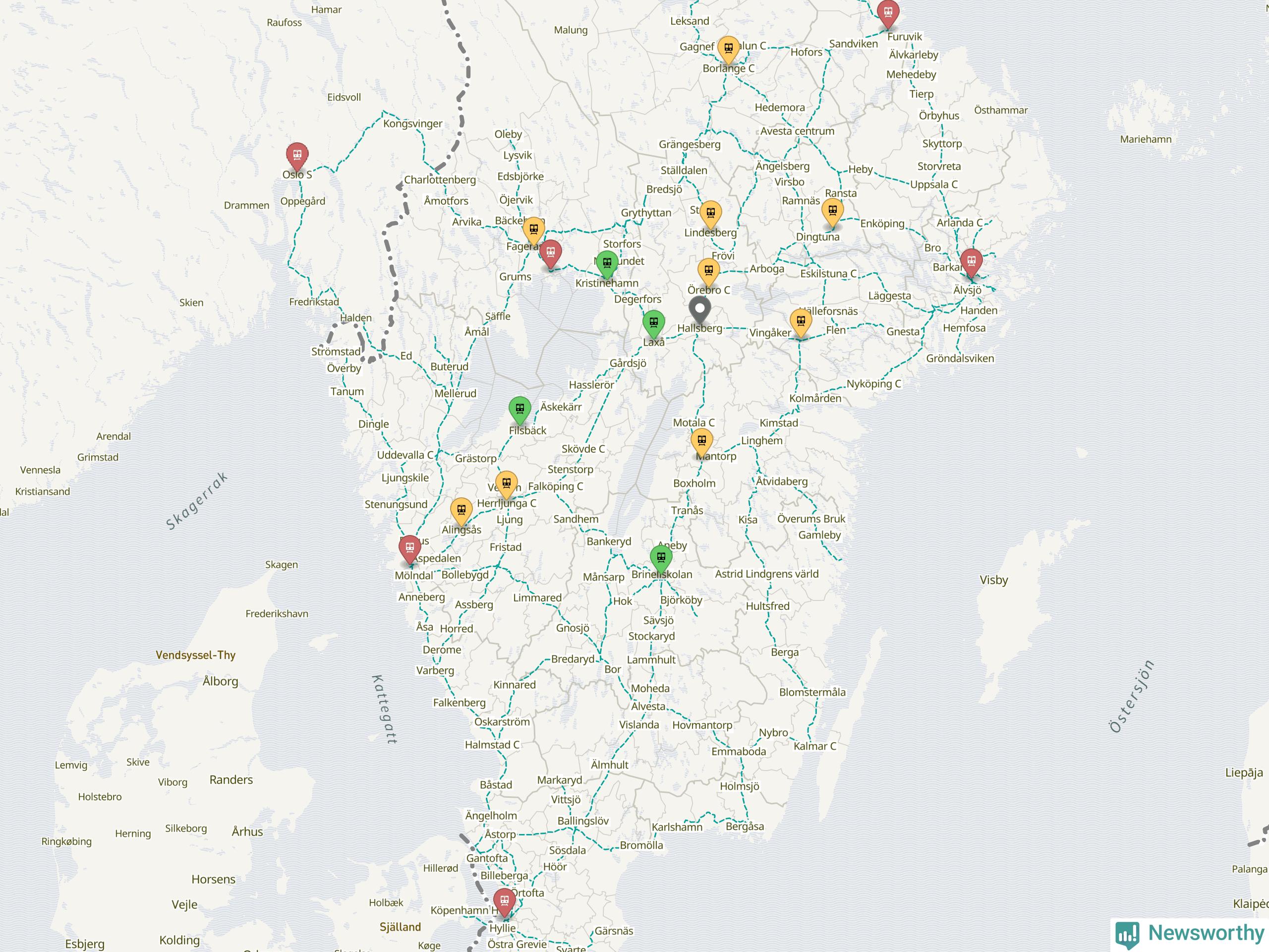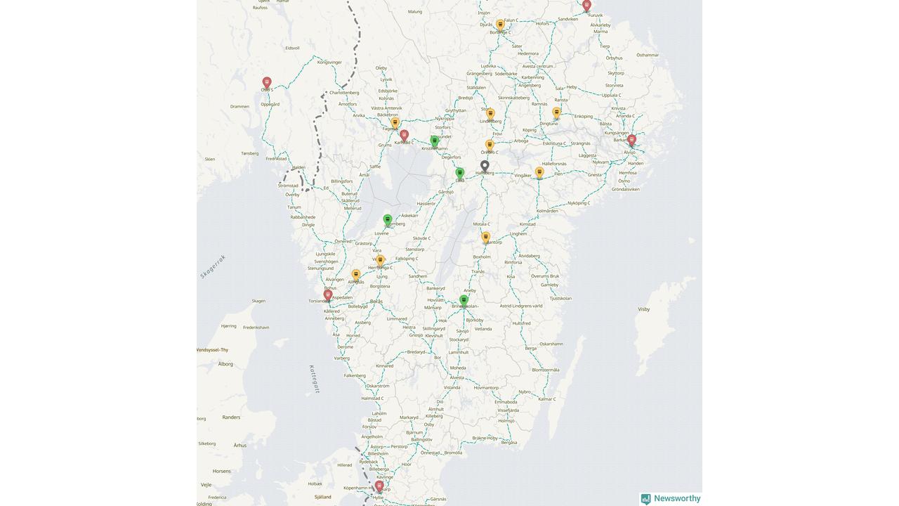 Kartdata från Mapbox, Newsworthy, OpenStreetMap och Trafikverket. Uppgifter om sträckor med passagerartrafik från jarnvag.net.
