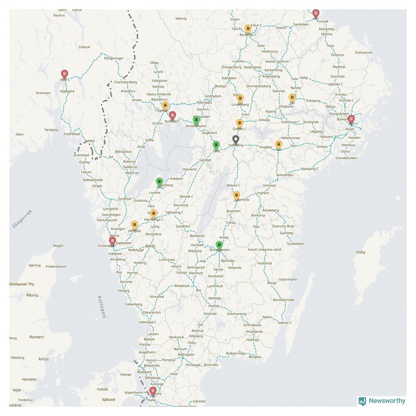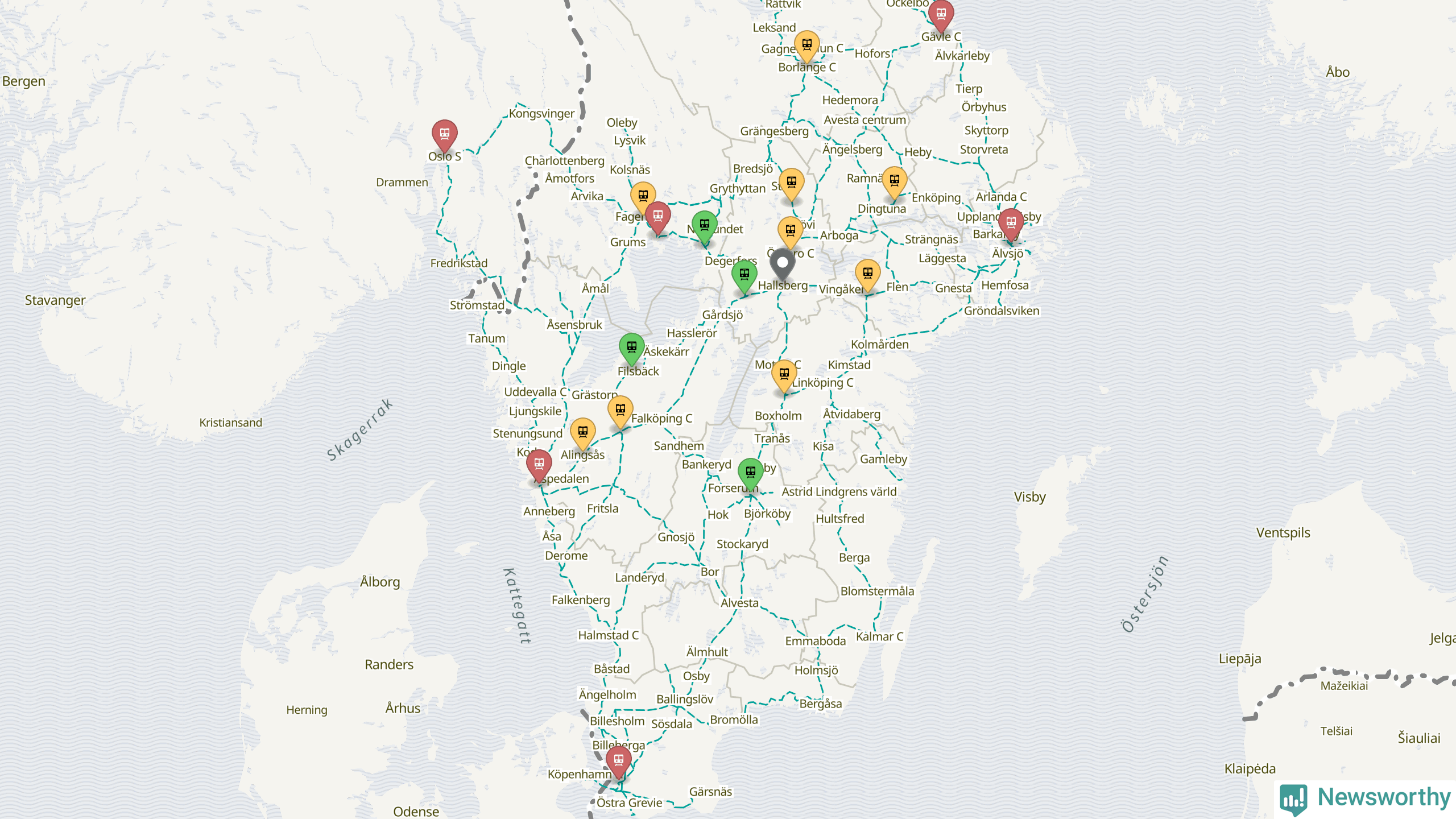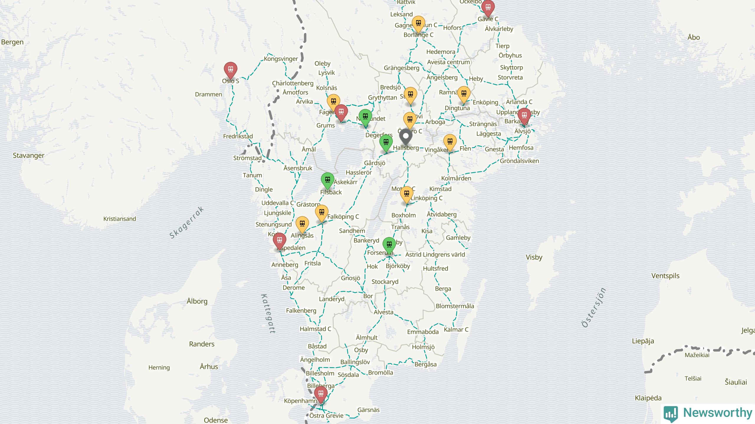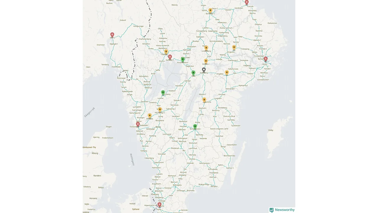 Kartdata från Mapbox, Newsworthy, OpenStreetMap och Trafikverket. Uppgifter om sträckor med passagerartrafik från jarnvag.net.
