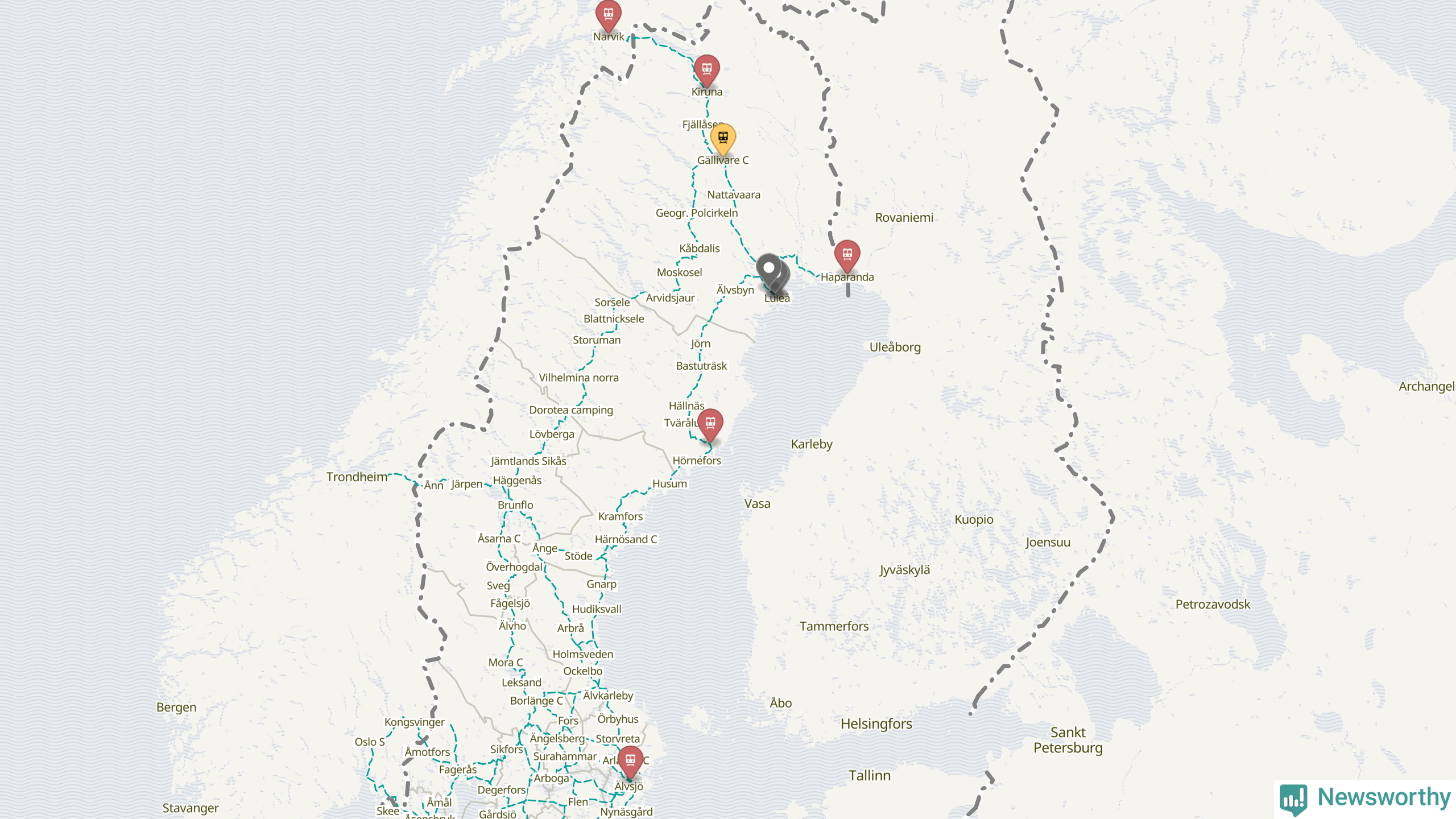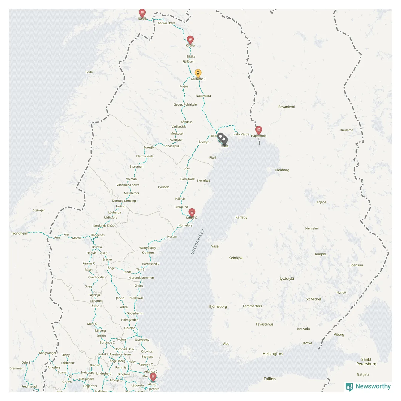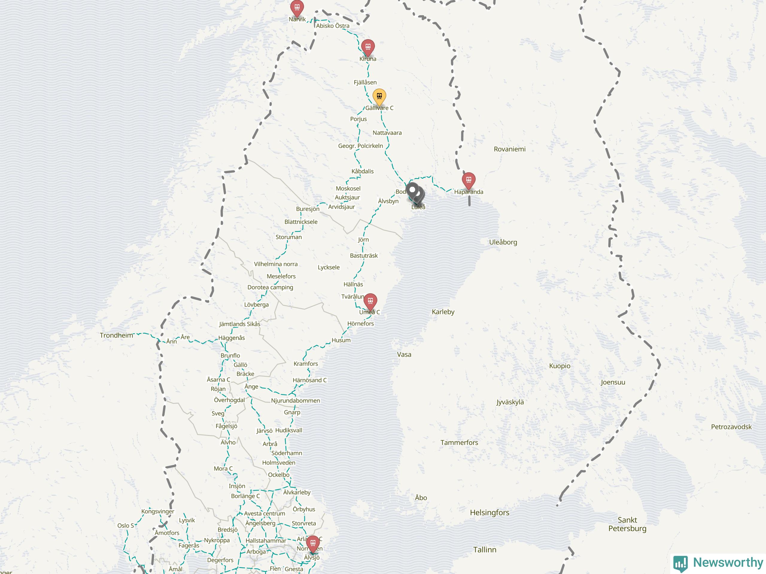 Kartdata från Mapbox, Newsworthy, OpenStreetMap och Trafikverket. Uppgifter om sträckor med passagerartrafik från jarnvag.net.