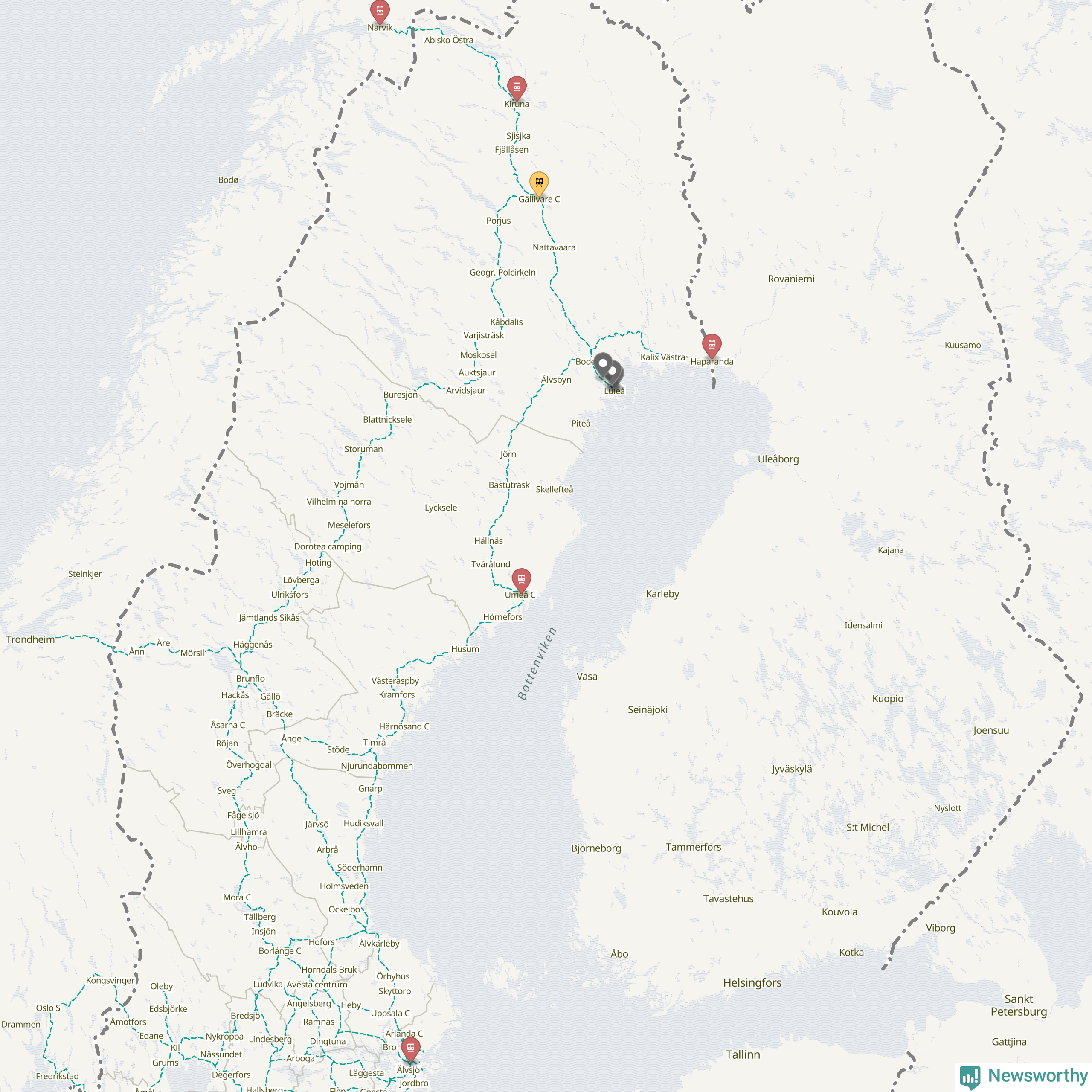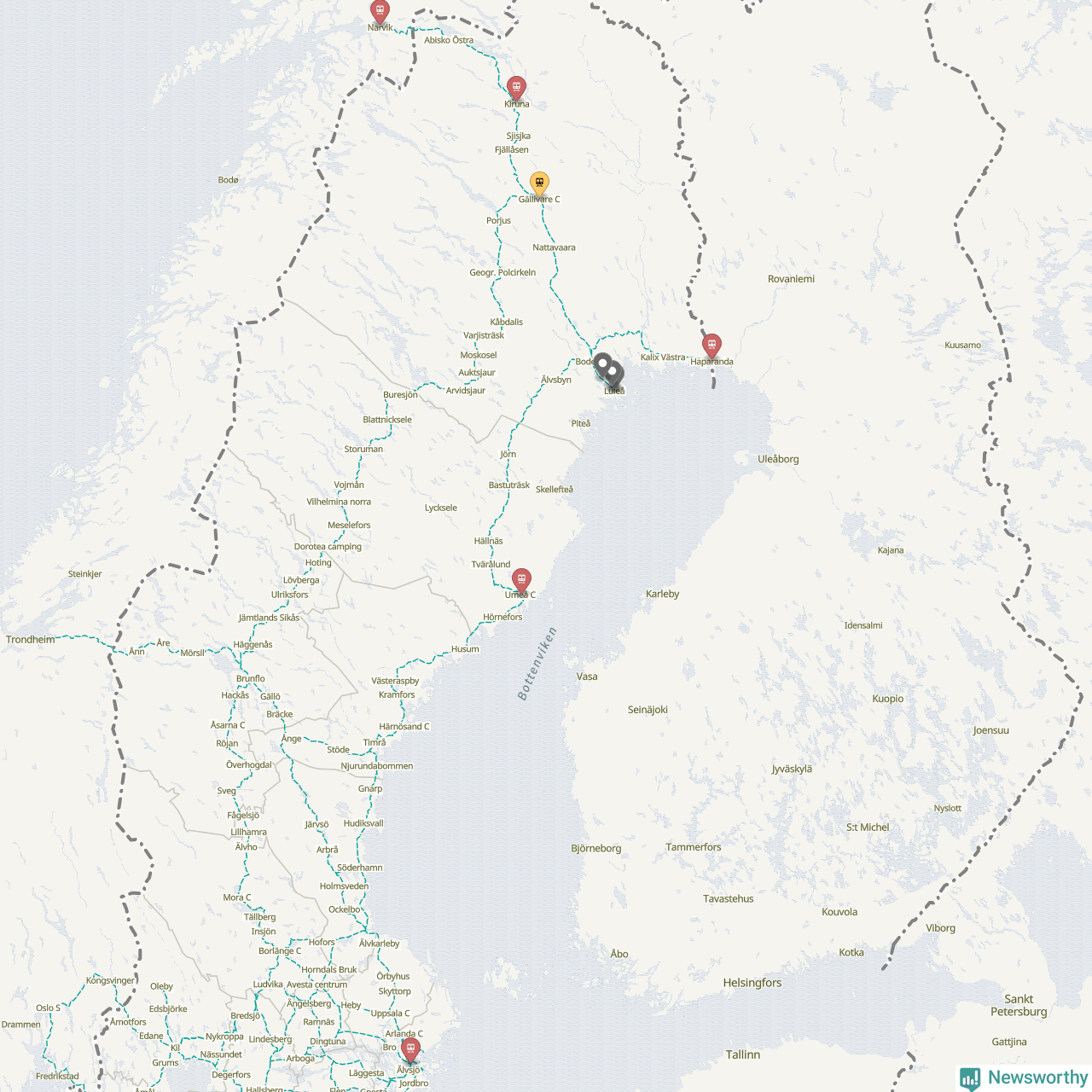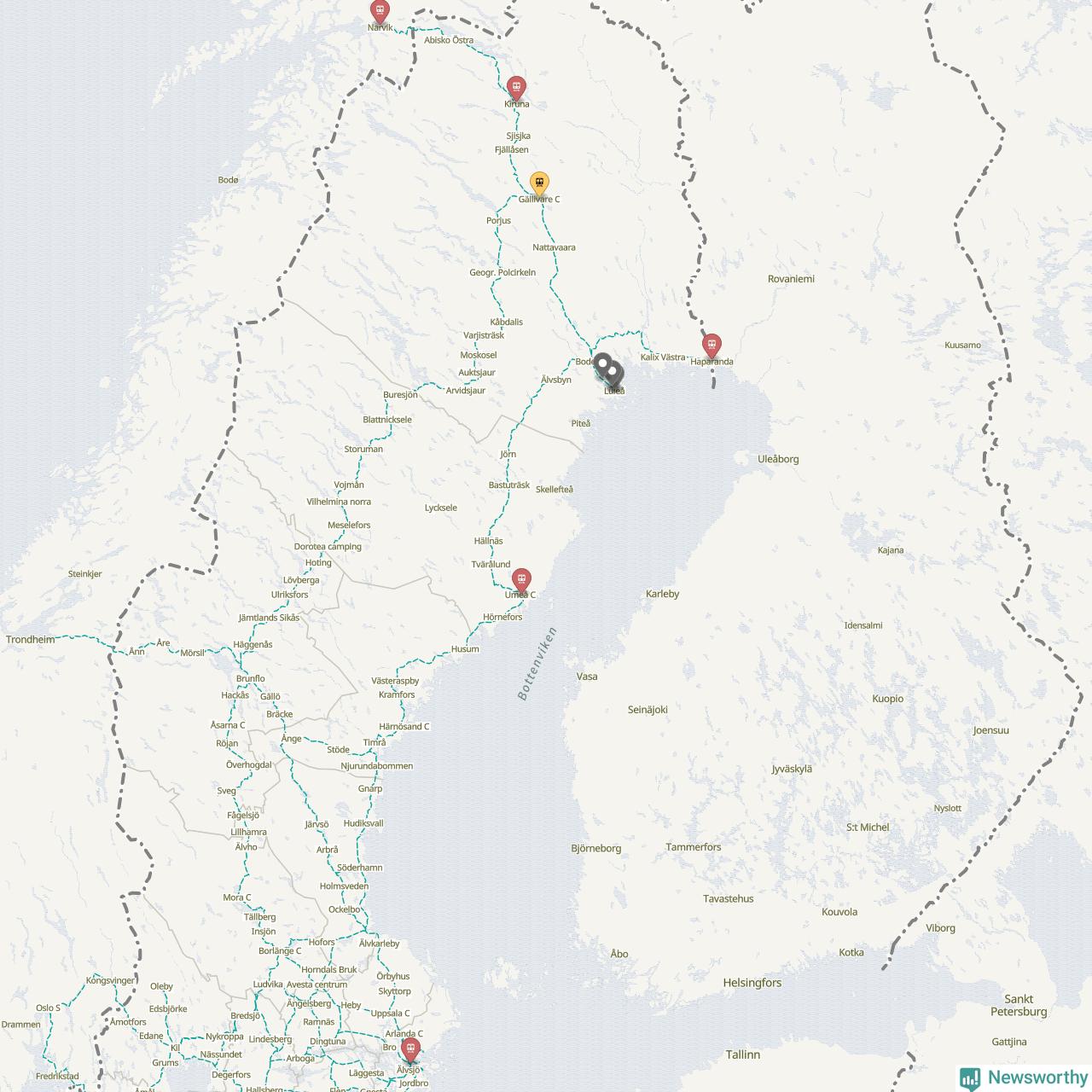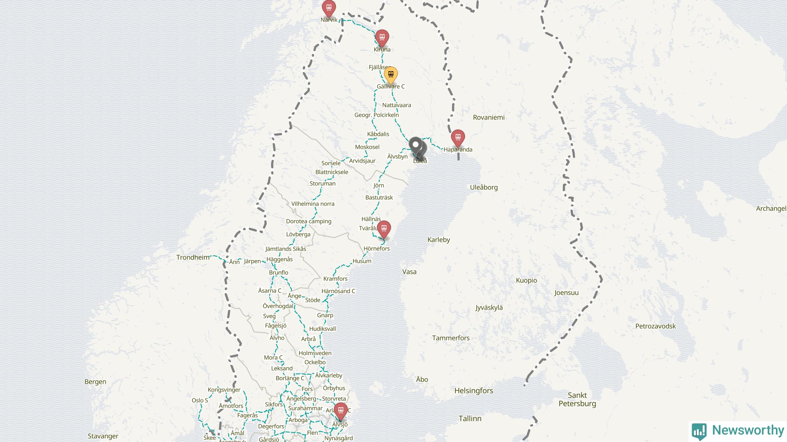 Kartdata från Mapbox, Newsworthy, OpenStreetMap och Trafikverket. Uppgifter om sträckor med passagerartrafik från jarnvag.net.