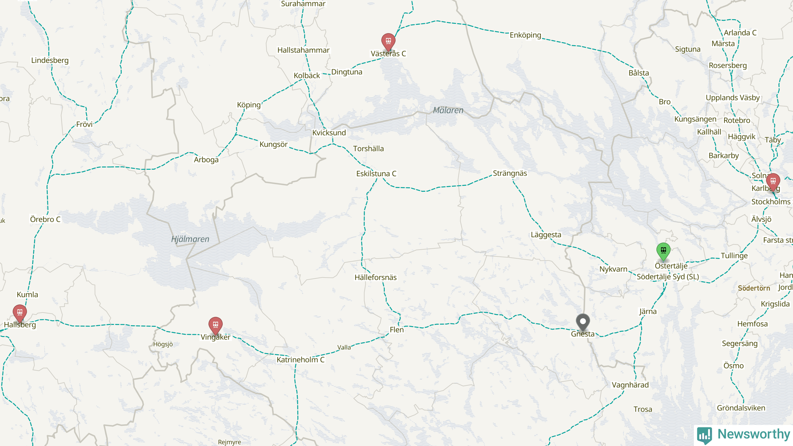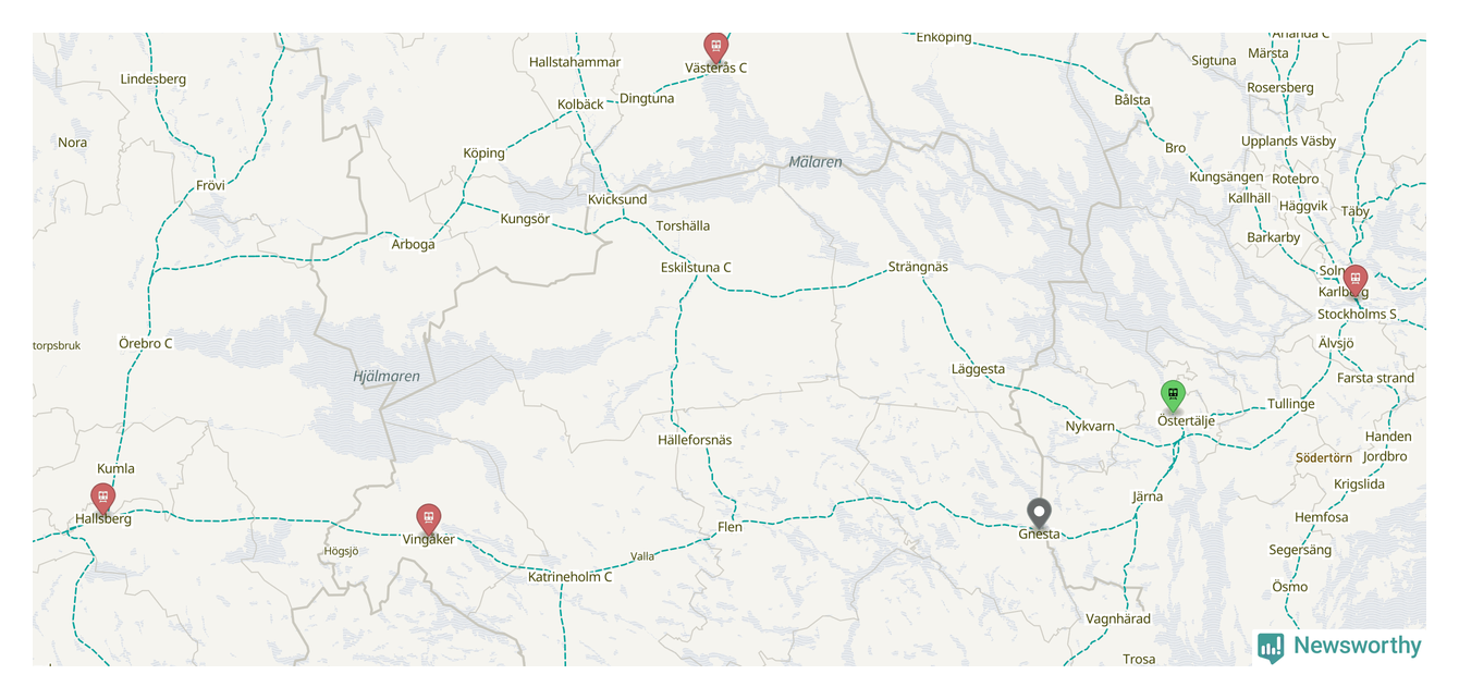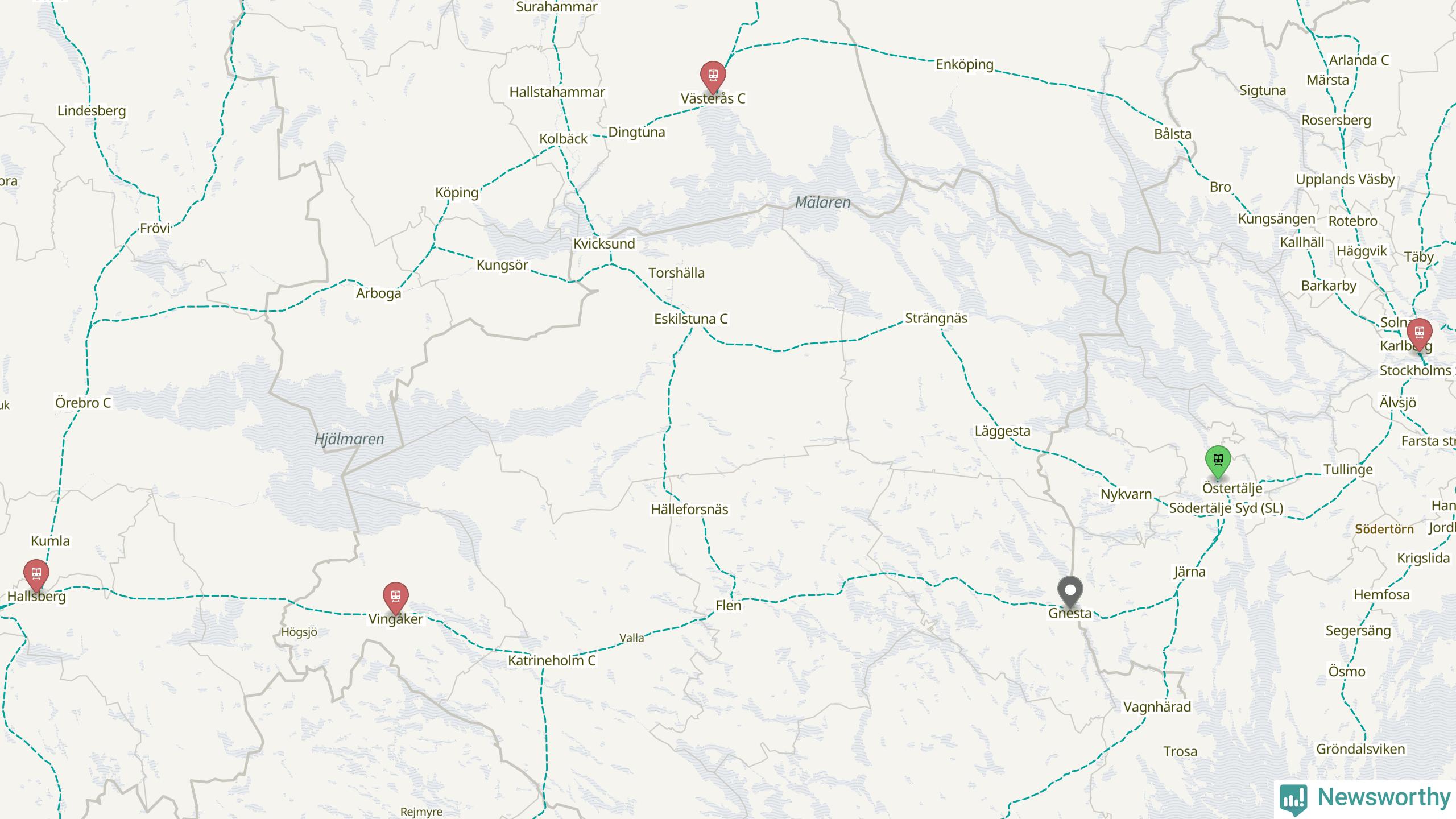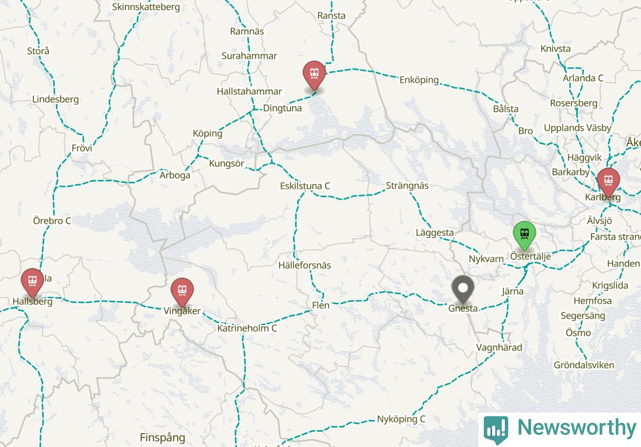 Kartdata från Mapbox, Newsworthy, OpenStreetMap och Trafikverket. Uppgifter om sträckor med passagerartrafik från jarnvag.net.