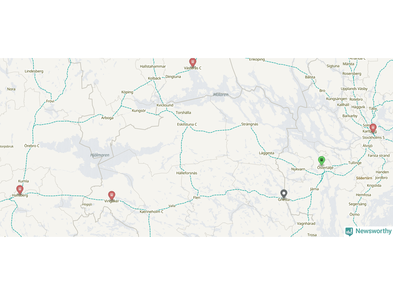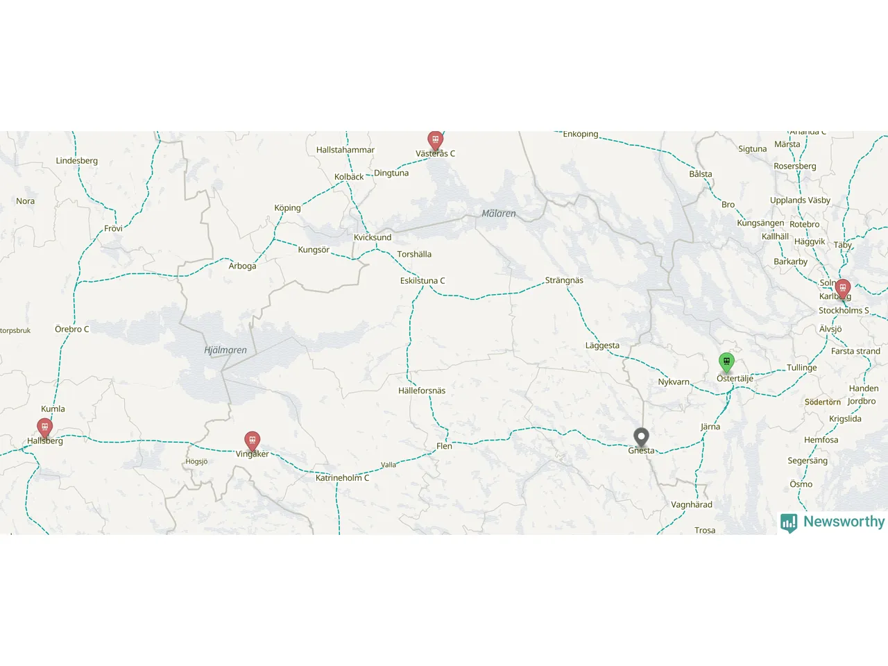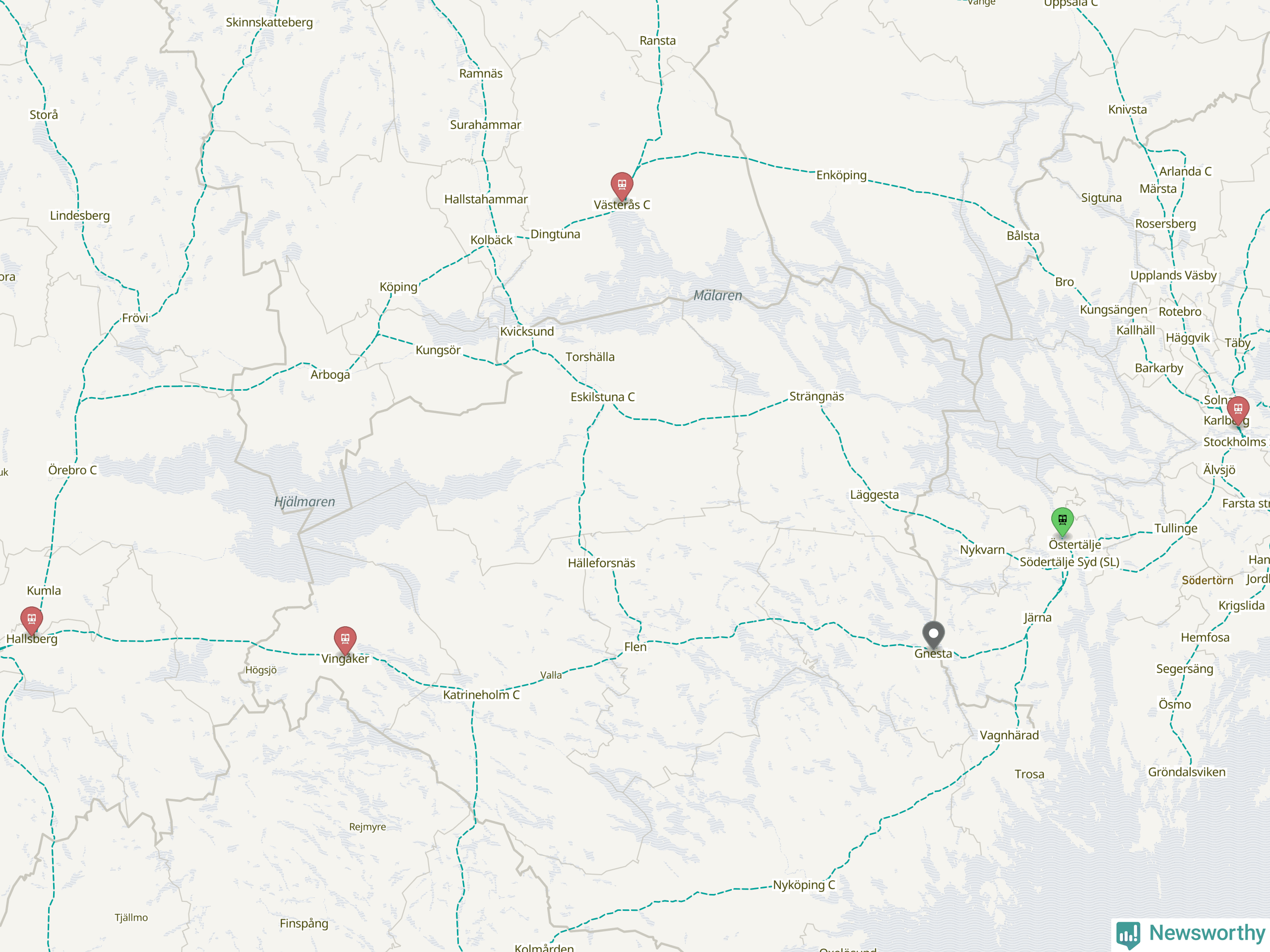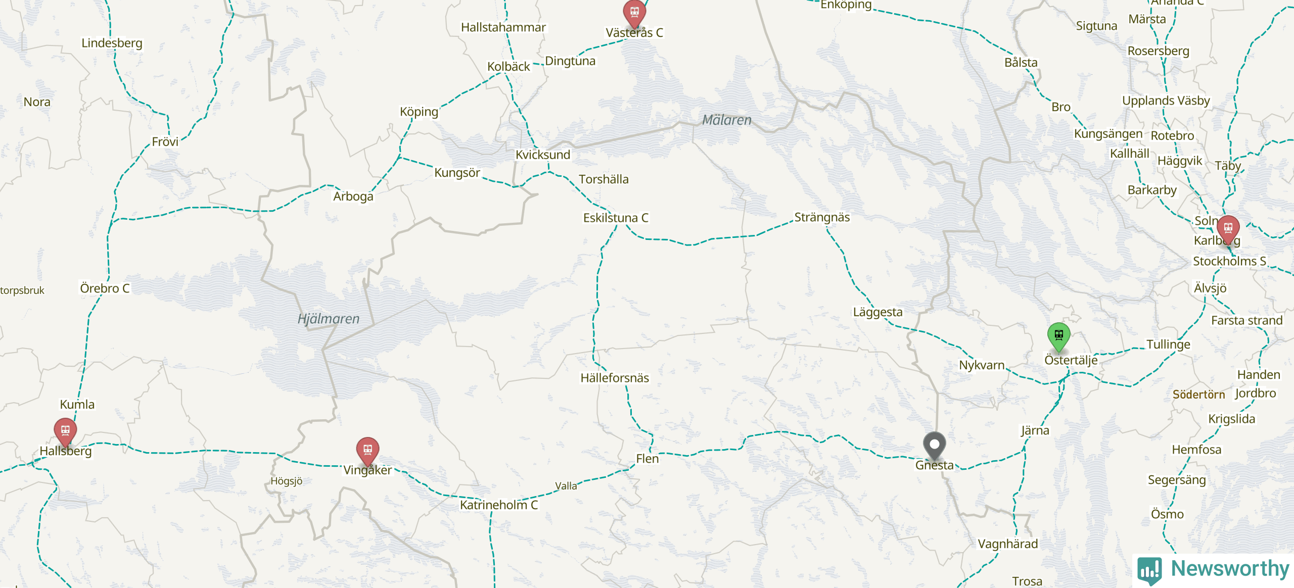 Kartdata från Mapbox, Newsworthy, OpenStreetMap och Trafikverket. Uppgifter om sträckor med passagerartrafik från jarnvag.net.
