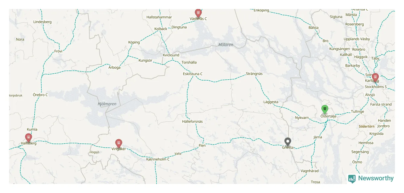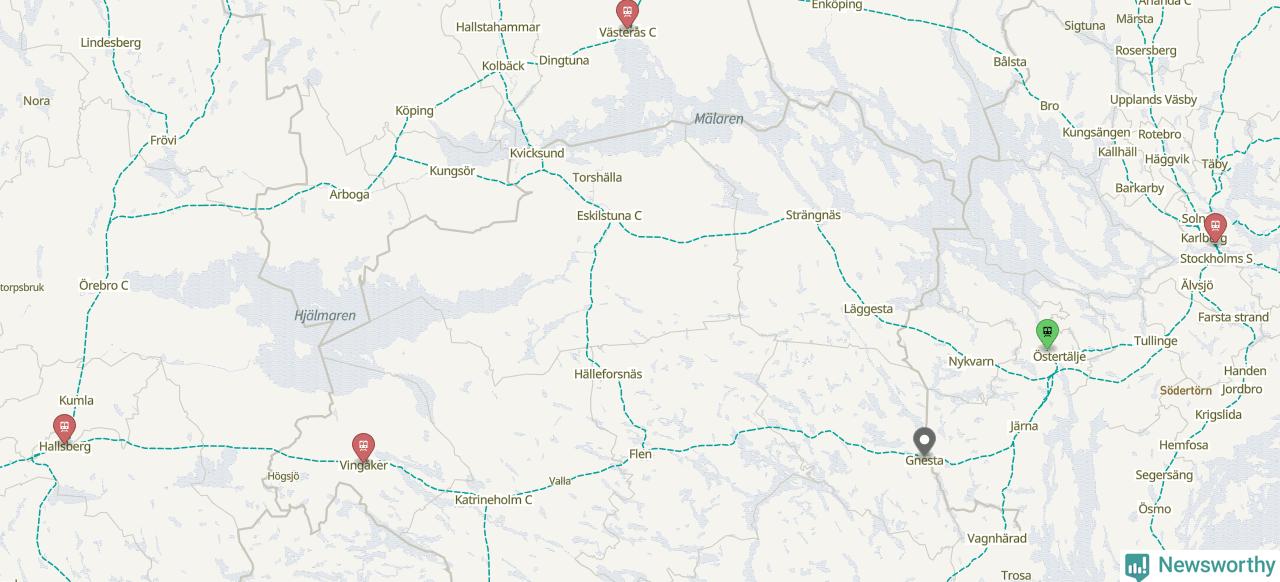 Varannat tåg i Gnesta var pendeltåg, och bland dem var två procent mer än fem minuter sena.