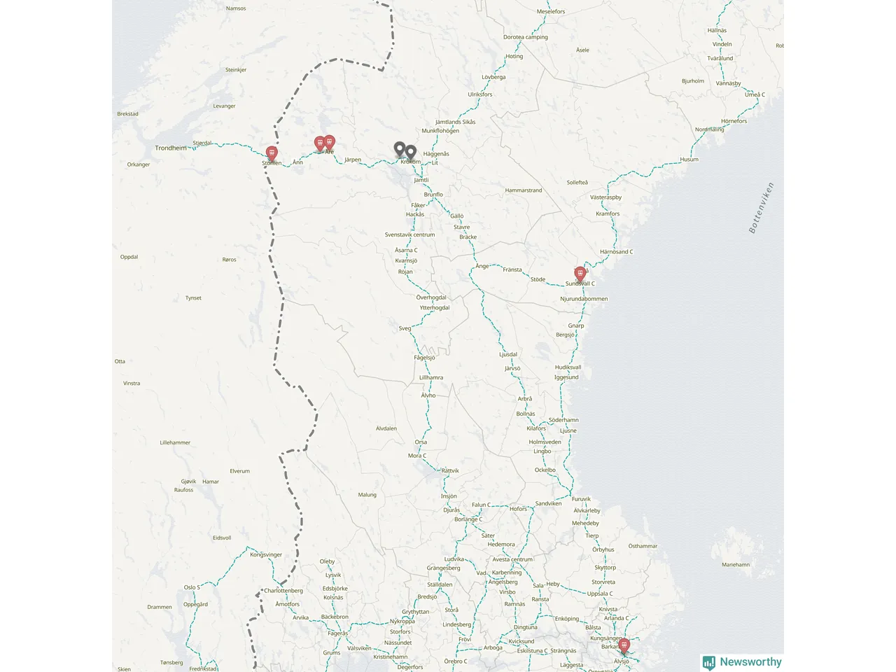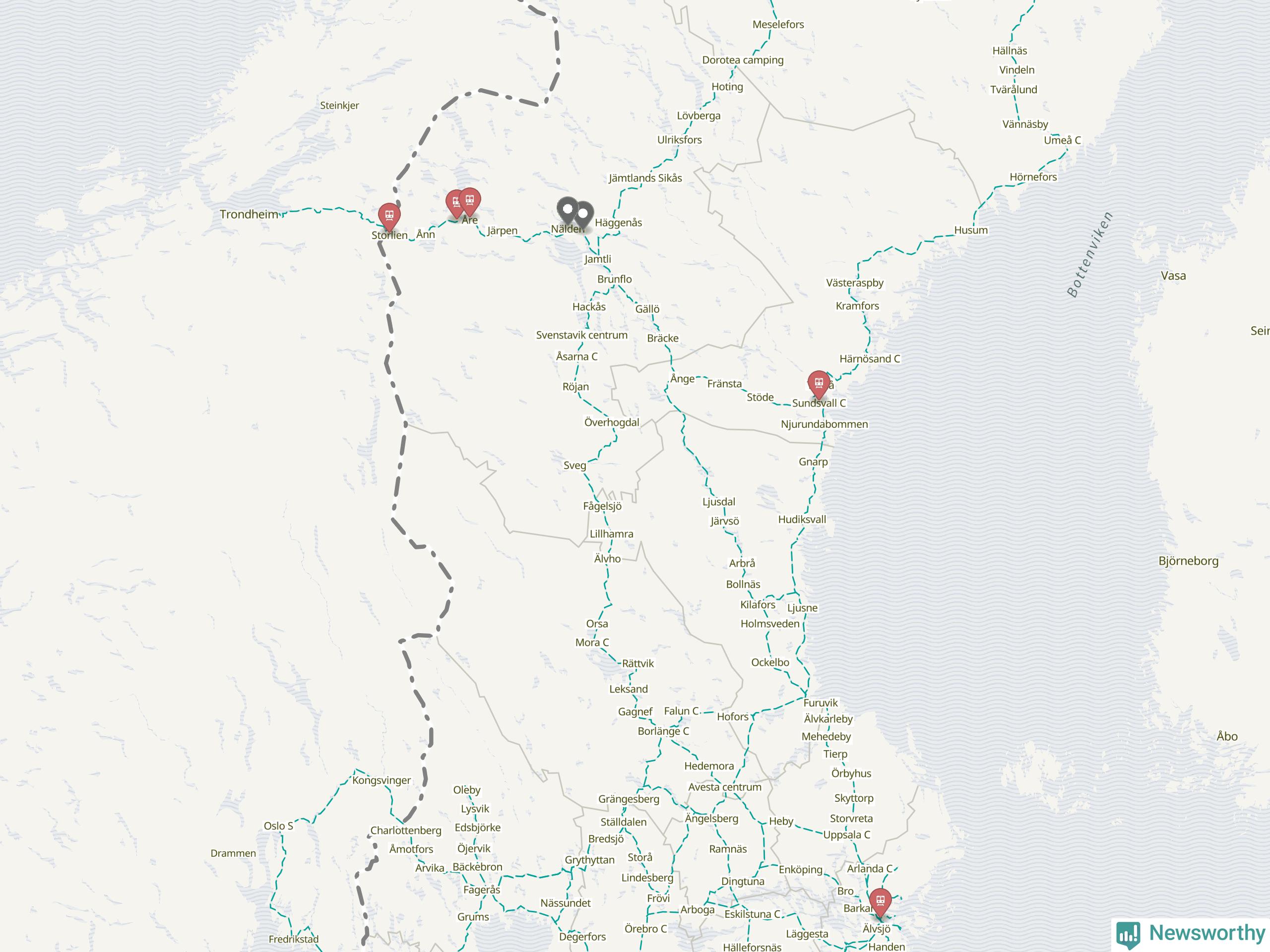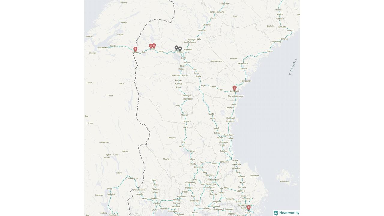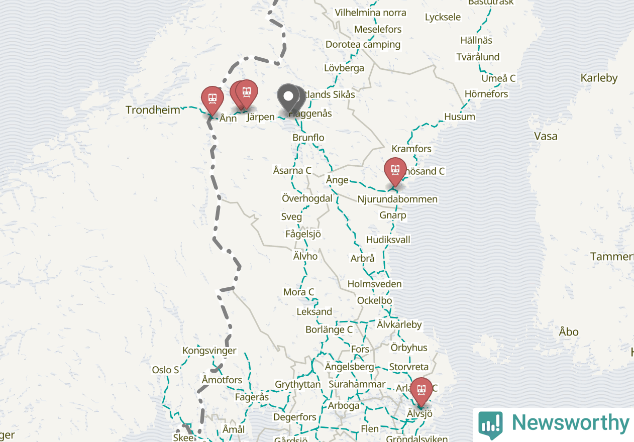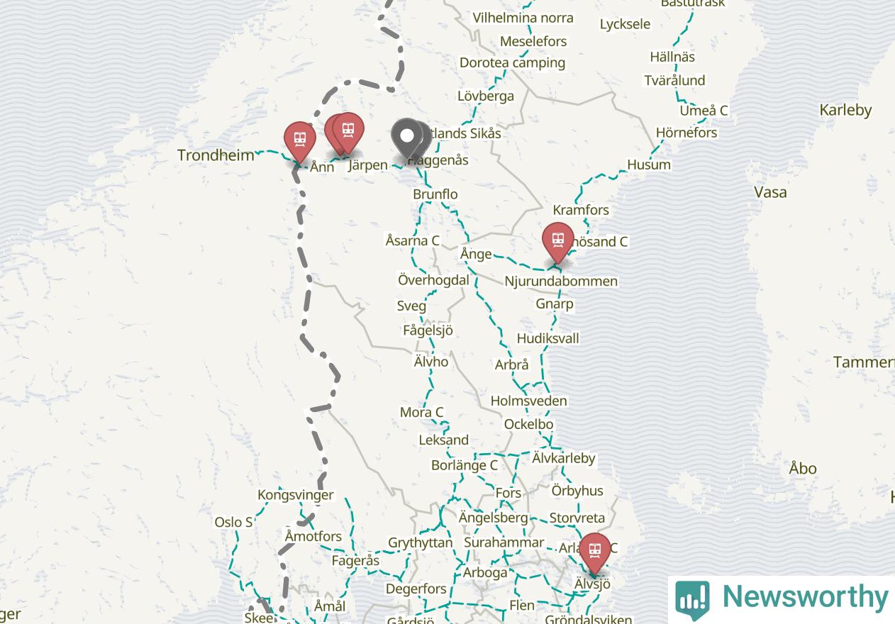 Kartdata från Mapbox, Newsworthy, OpenStreetMap och Trafikverket. Uppgifter om sträckor med passagerartrafik från jarnvag.net.