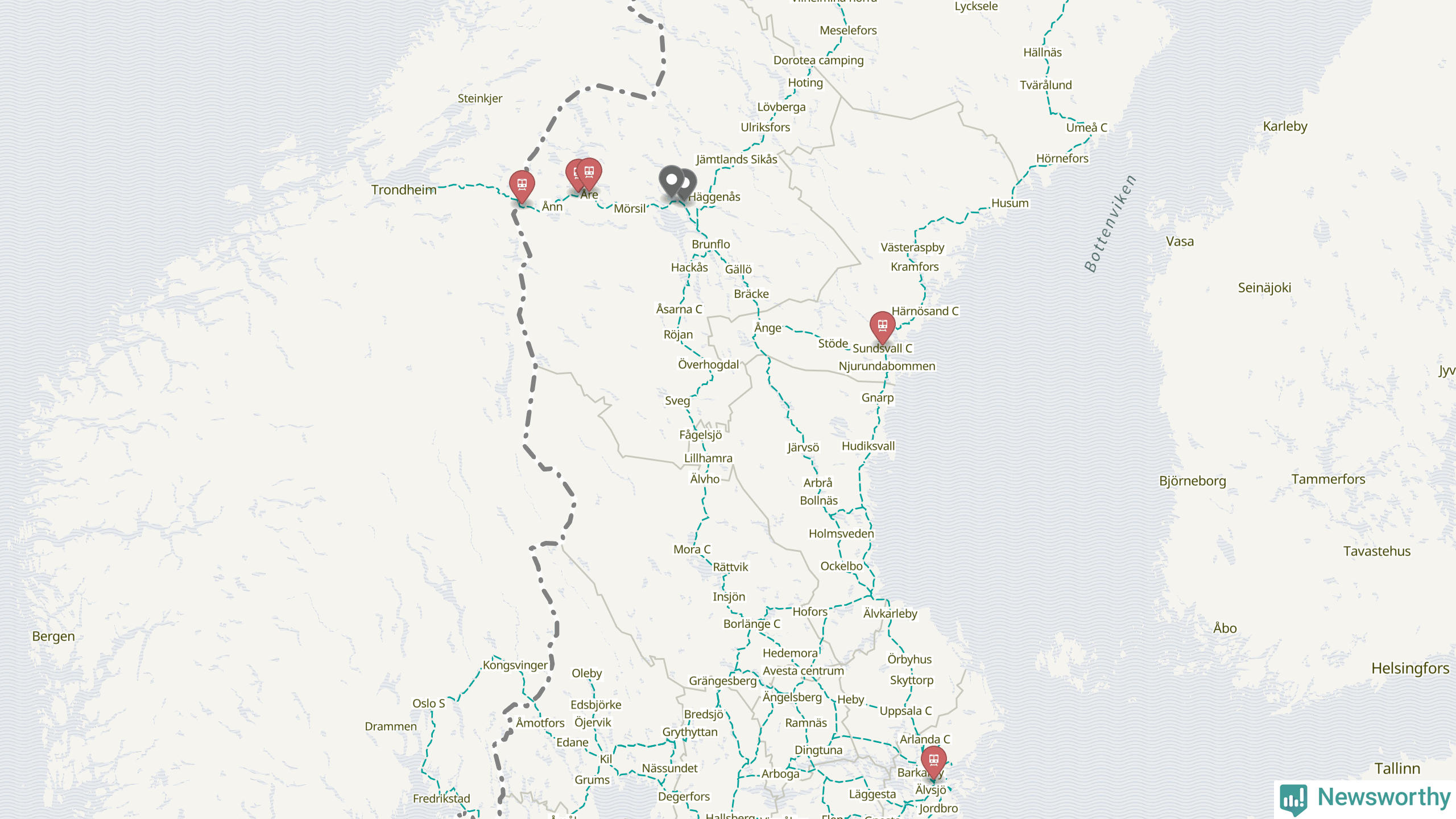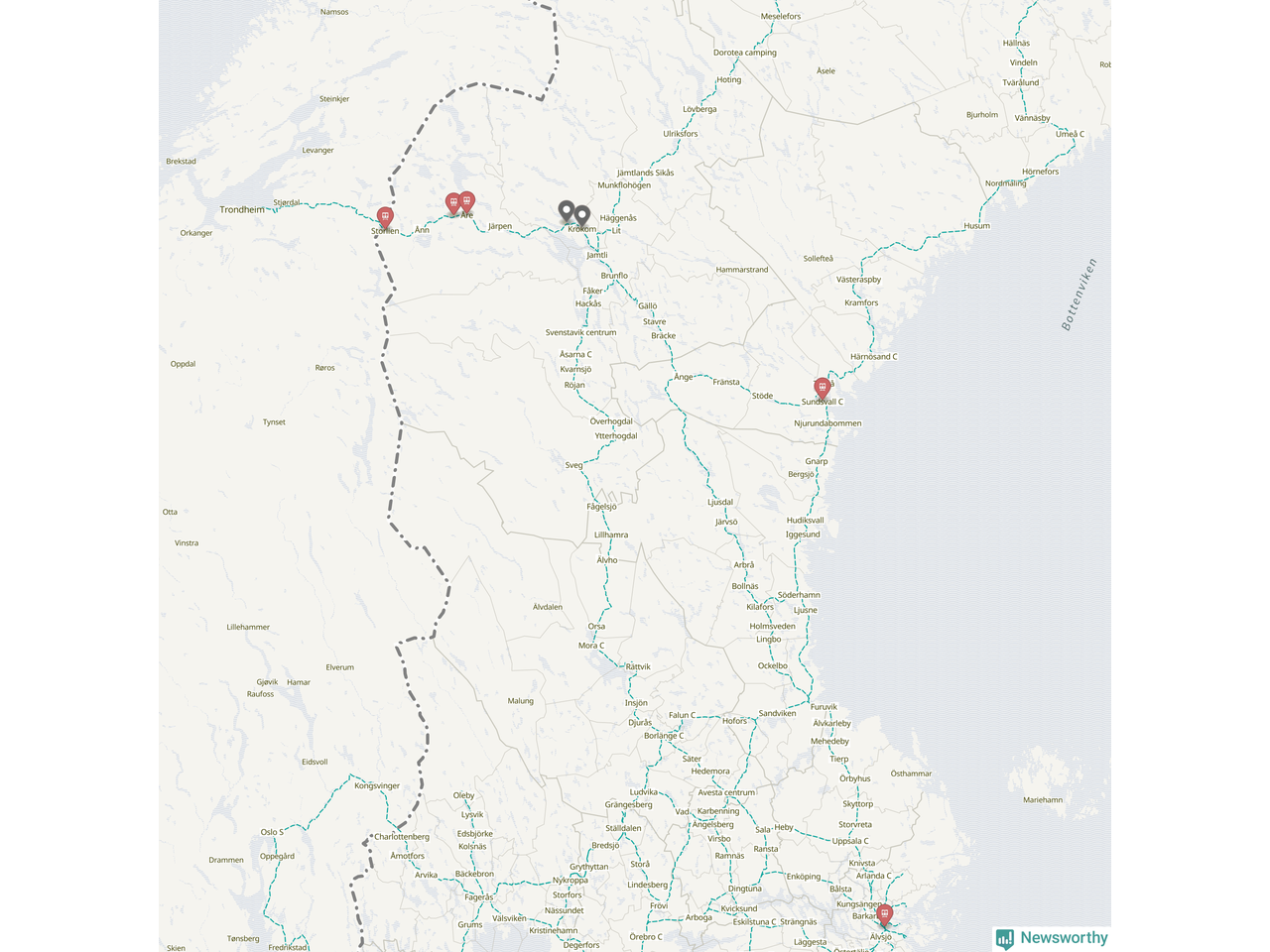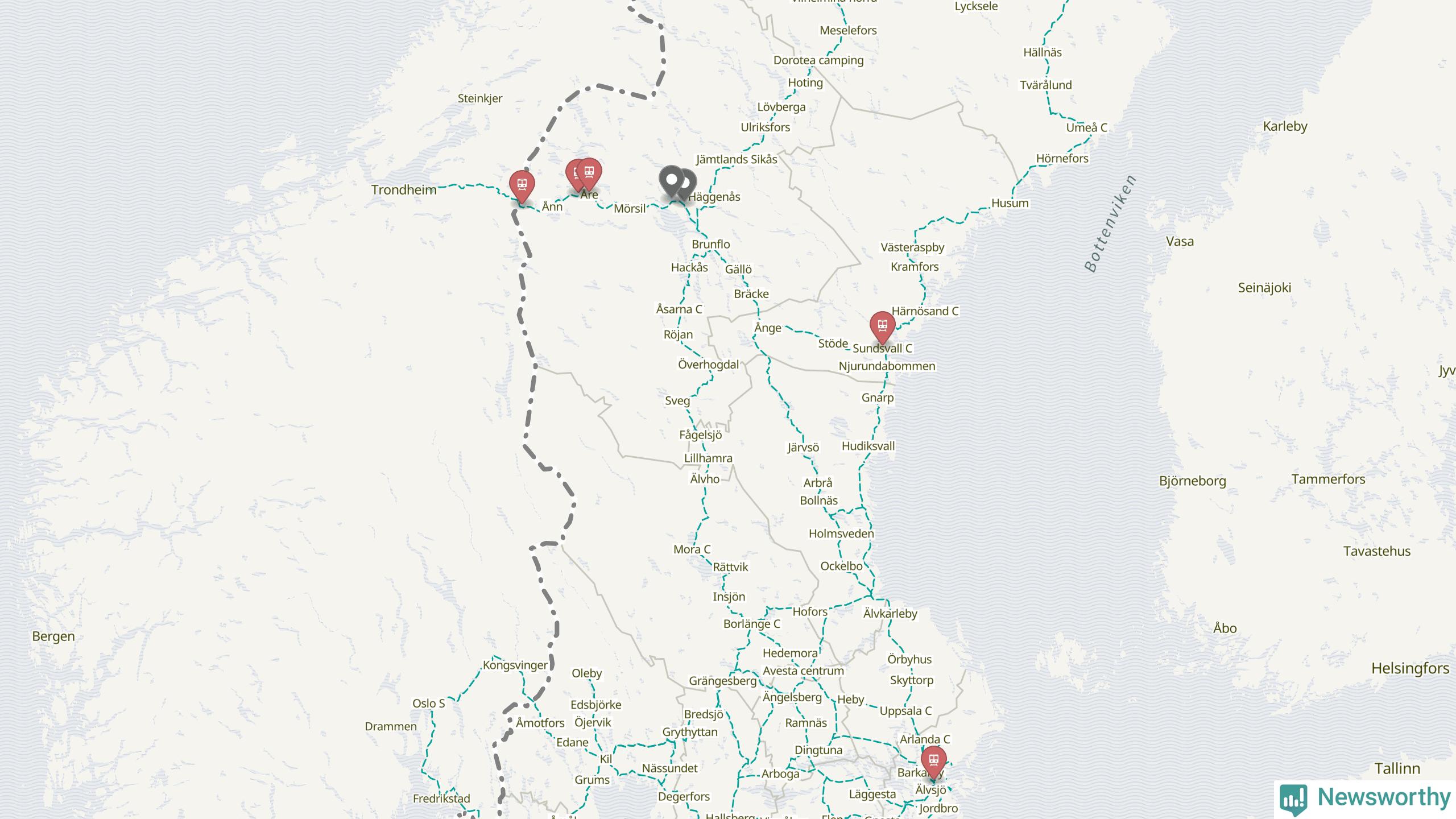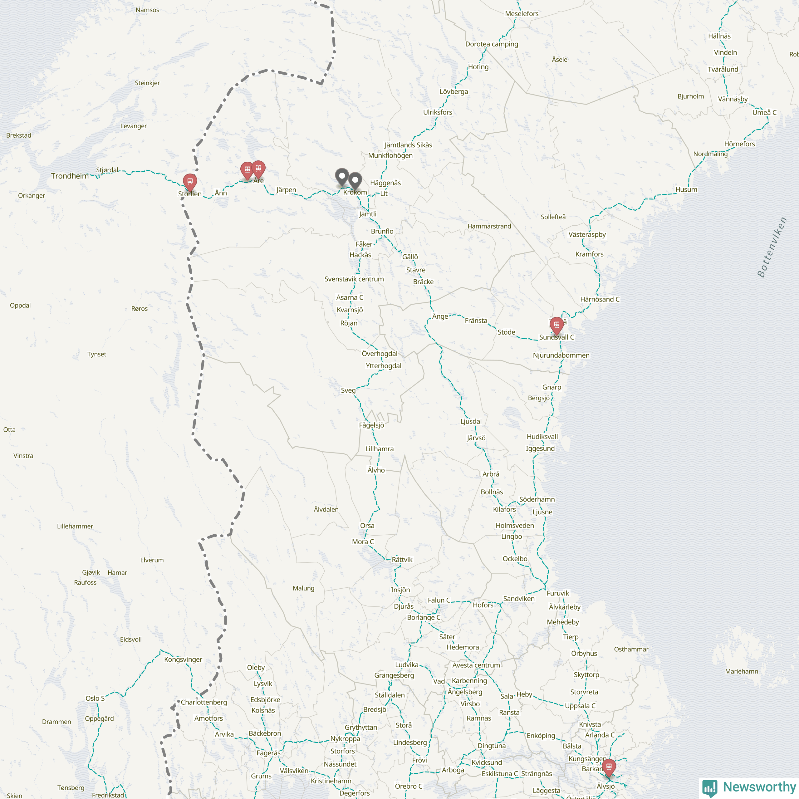 Kartdata från Mapbox, Newsworthy, OpenStreetMap och Trafikverket. Uppgifter om sträckor med passagerartrafik från jarnvag.net.