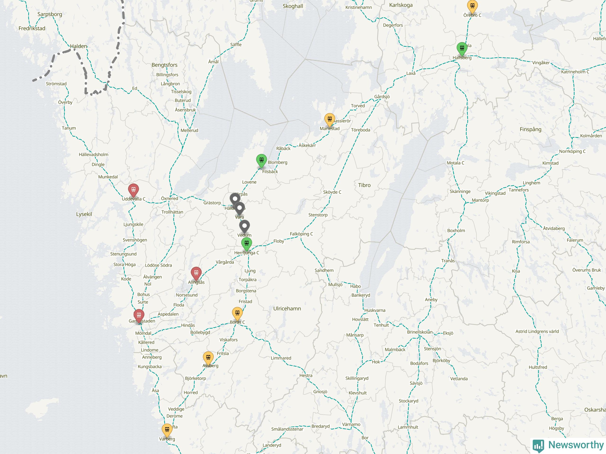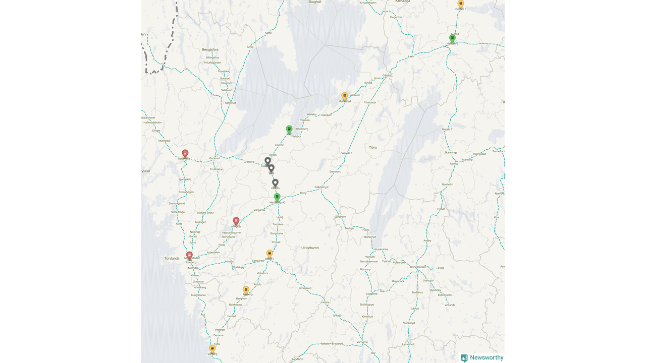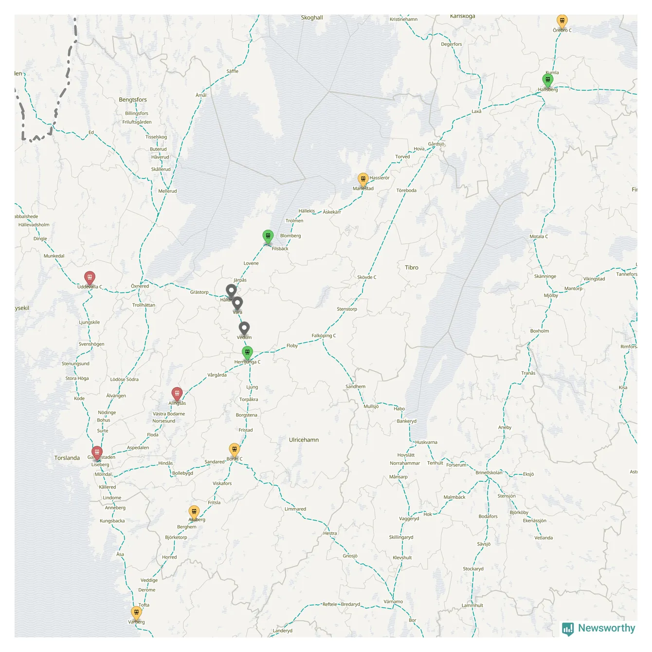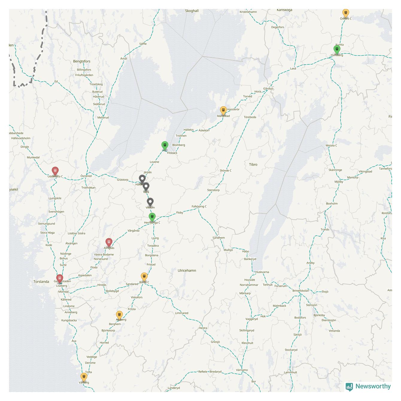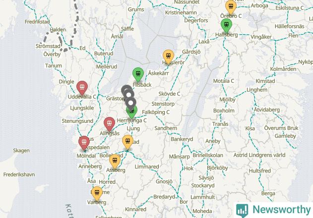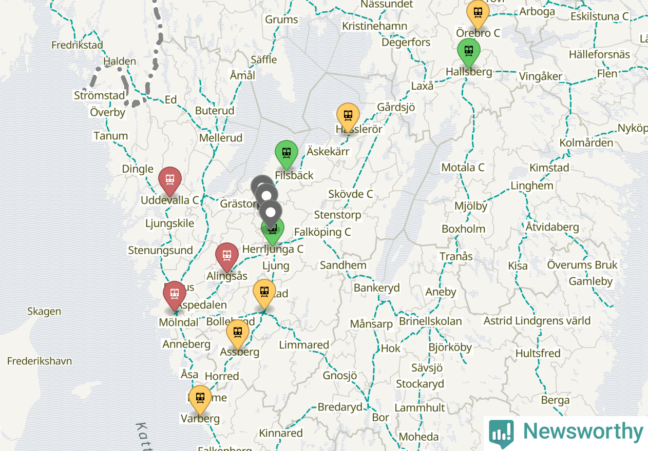 Kartdata från Mapbox, Newsworthy, OpenStreetMap och Trafikverket. Uppgifter om sträckor med passagerartrafik från jarnvag.net.