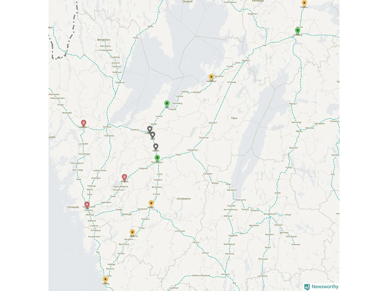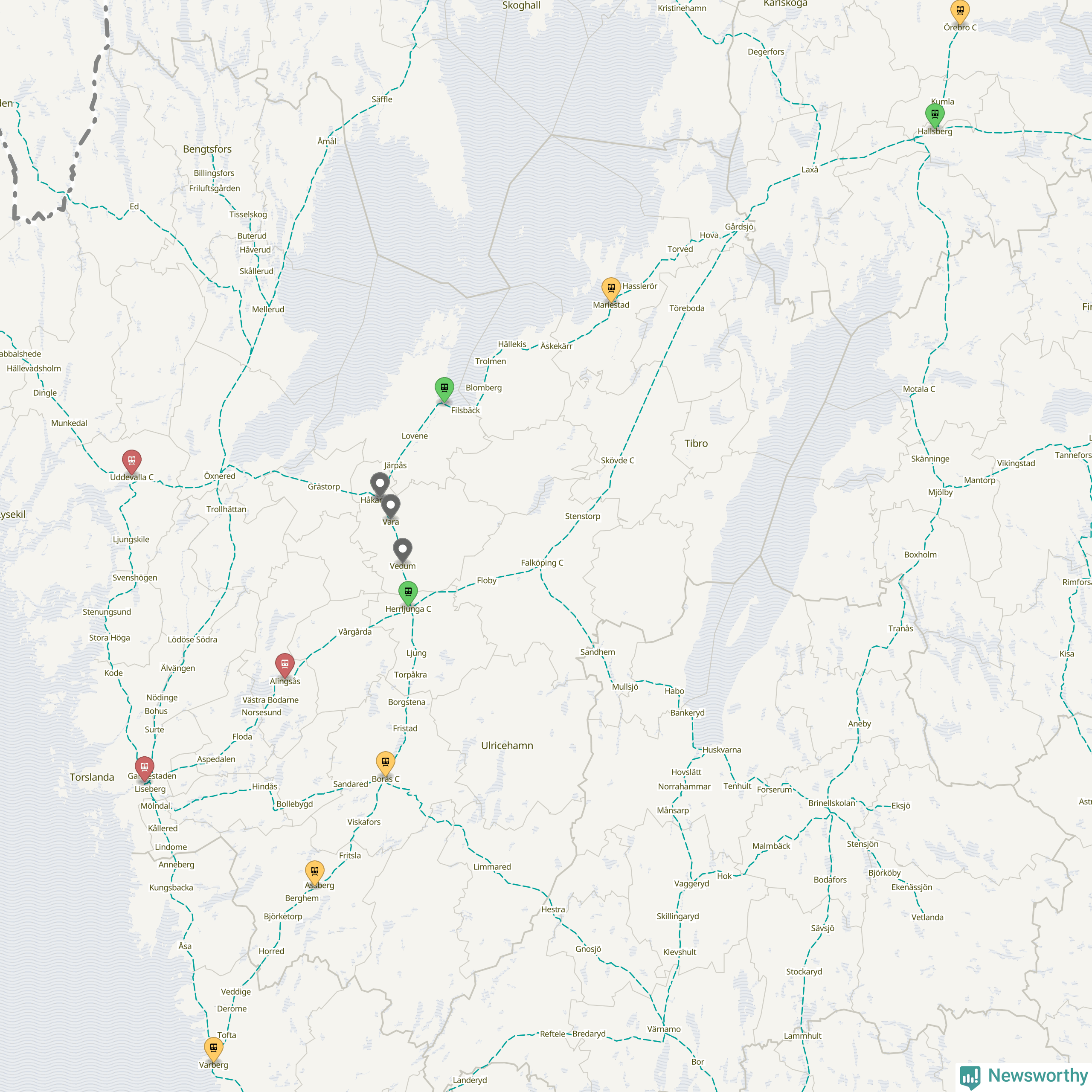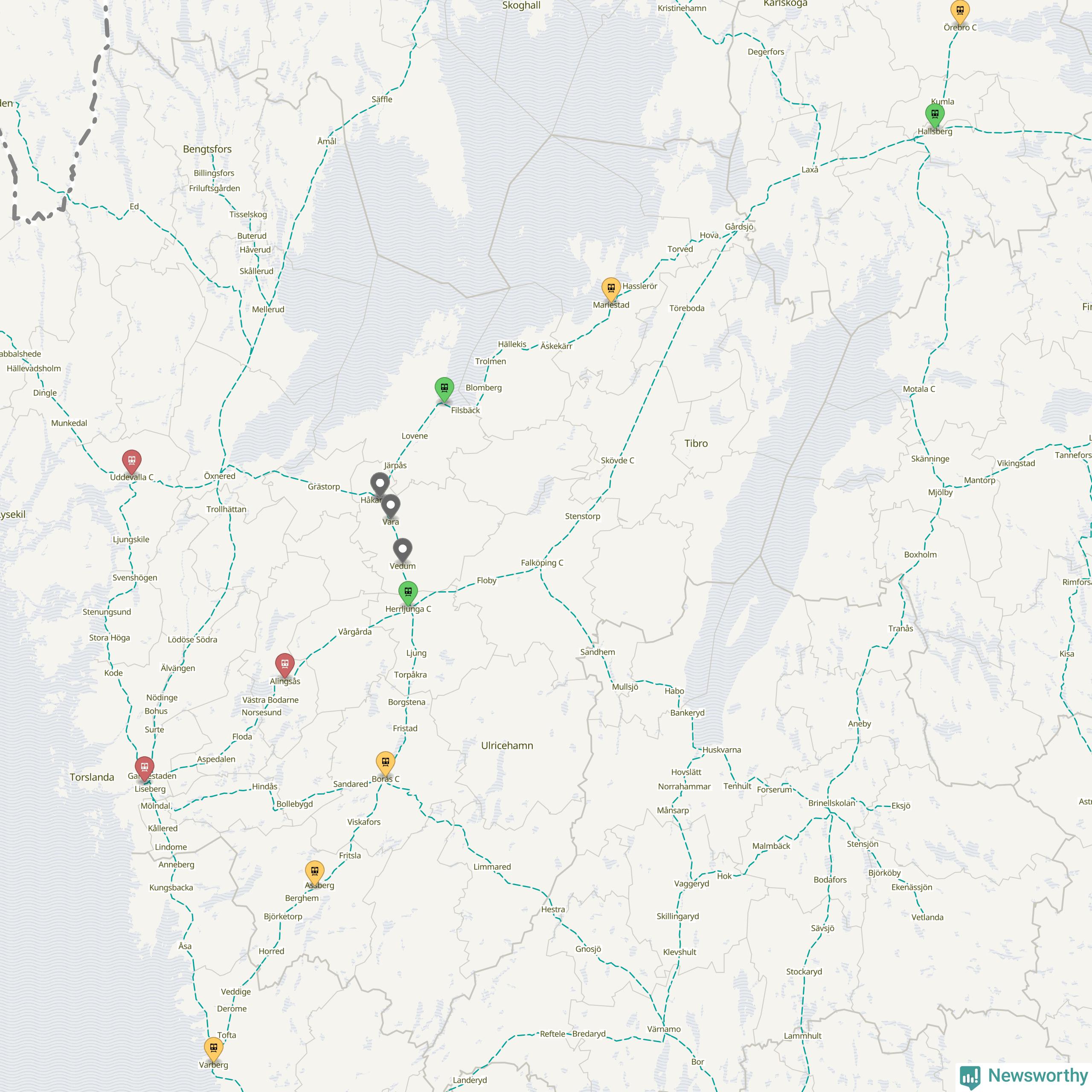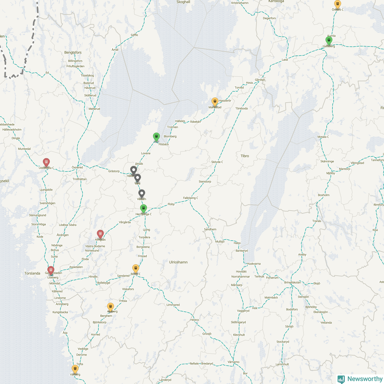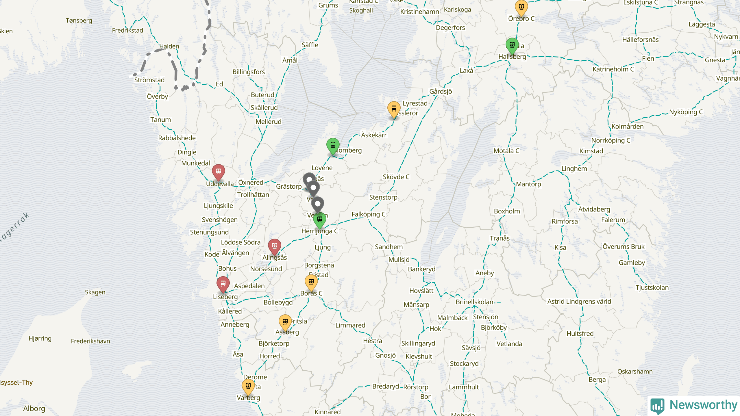 Kartdata från Mapbox, Newsworthy, OpenStreetMap och Trafikverket. Uppgifter om sträckor med passagerartrafik från jarnvag.net.