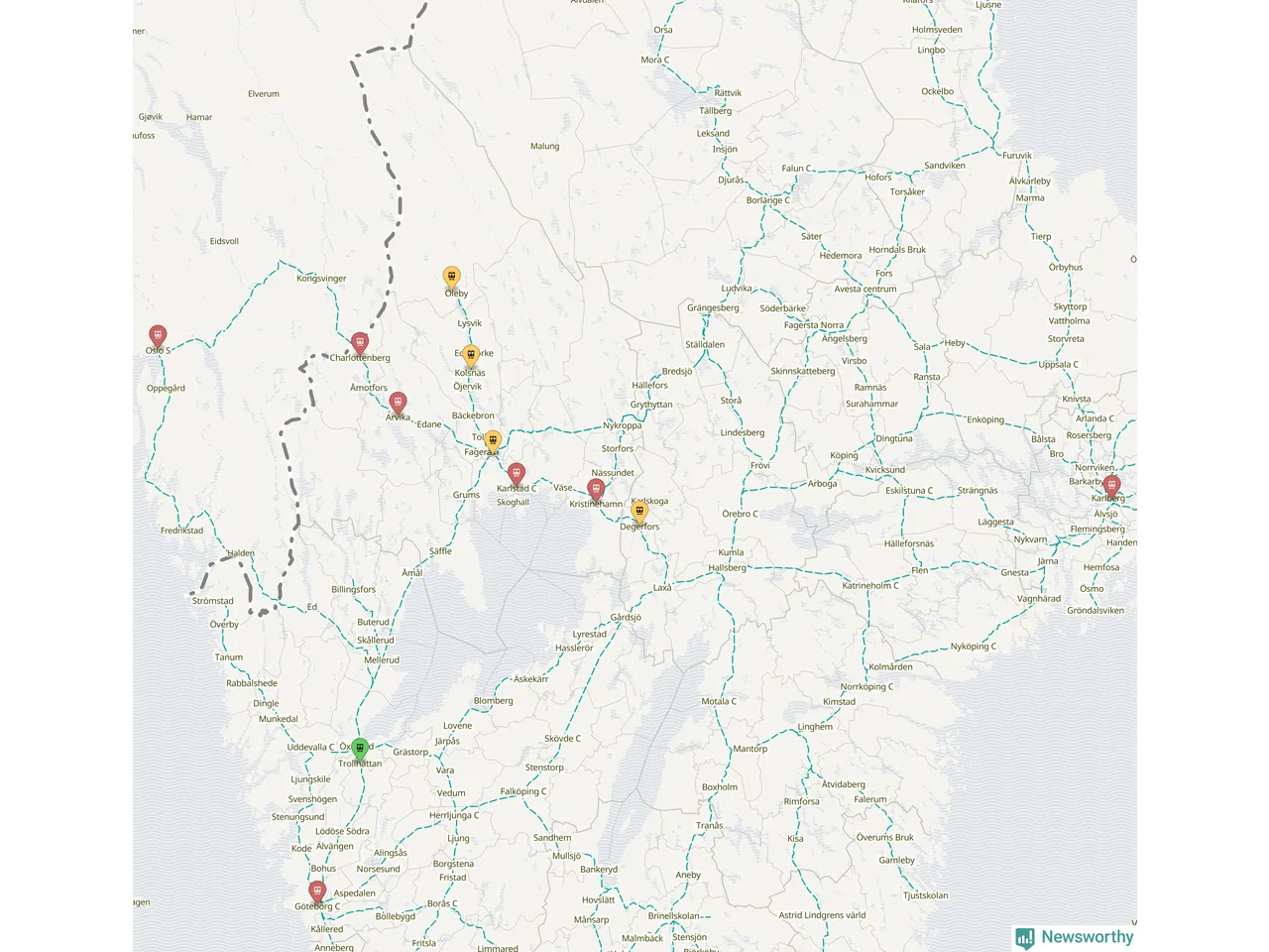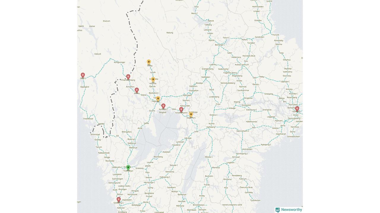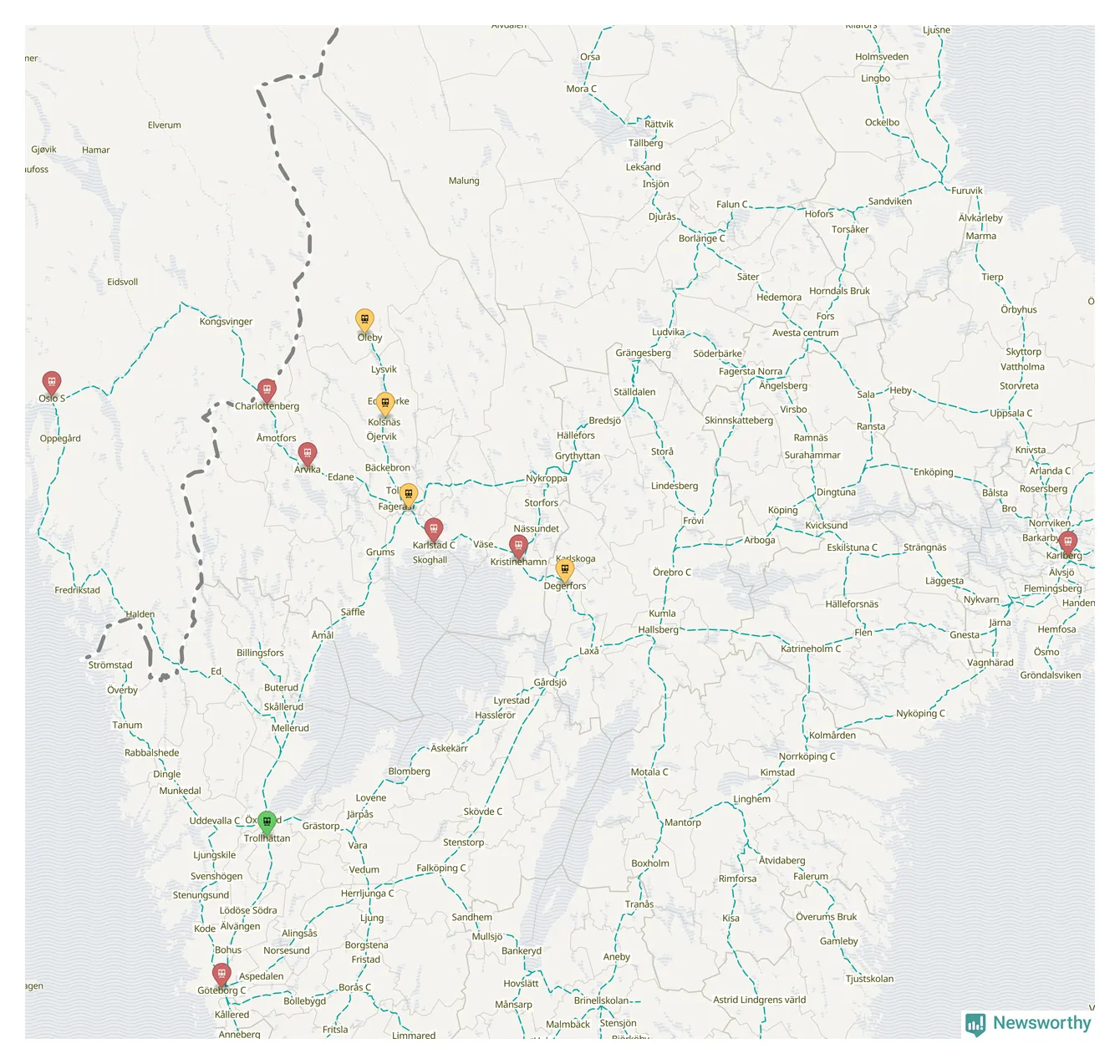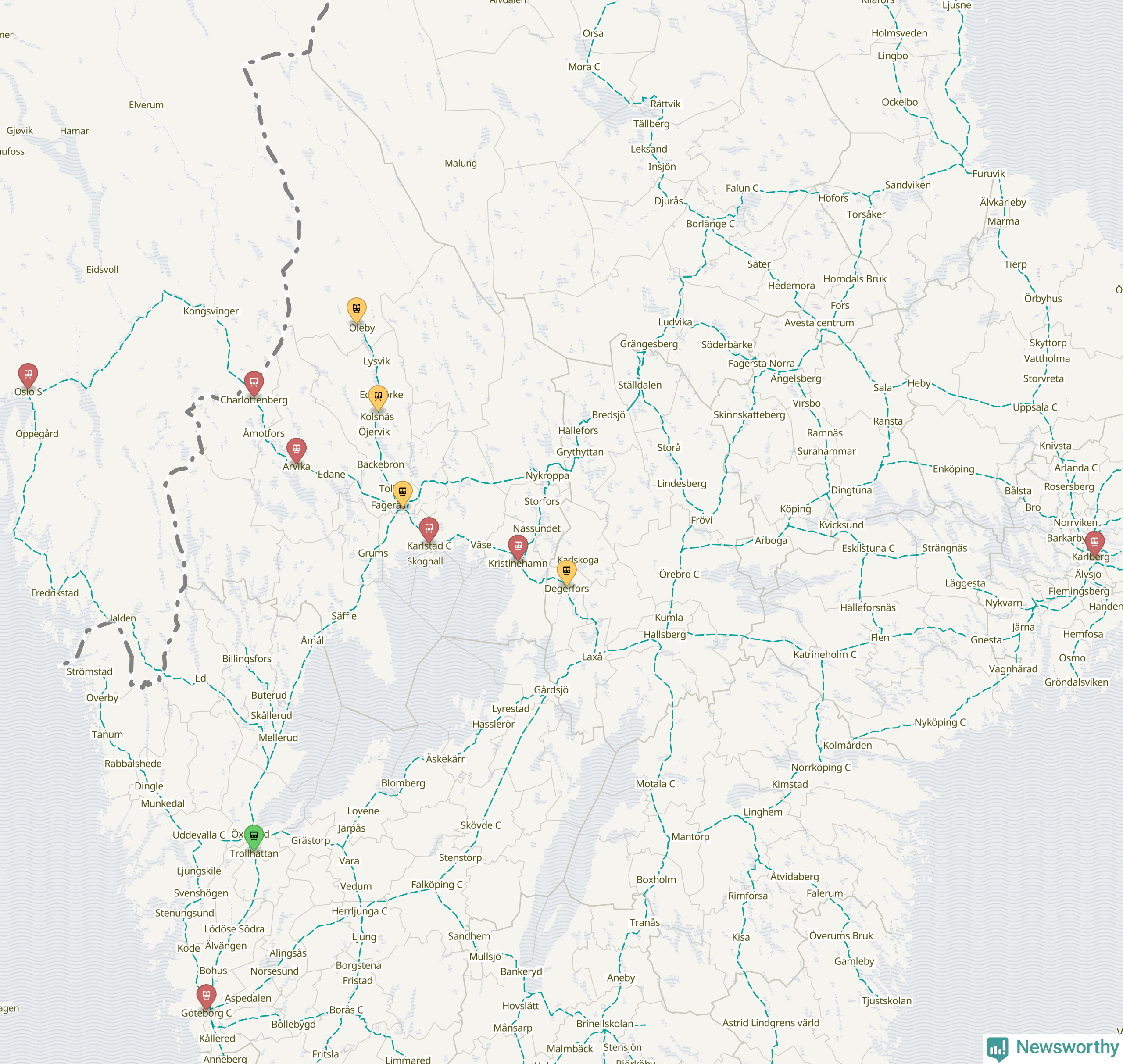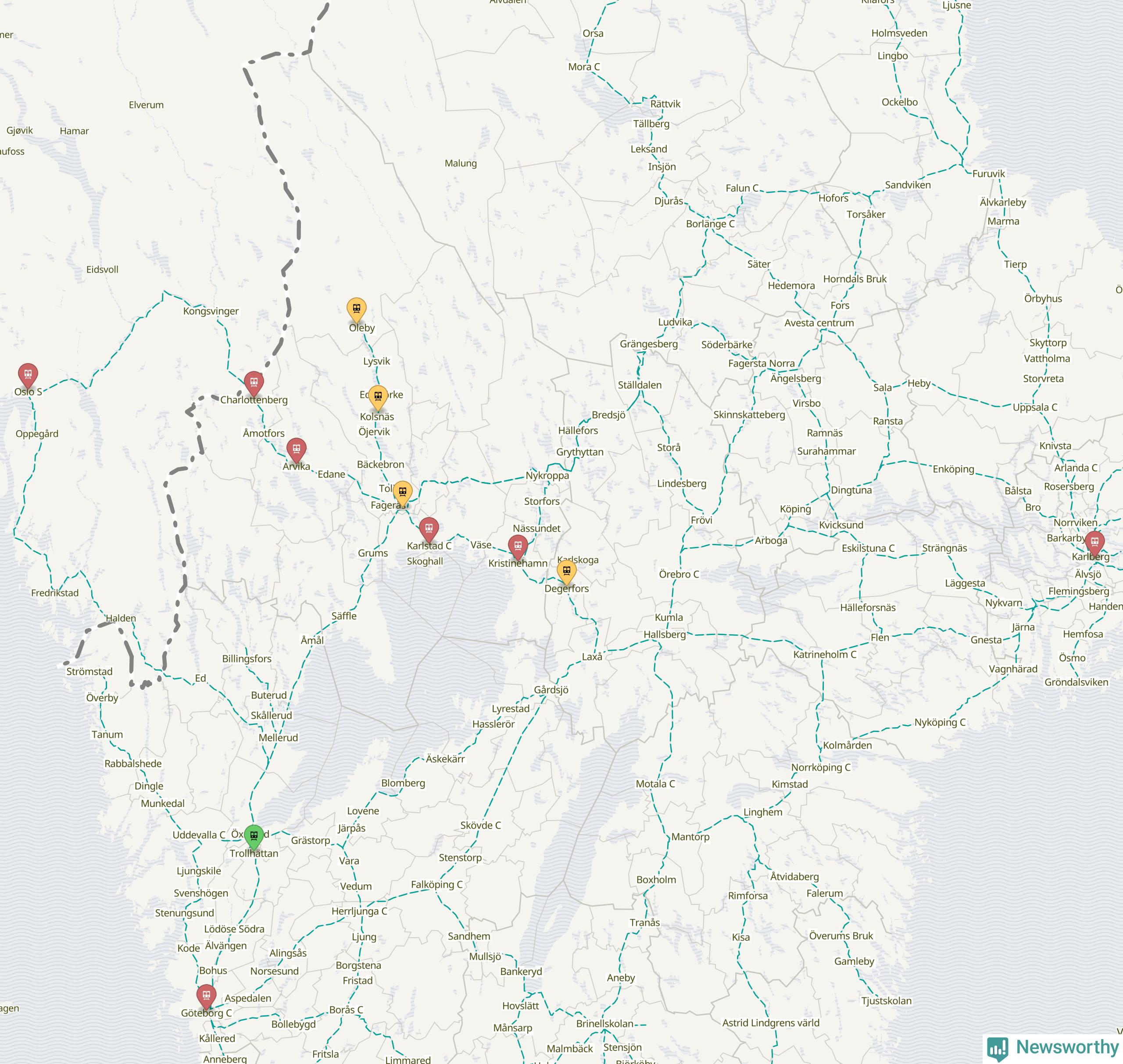 Kartdata från Mapbox, Newsworthy, OpenStreetMap och Trafikverket. Uppgifter om sträckor med passagerartrafik från jarnvag.net.