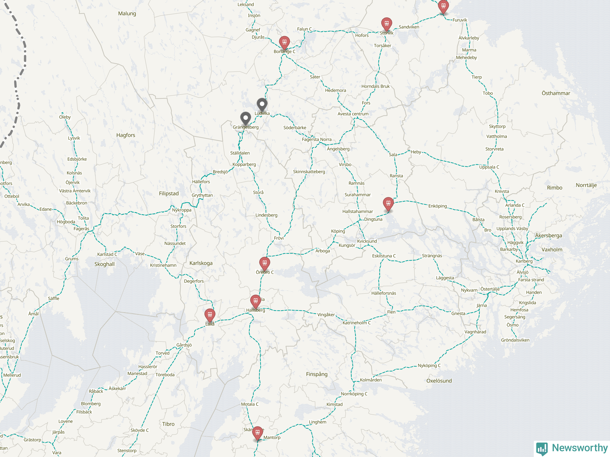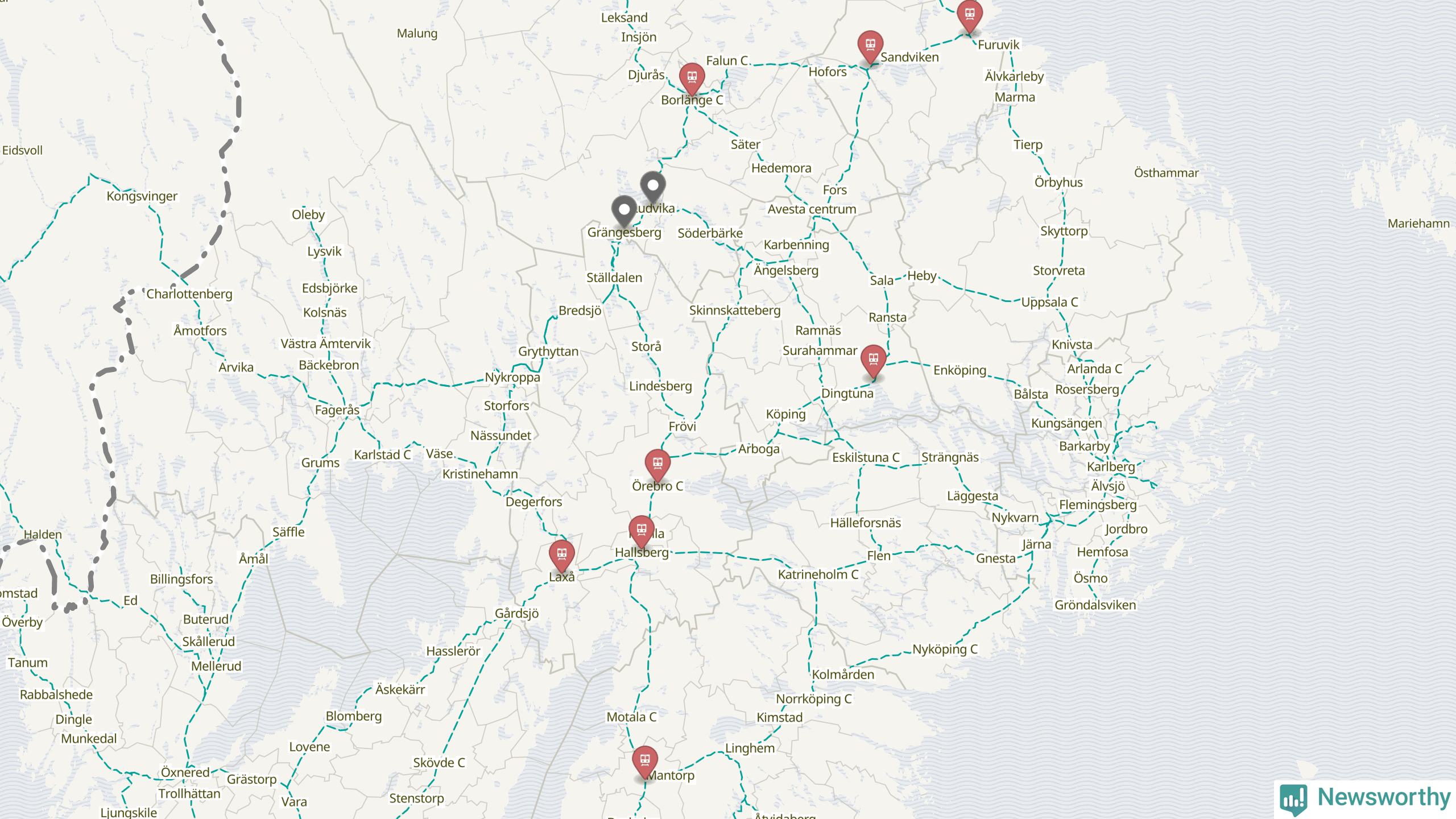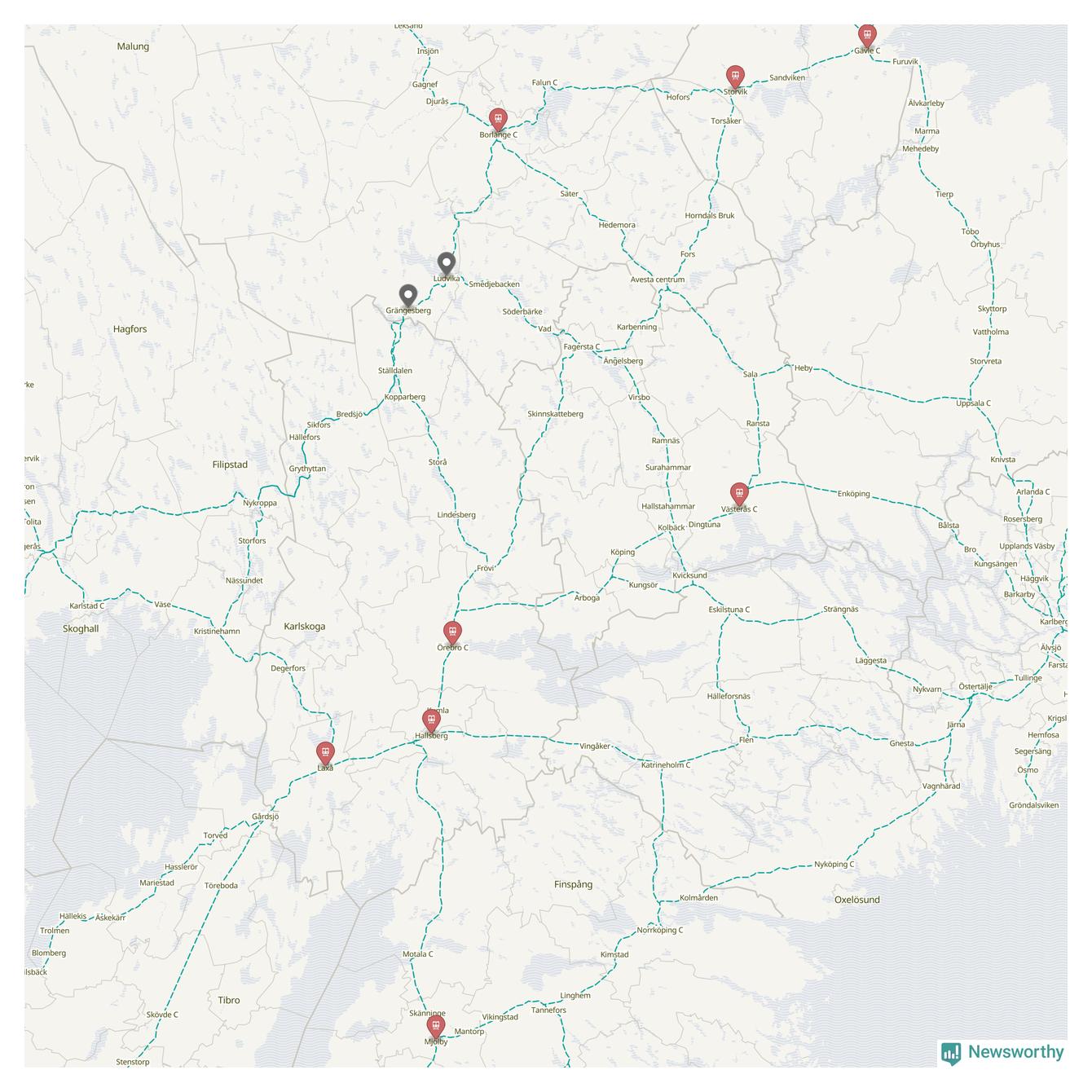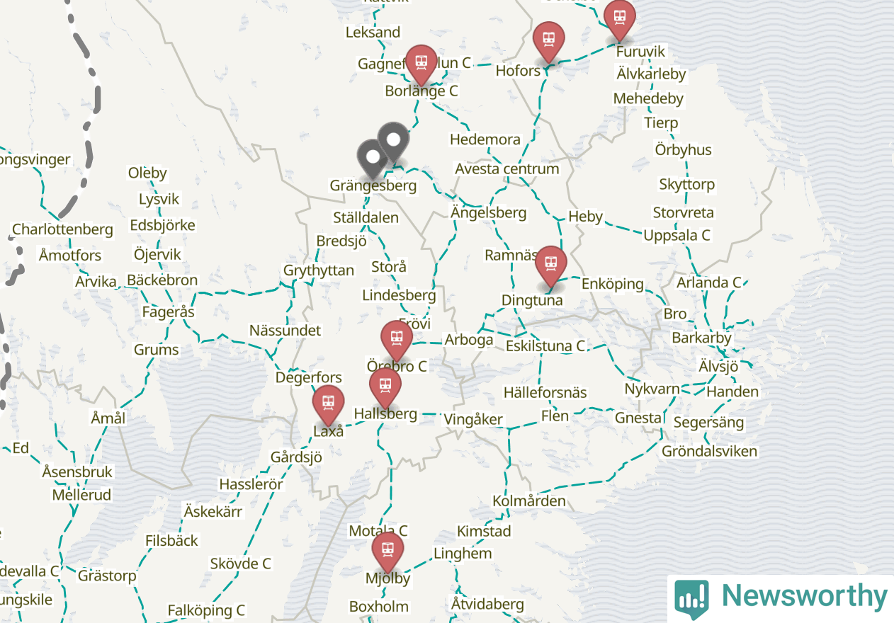 Kartdata från Mapbox, Newsworthy, OpenStreetMap och Trafikverket. Uppgifter om sträckor med passagerartrafik från jarnvag.net.
