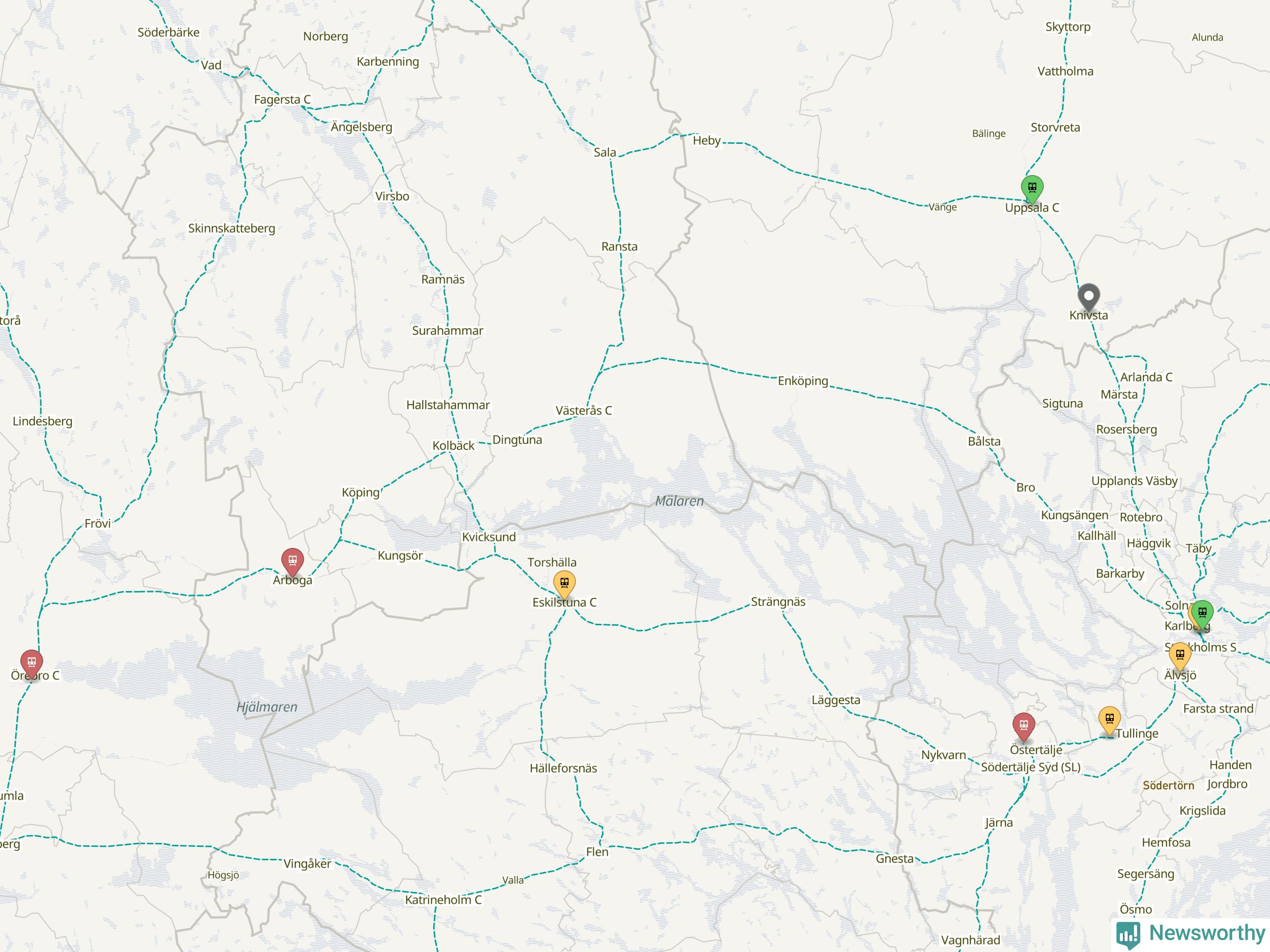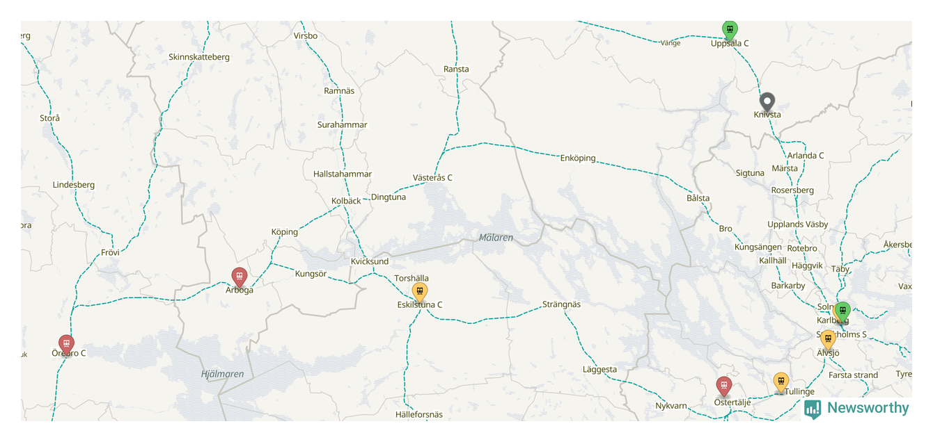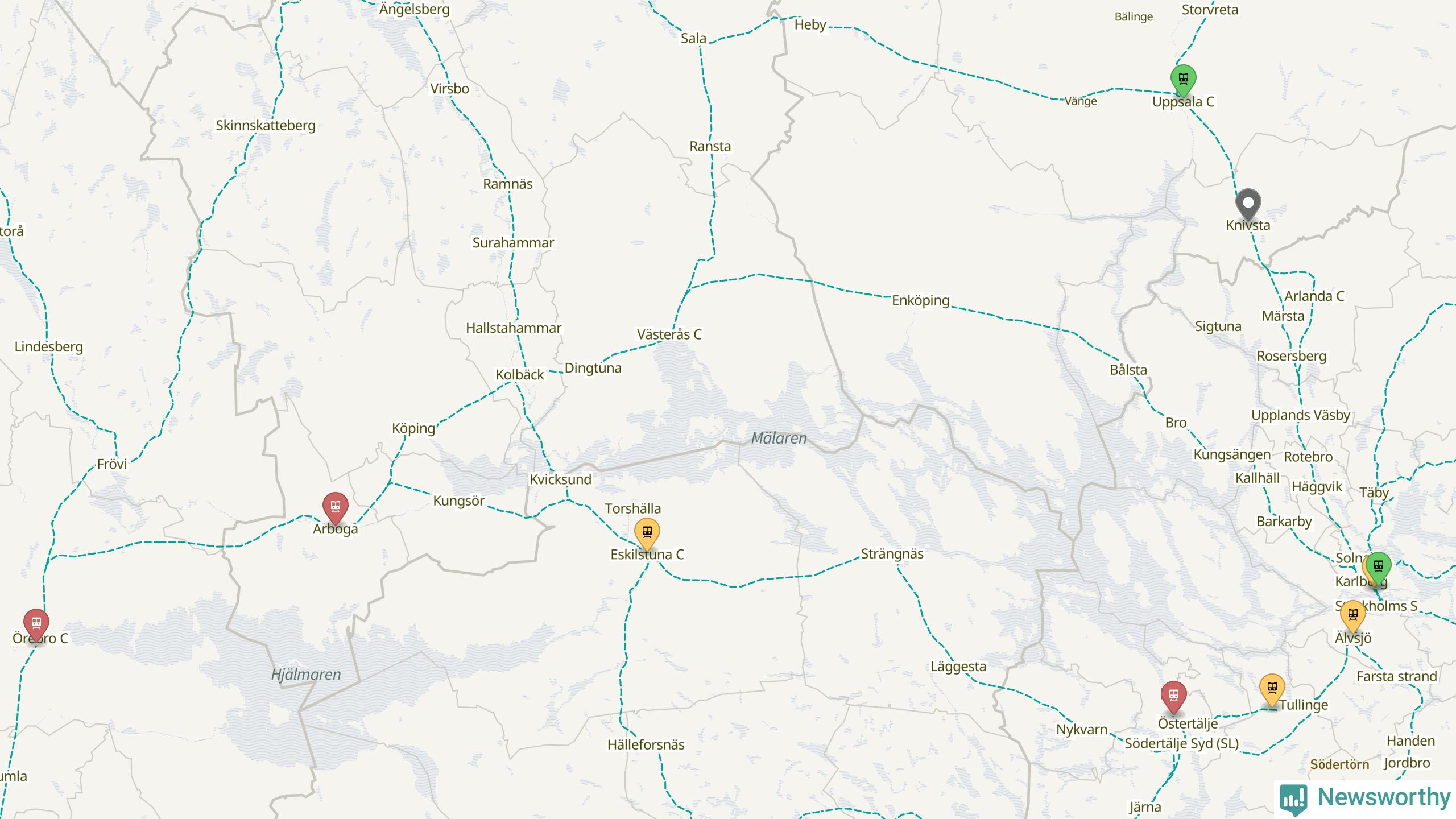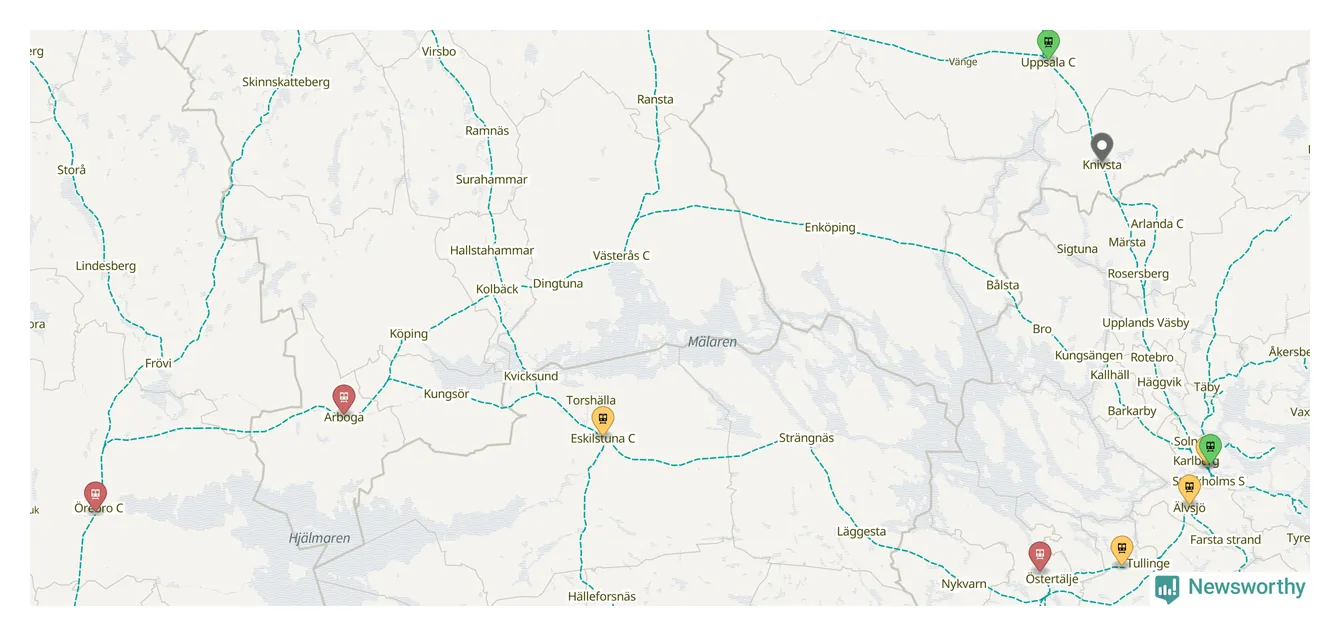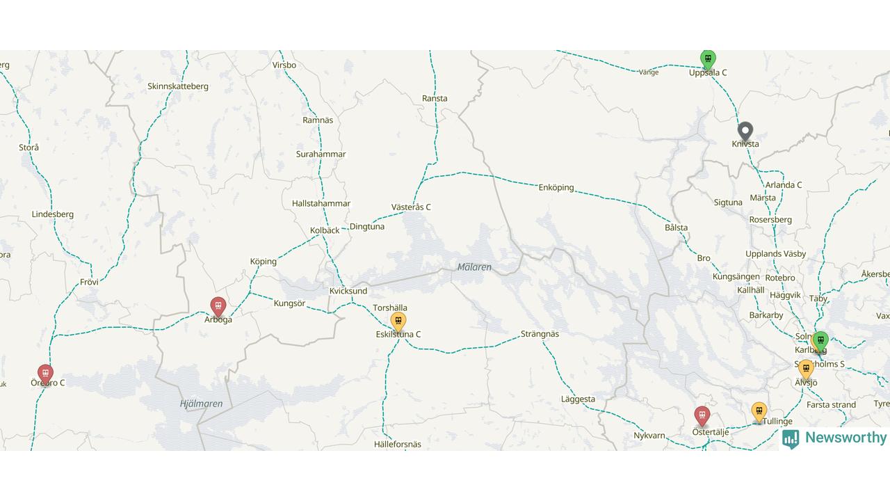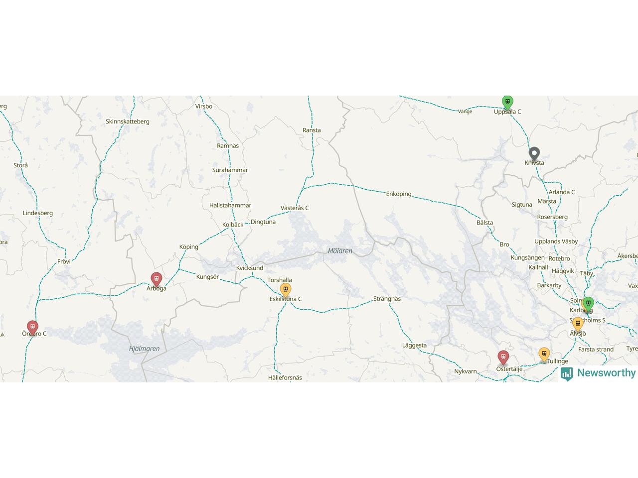 Kartdata från Mapbox, Newsworthy, OpenStreetMap och Trafikverket. Uppgifter om sträckor med passagerartrafik från jarnvag.net.