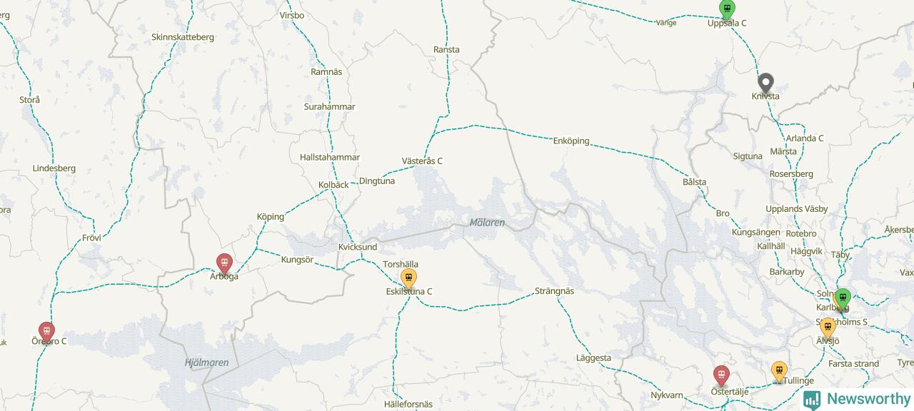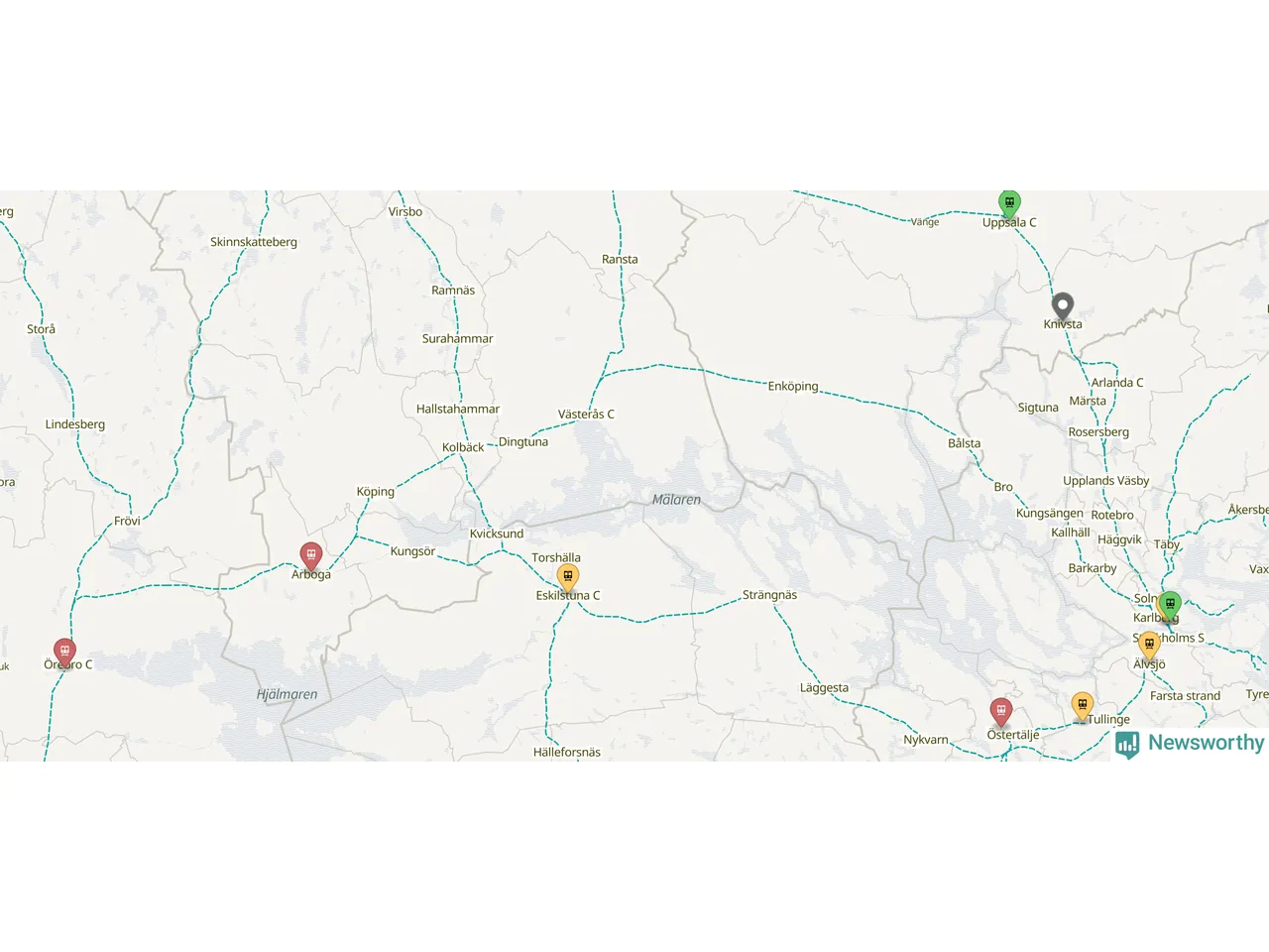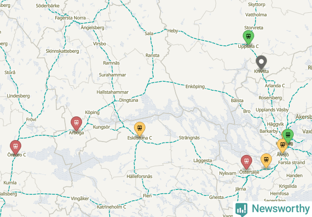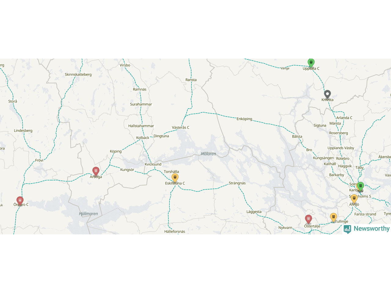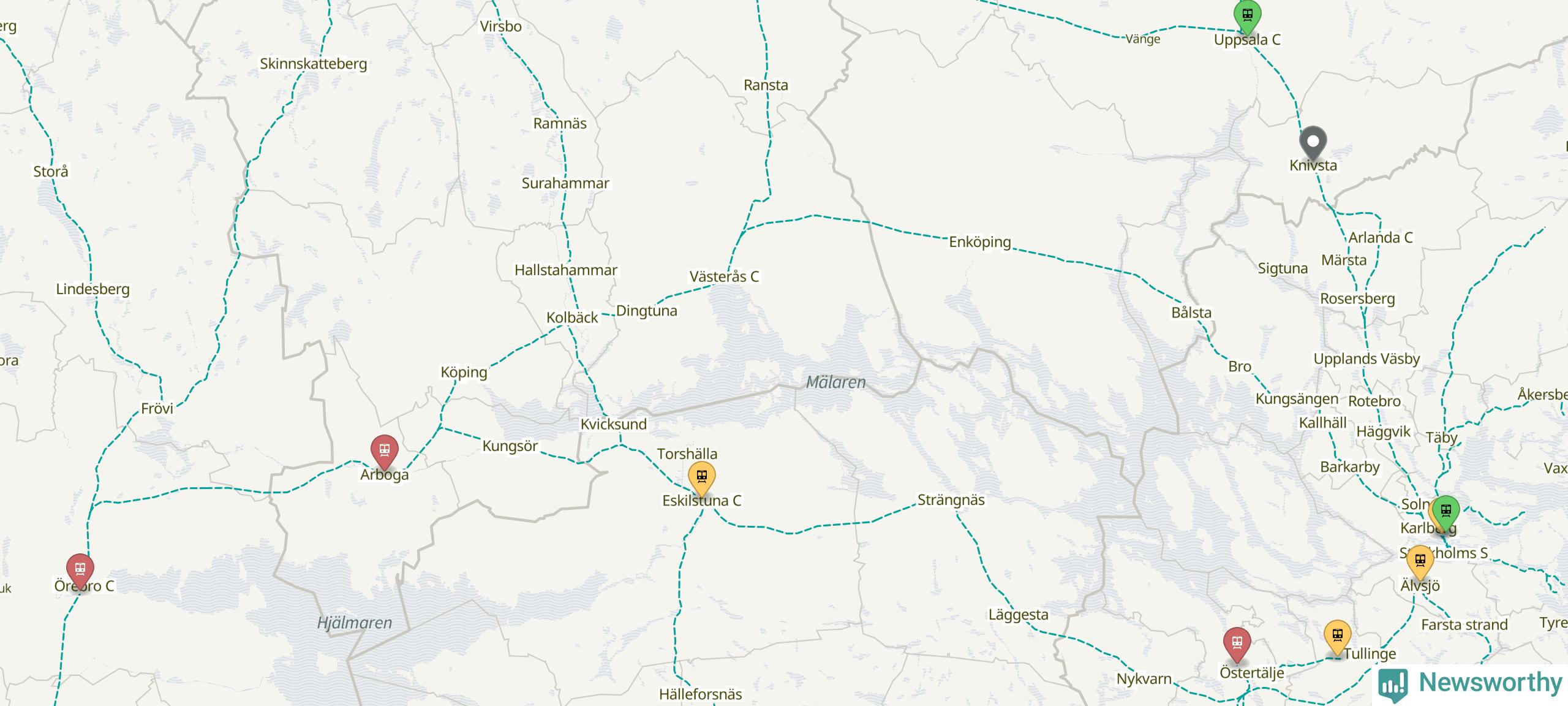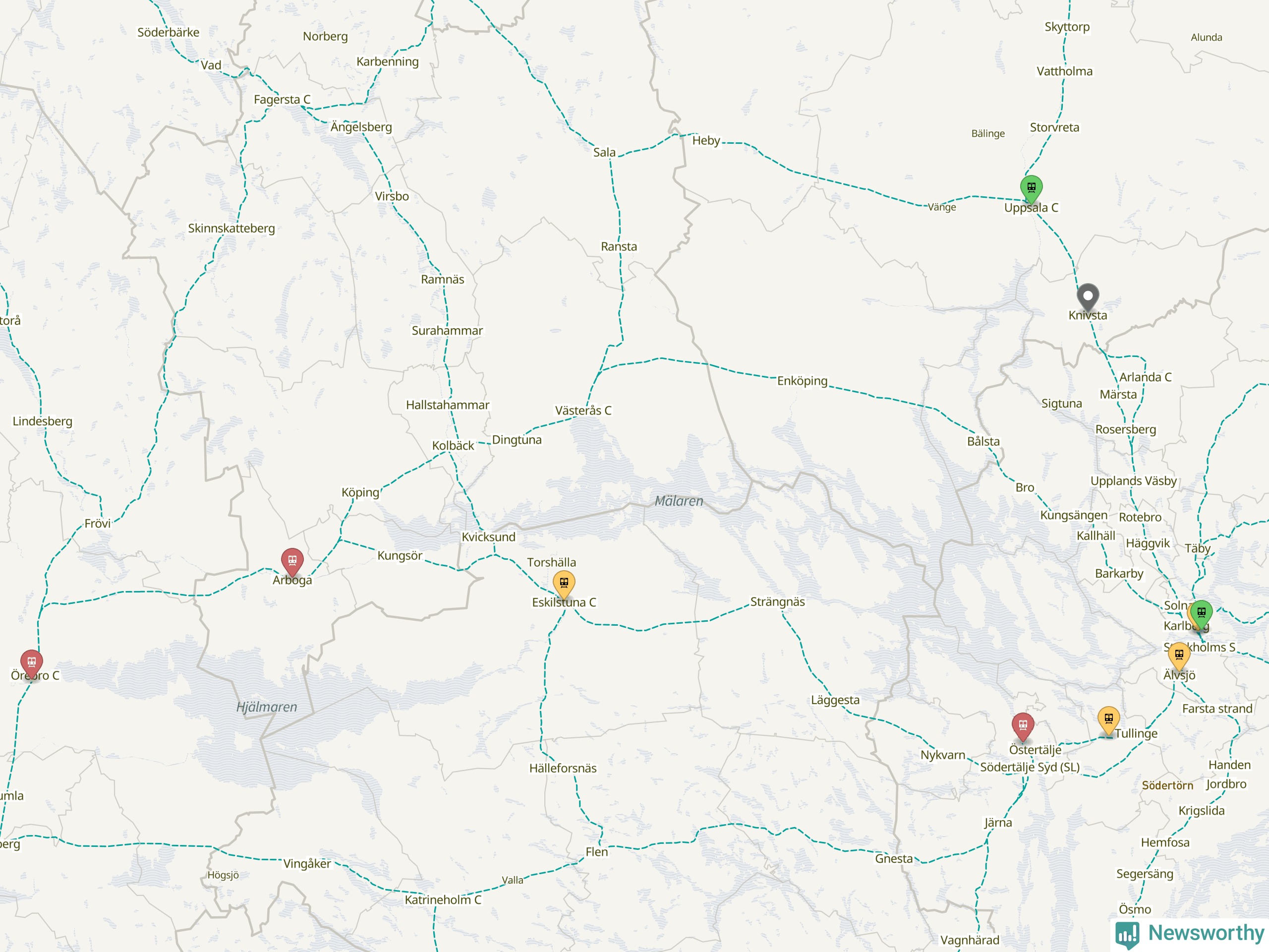 Kartdata från Mapbox, Newsworthy, OpenStreetMap och Trafikverket. Uppgifter om sträckor med passagerartrafik från jarnvag.net.