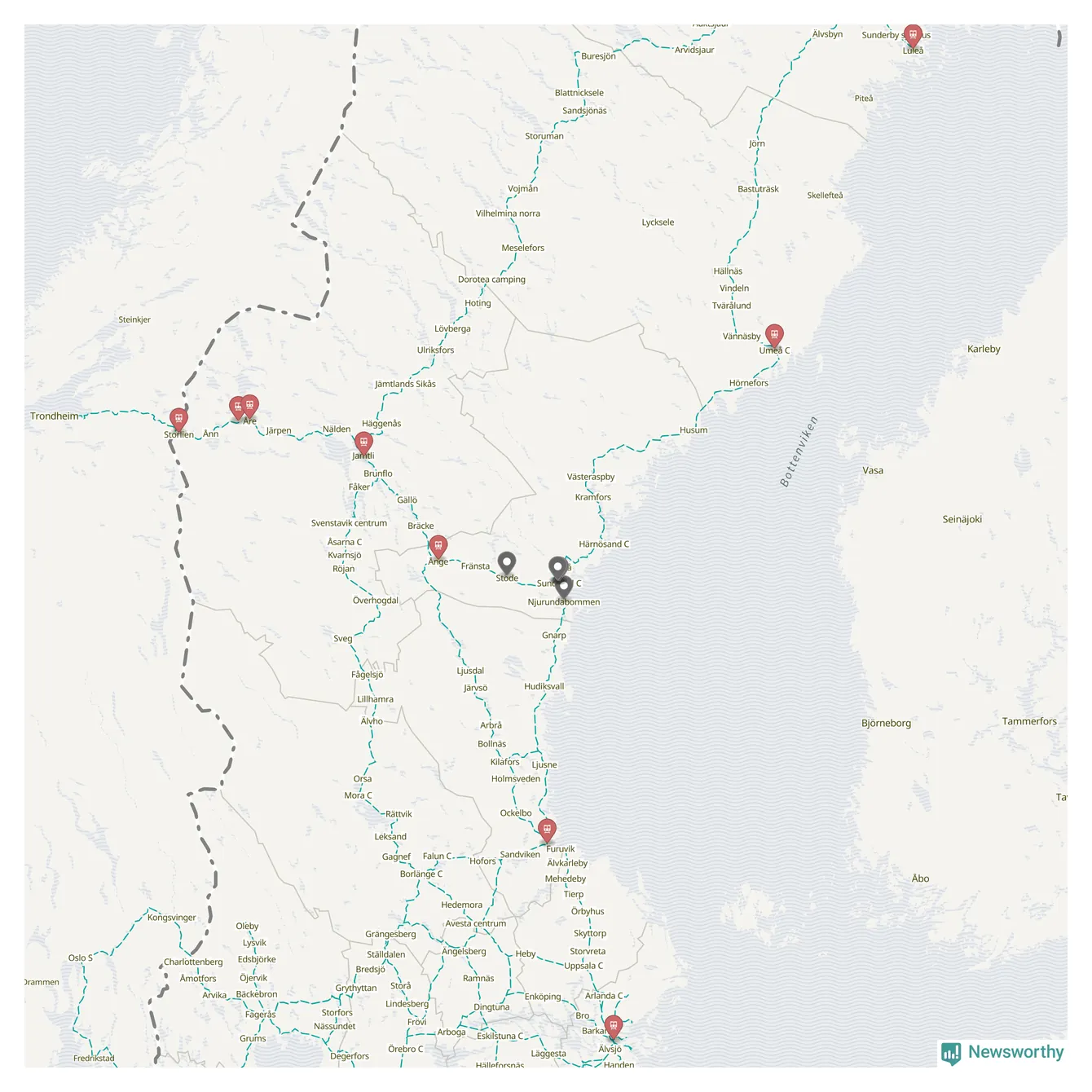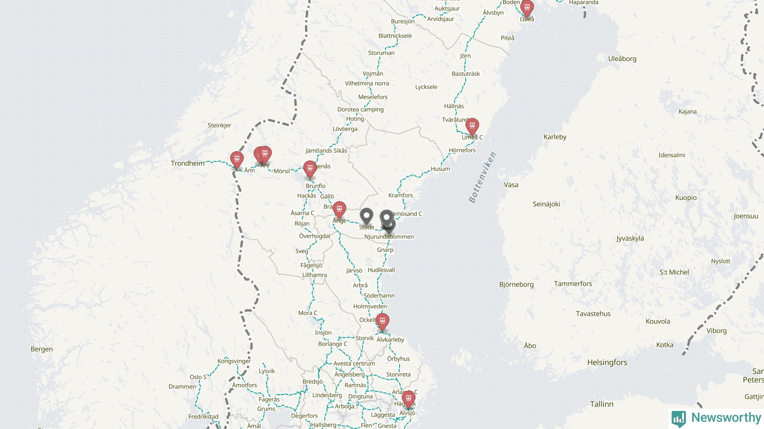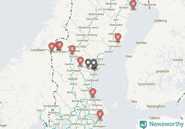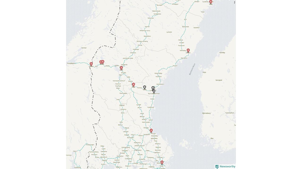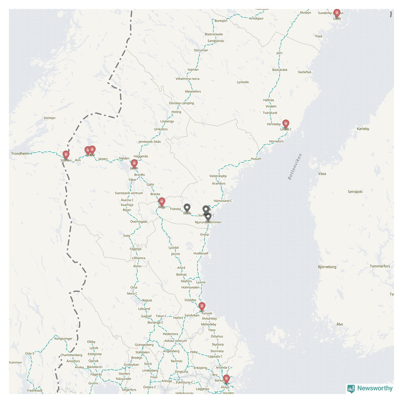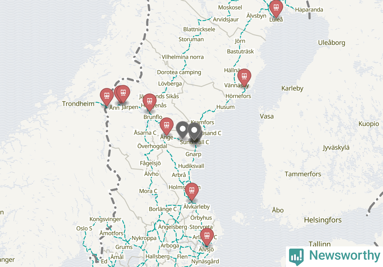 Kartdata från Mapbox, Newsworthy, OpenStreetMap och Trafikverket. Uppgifter om sträckor med passagerartrafik från jarnvag.net.
