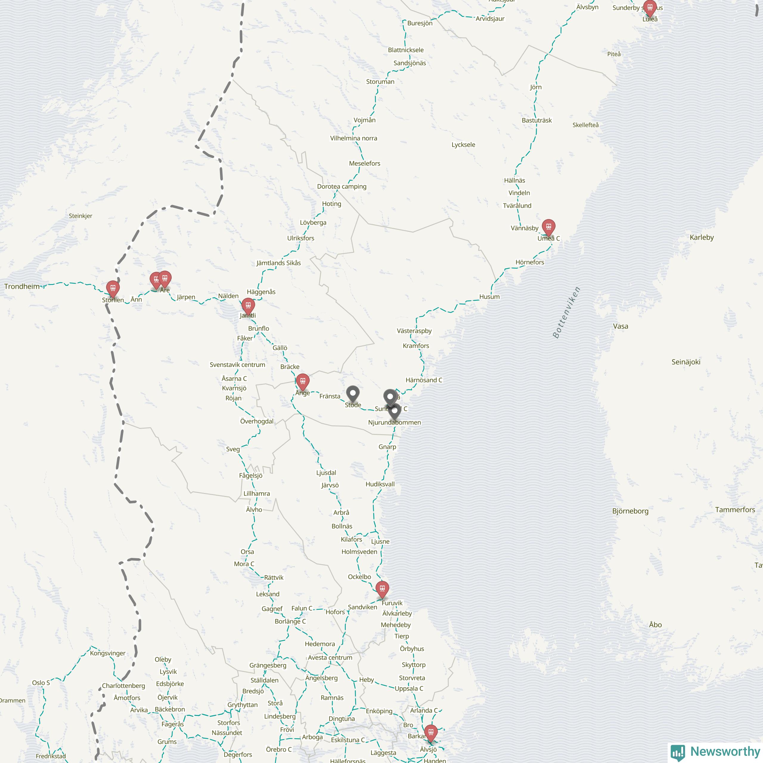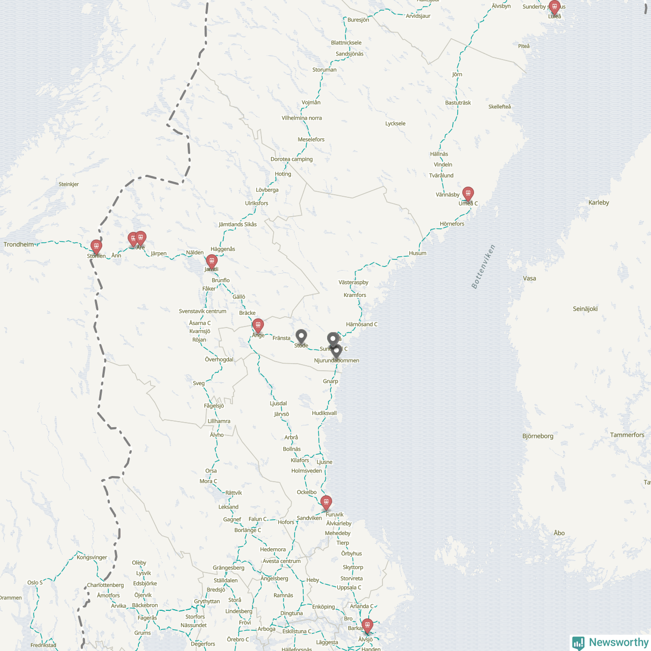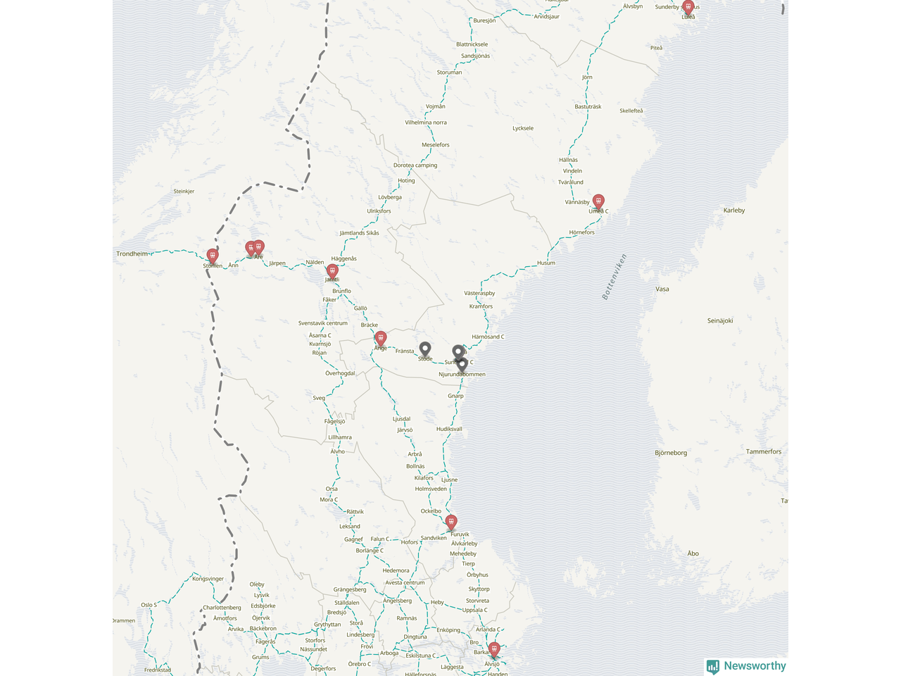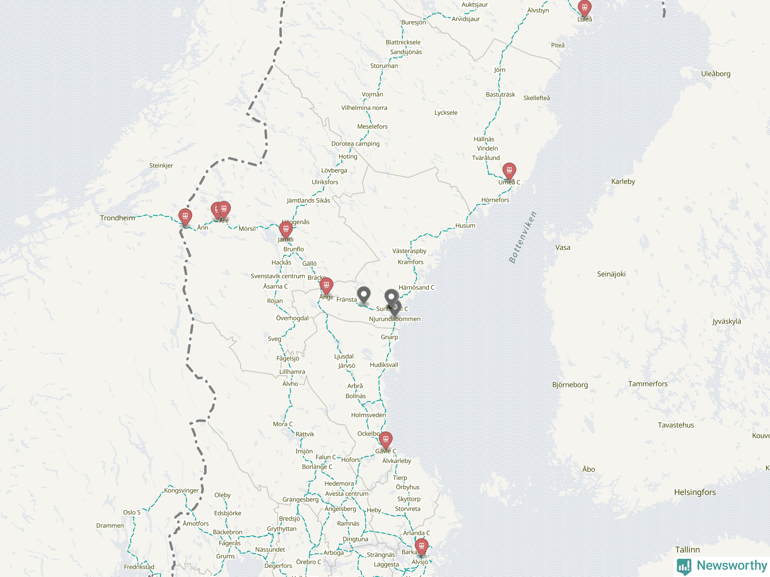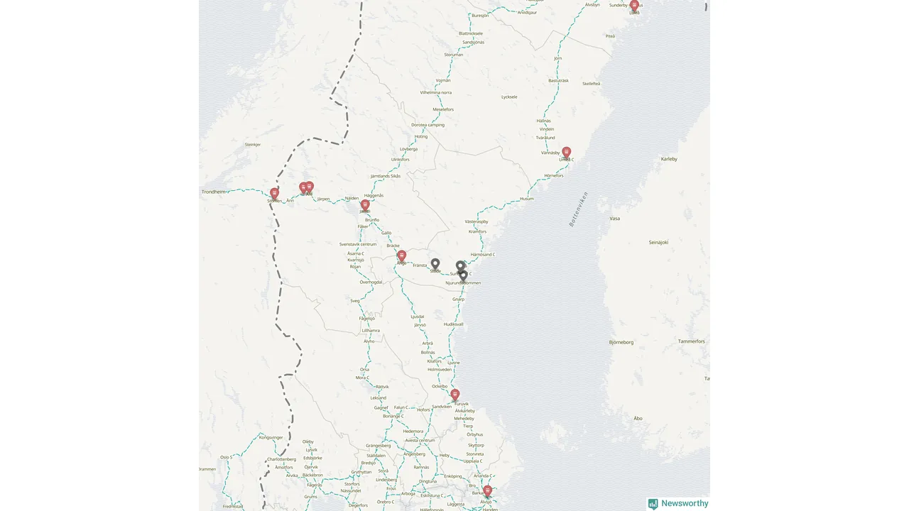 Kartdata från Mapbox, Newsworthy, OpenStreetMap och Trafikverket. Uppgifter om sträckor med passagerartrafik från jarnvag.net.