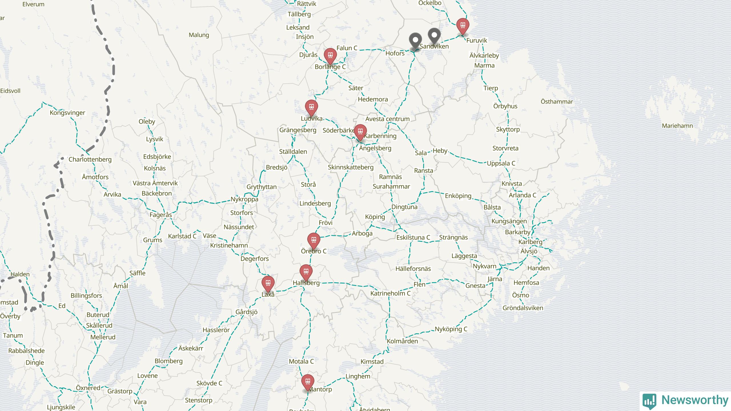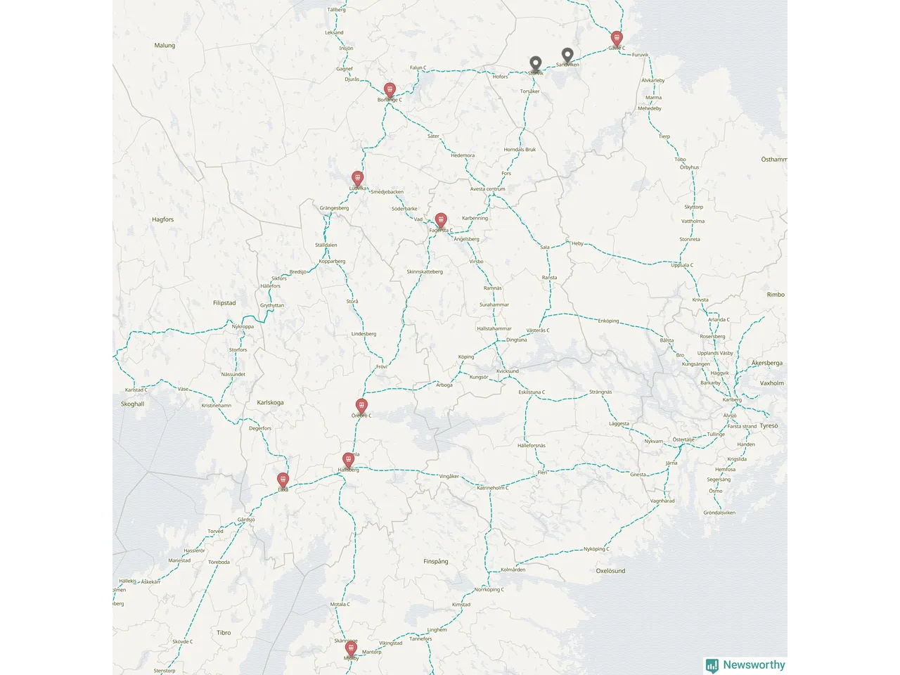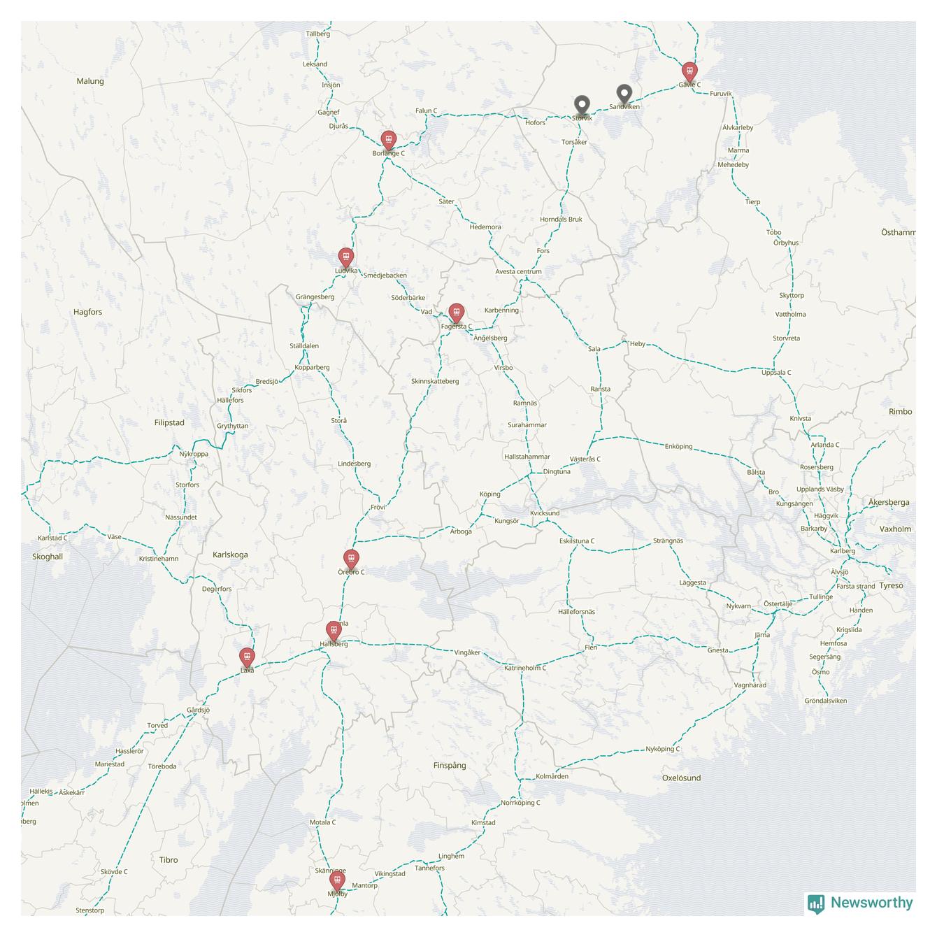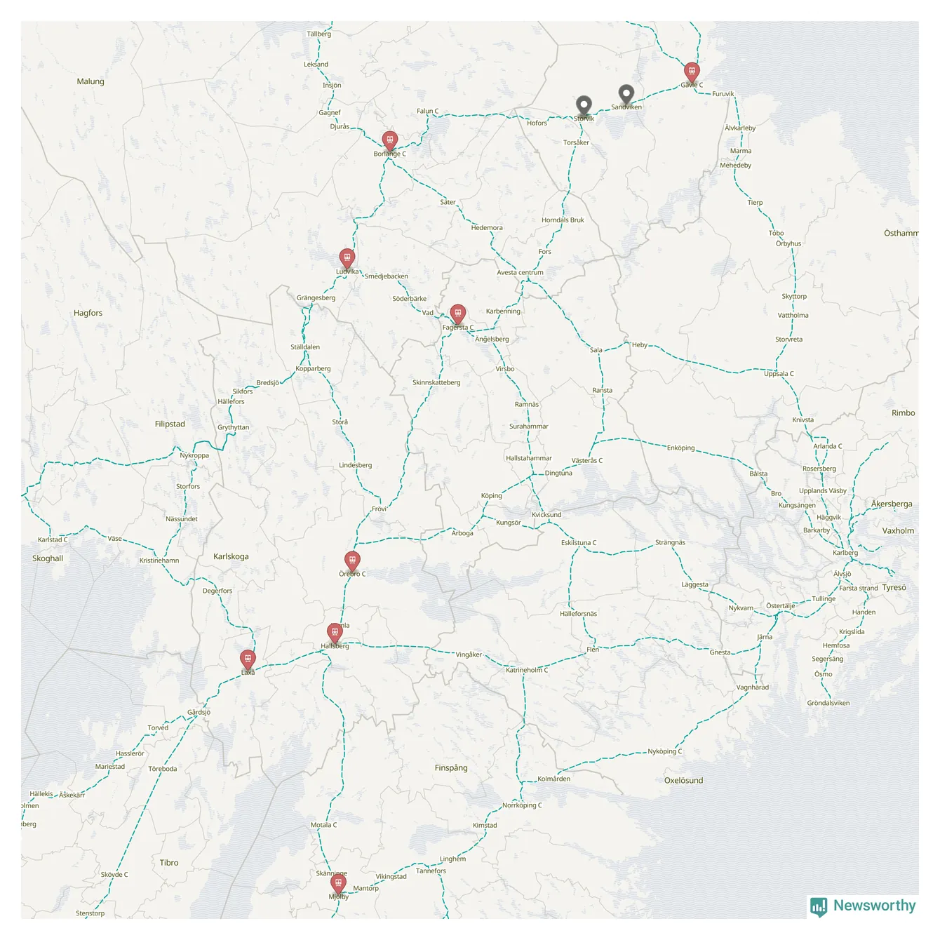 Kartdata från Mapbox, Newsworthy, OpenStreetMap och Trafikverket. Uppgifter om sträckor med passagerartrafik från jarnvag.net.