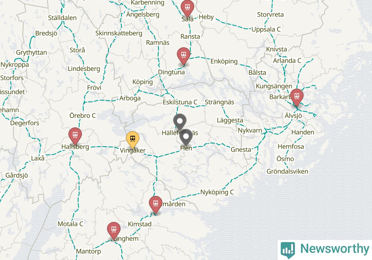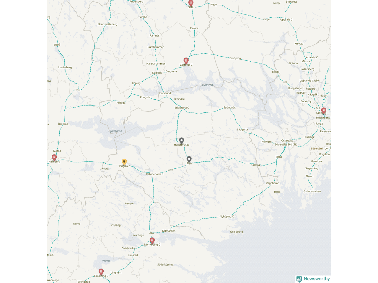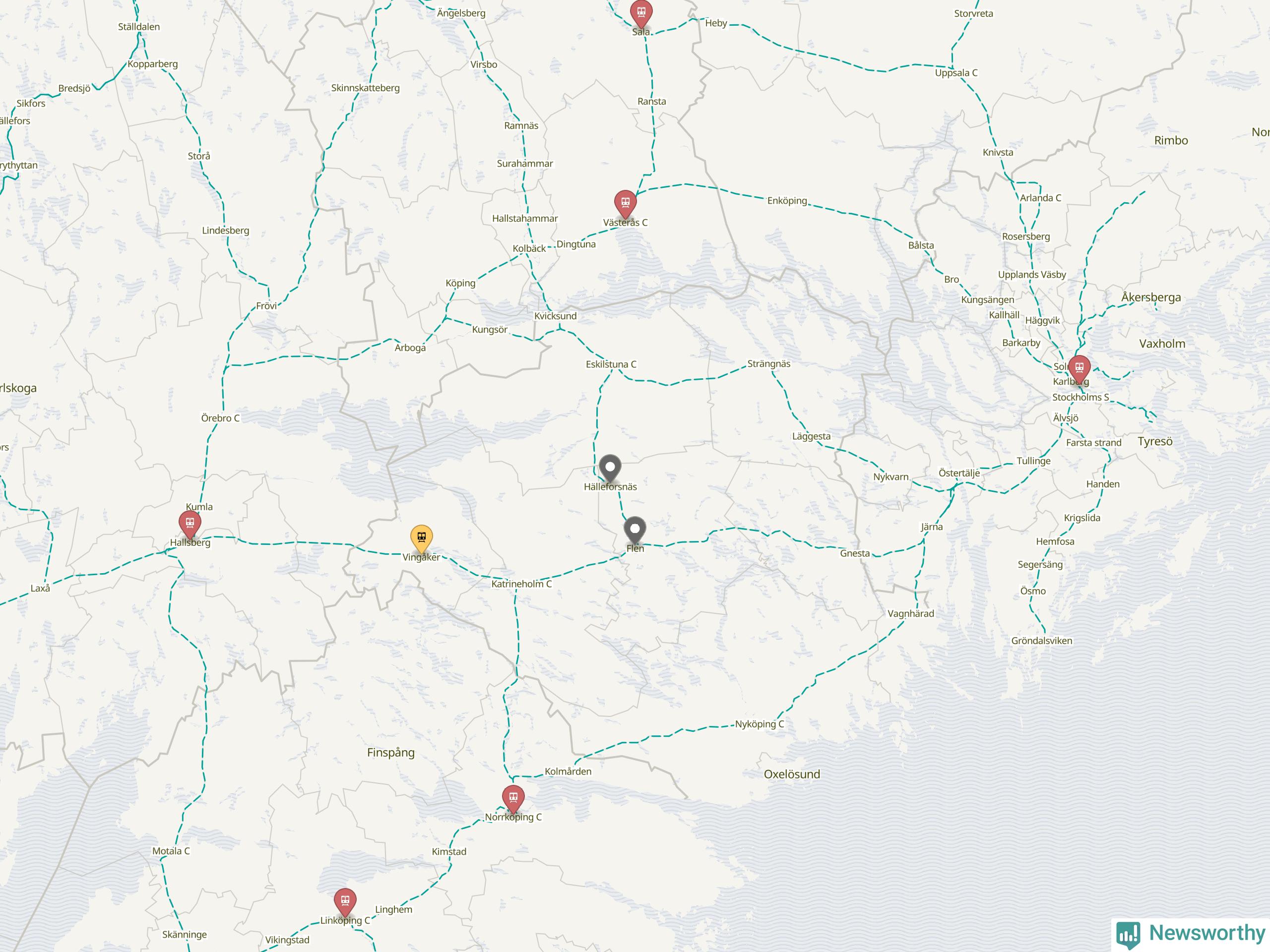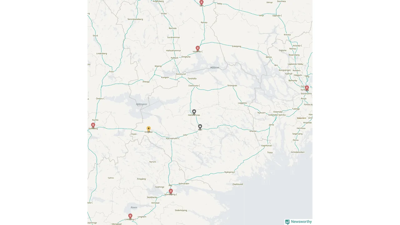 Kartdata från Mapbox, Newsworthy, OpenStreetMap och Trafikverket. Uppgifter om sträckor med passagerartrafik från jarnvag.net.