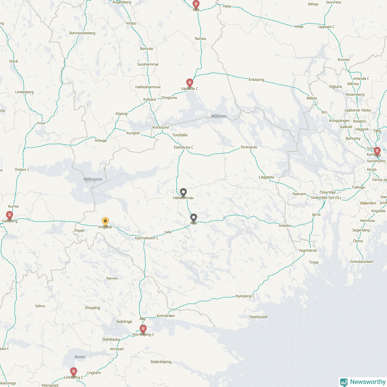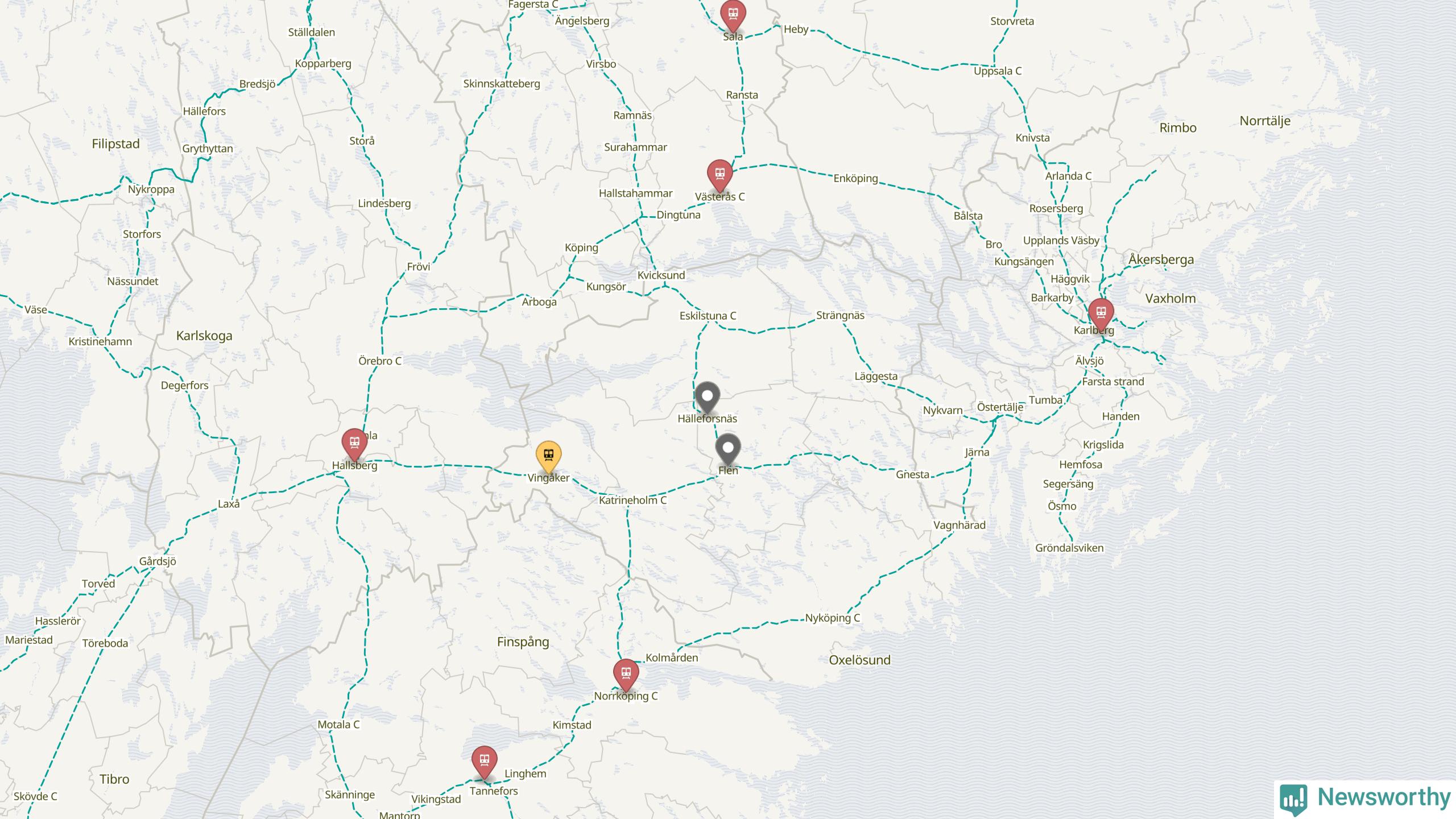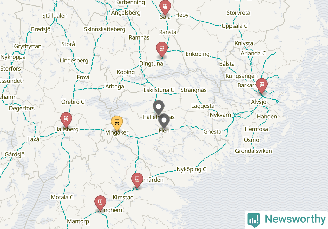 Kartdata från Mapbox, Newsworthy, OpenStreetMap och Trafikverket. Uppgifter om sträckor med passagerartrafik från jarnvag.net.