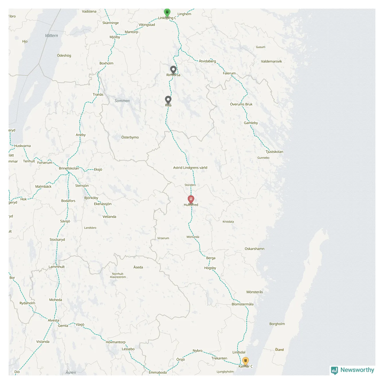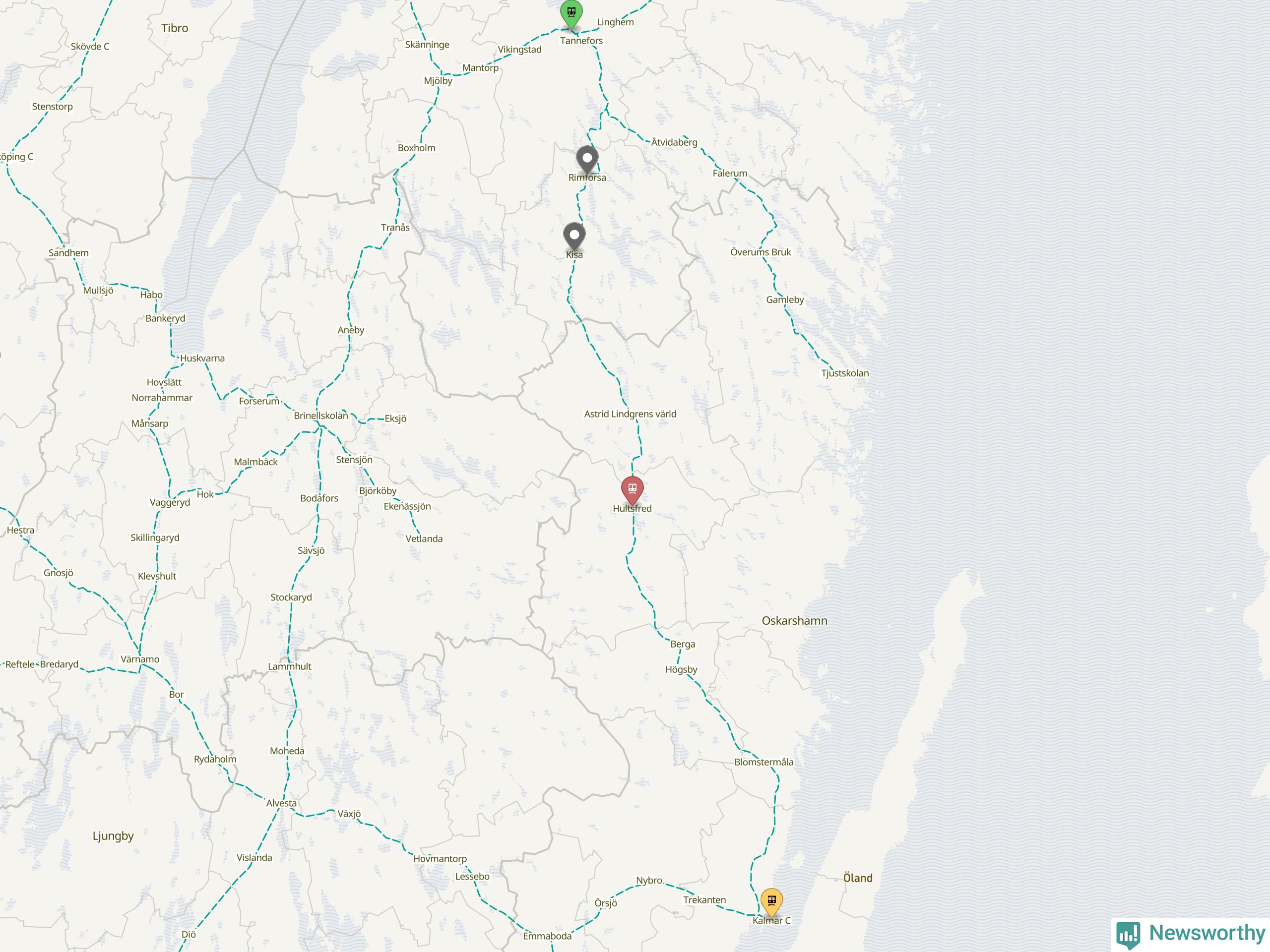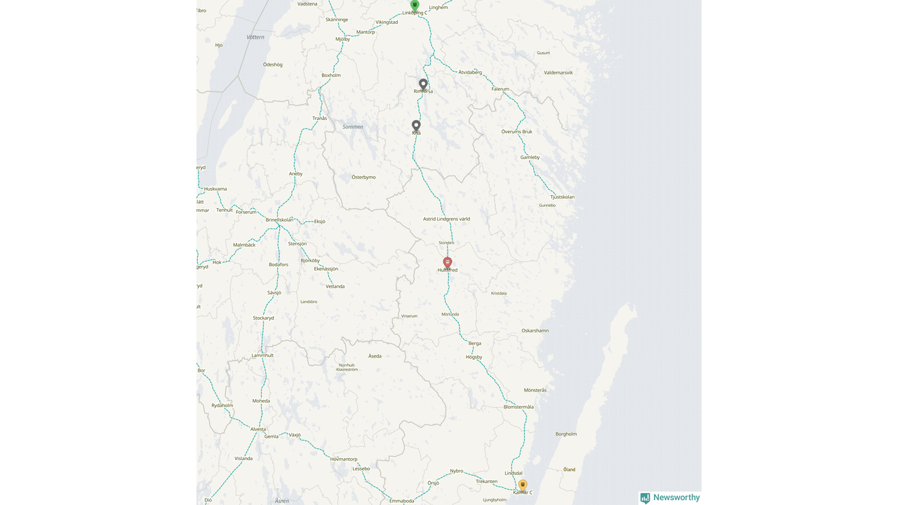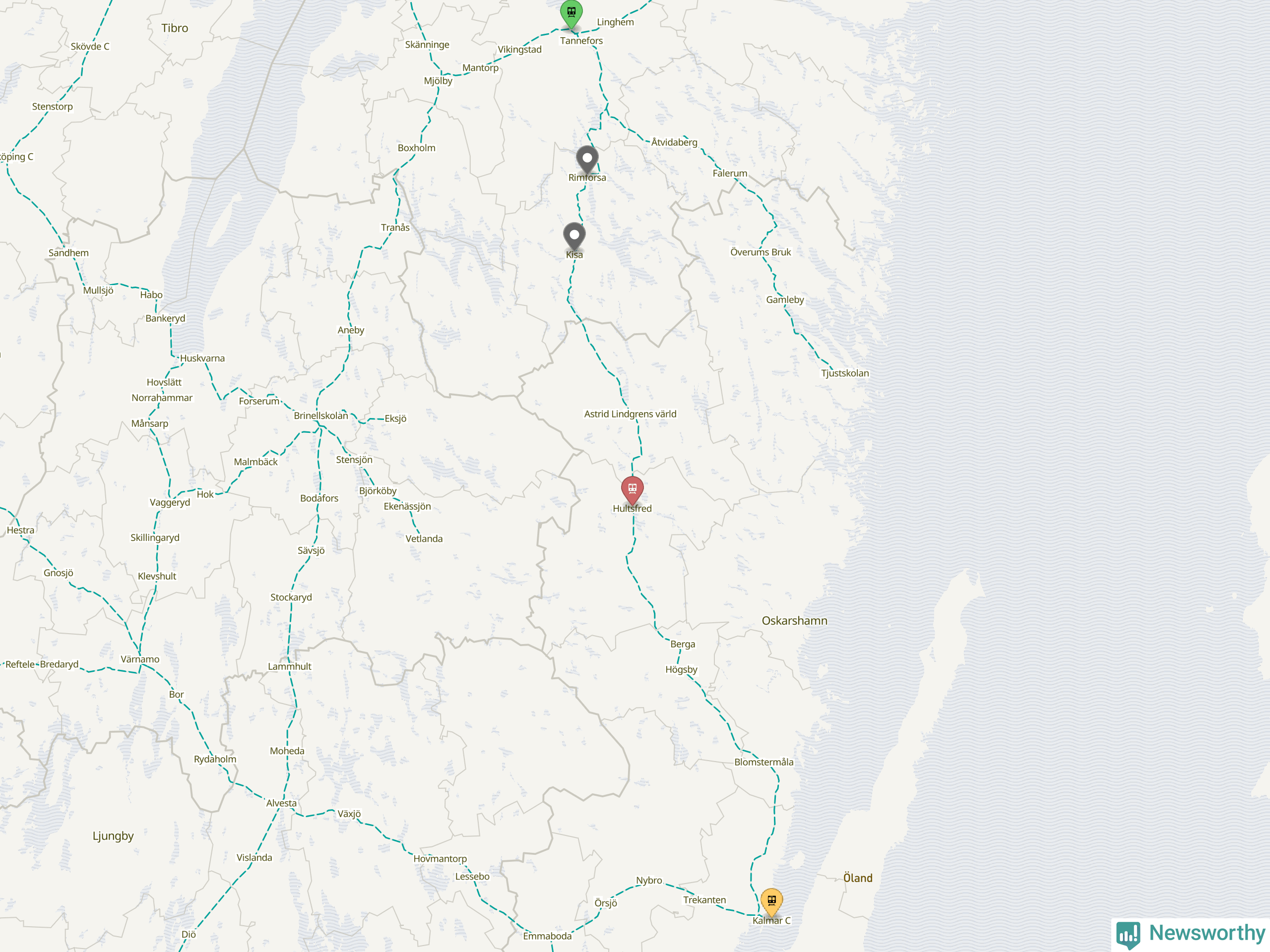 Kartdata från Mapbox, Newsworthy, OpenStreetMap och Trafikverket. Uppgifter om sträckor med passagerartrafik från jarnvag.net.