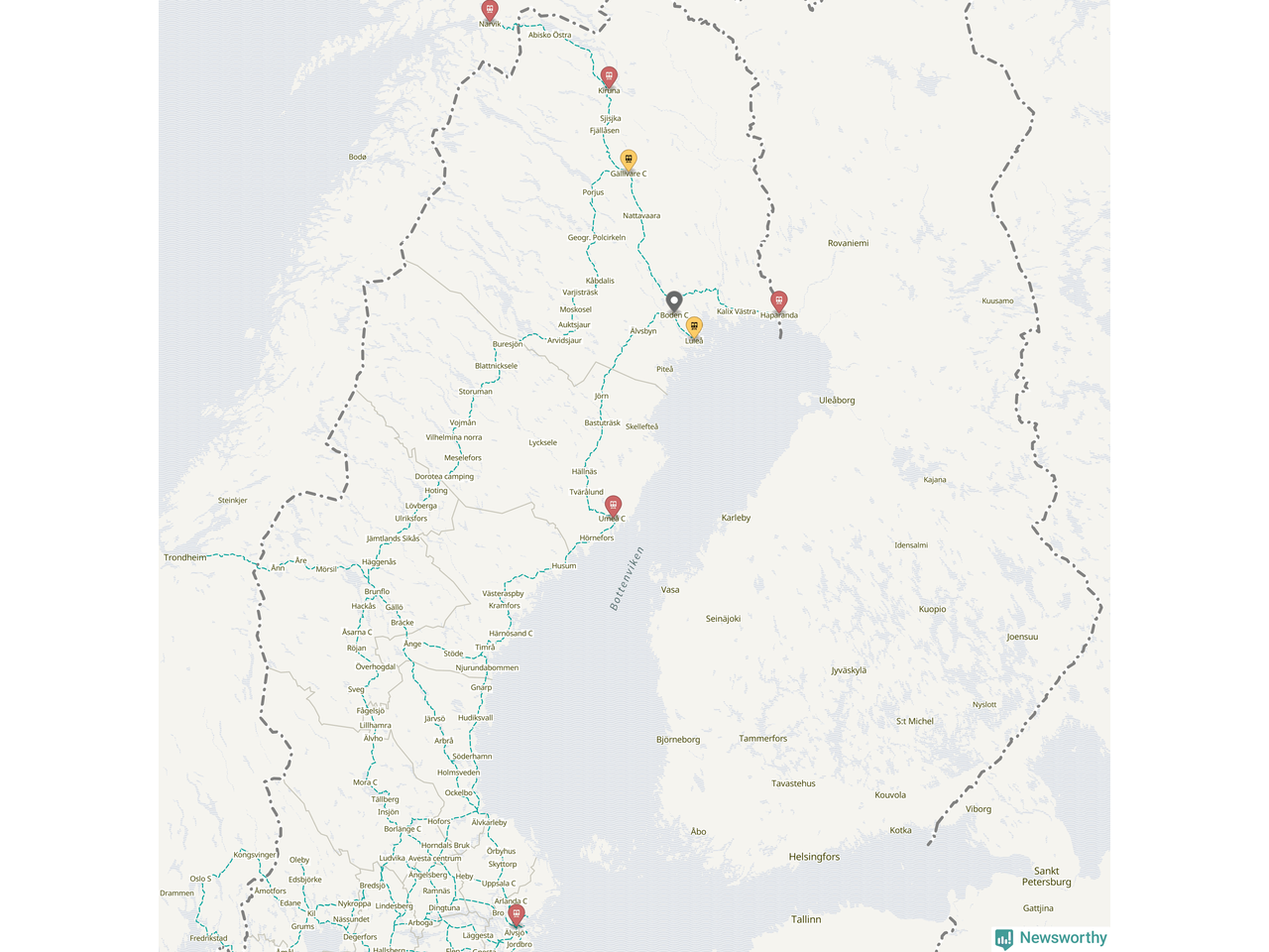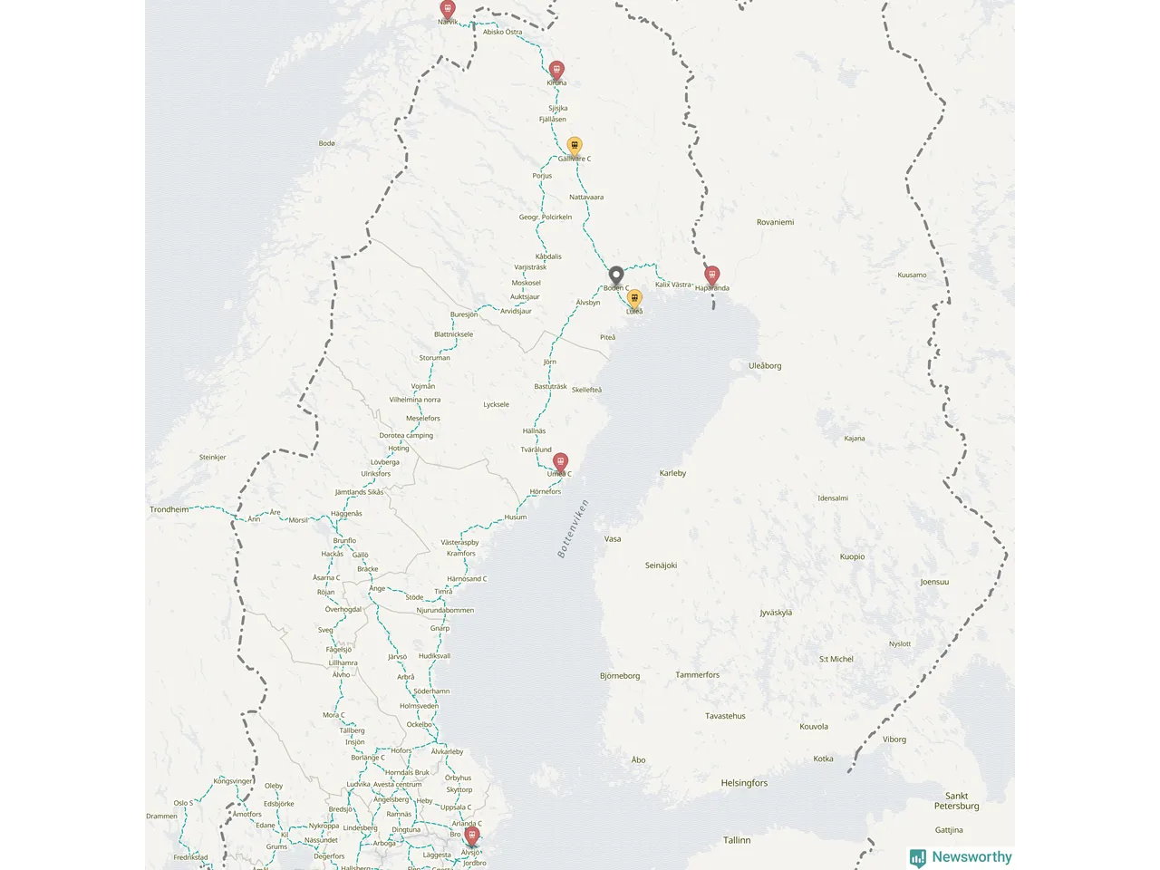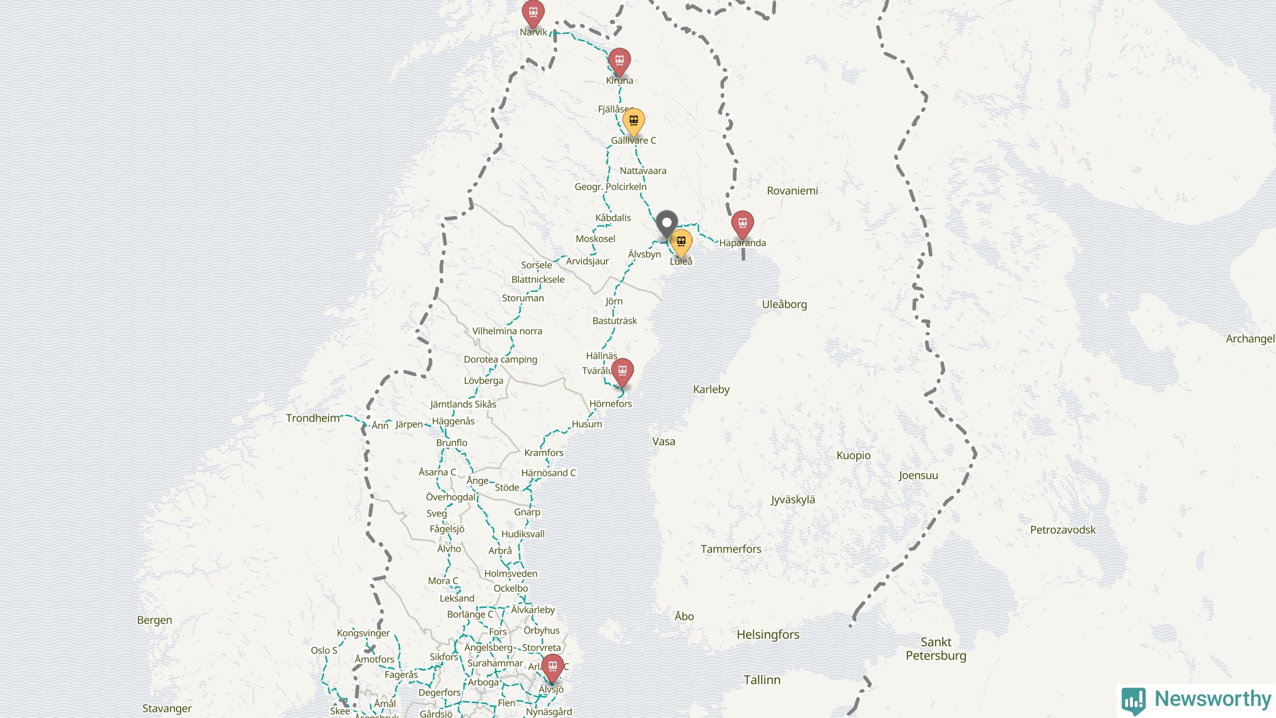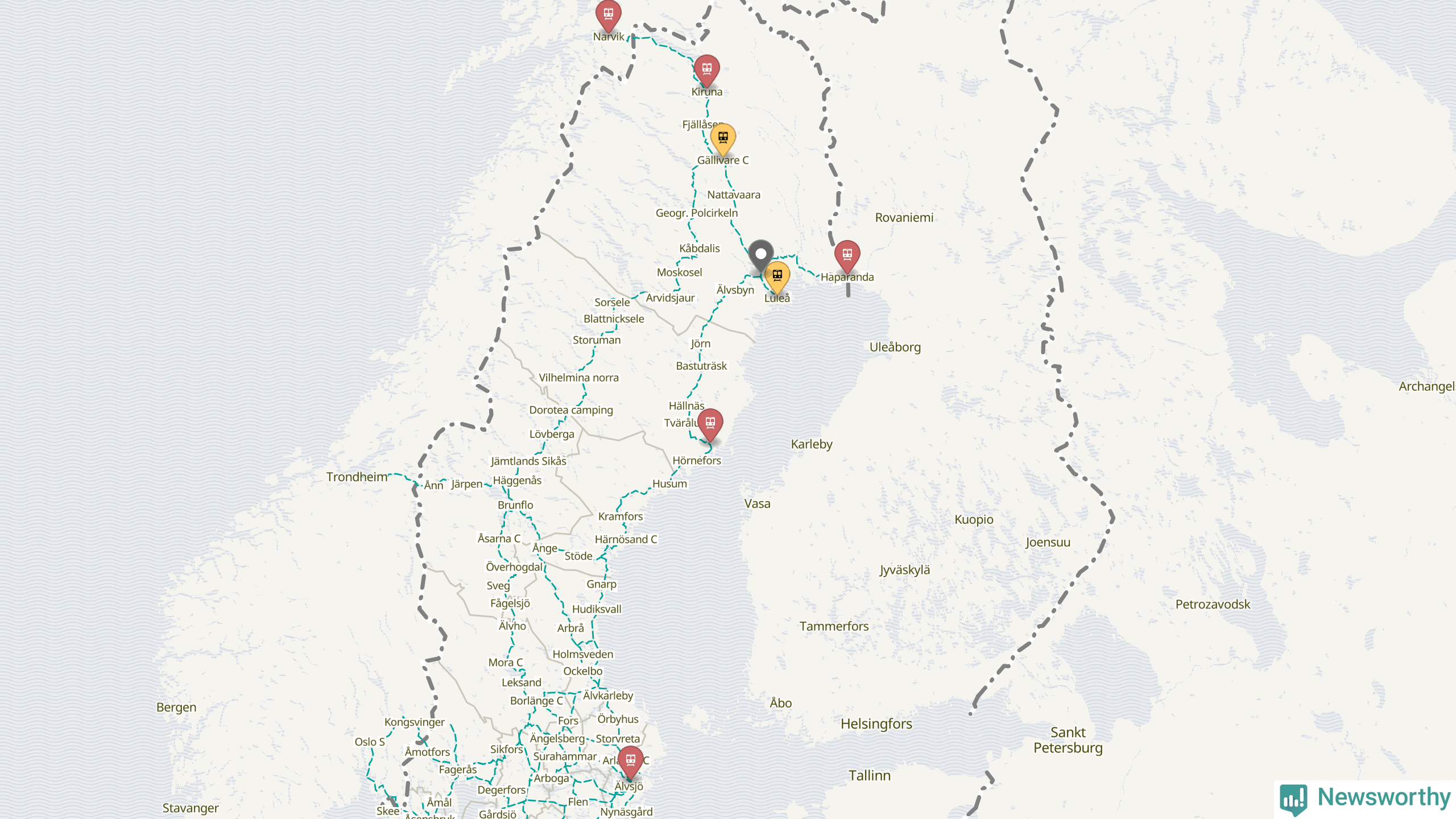 Kartdata från Mapbox, Newsworthy, OpenStreetMap och Trafikverket. Uppgifter om sträckor med passagerartrafik från jarnvag.net.