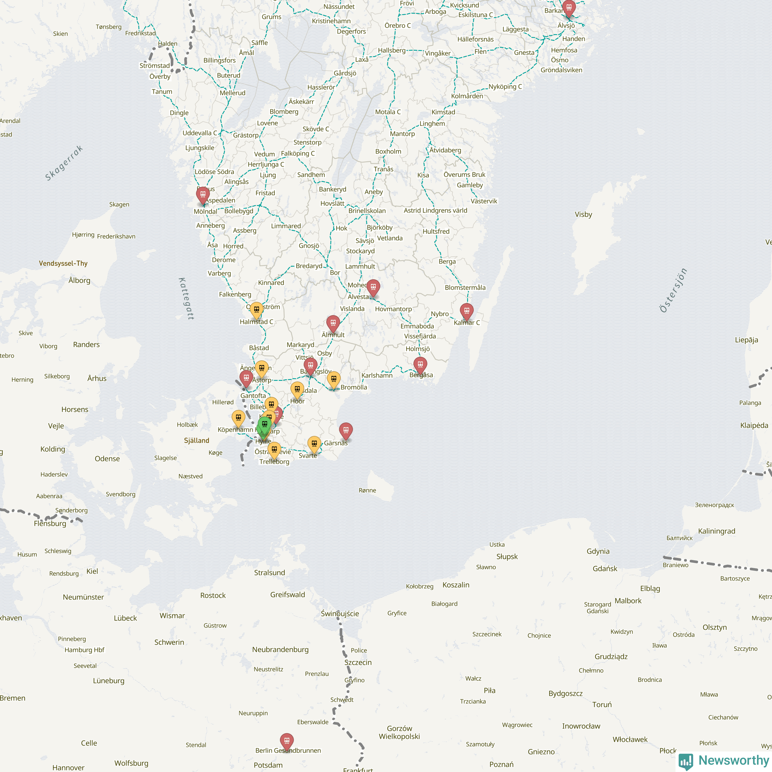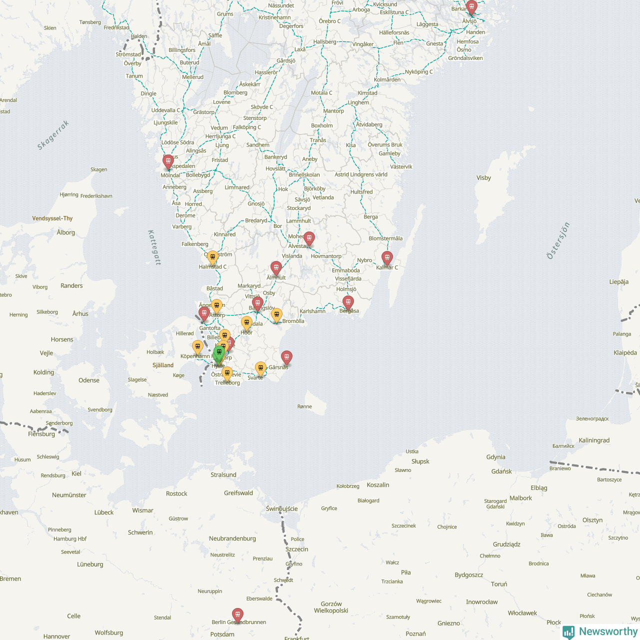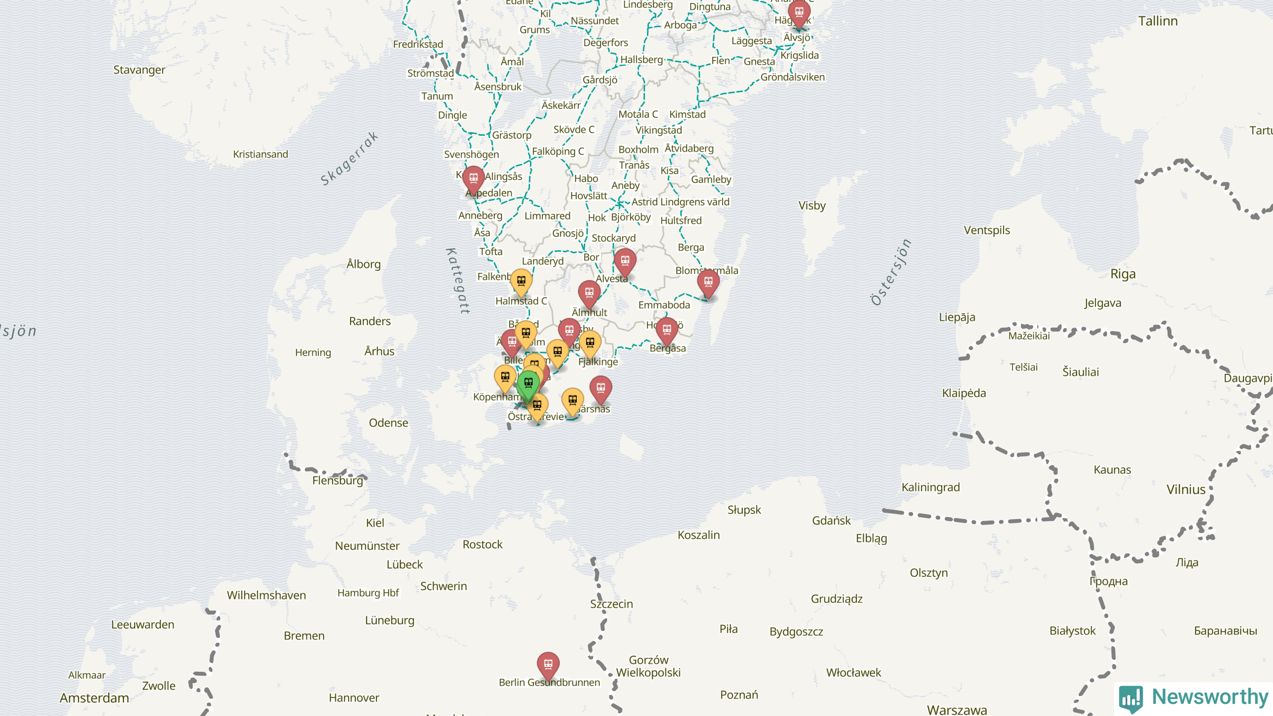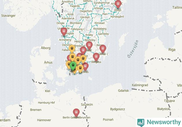 Kartdata från Mapbox, Newsworthy, OpenStreetMap och Trafikverket. Uppgifter om sträckor med passagerartrafik från jarnvag.net.