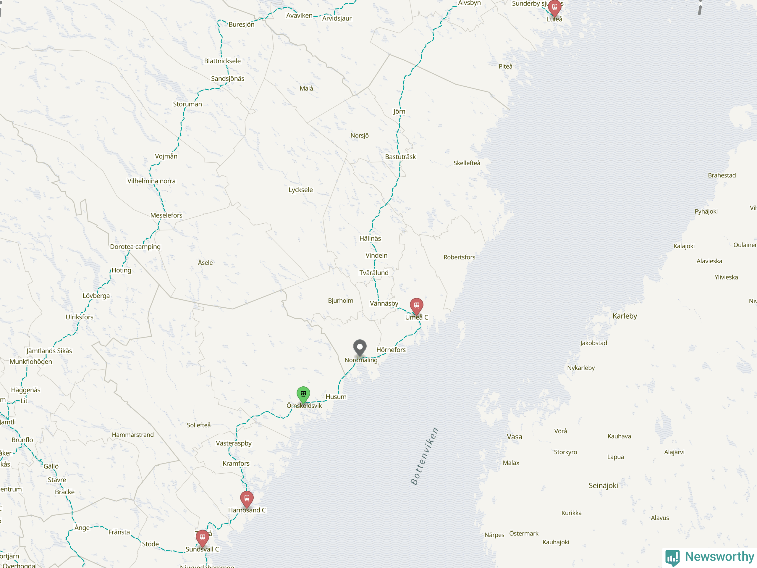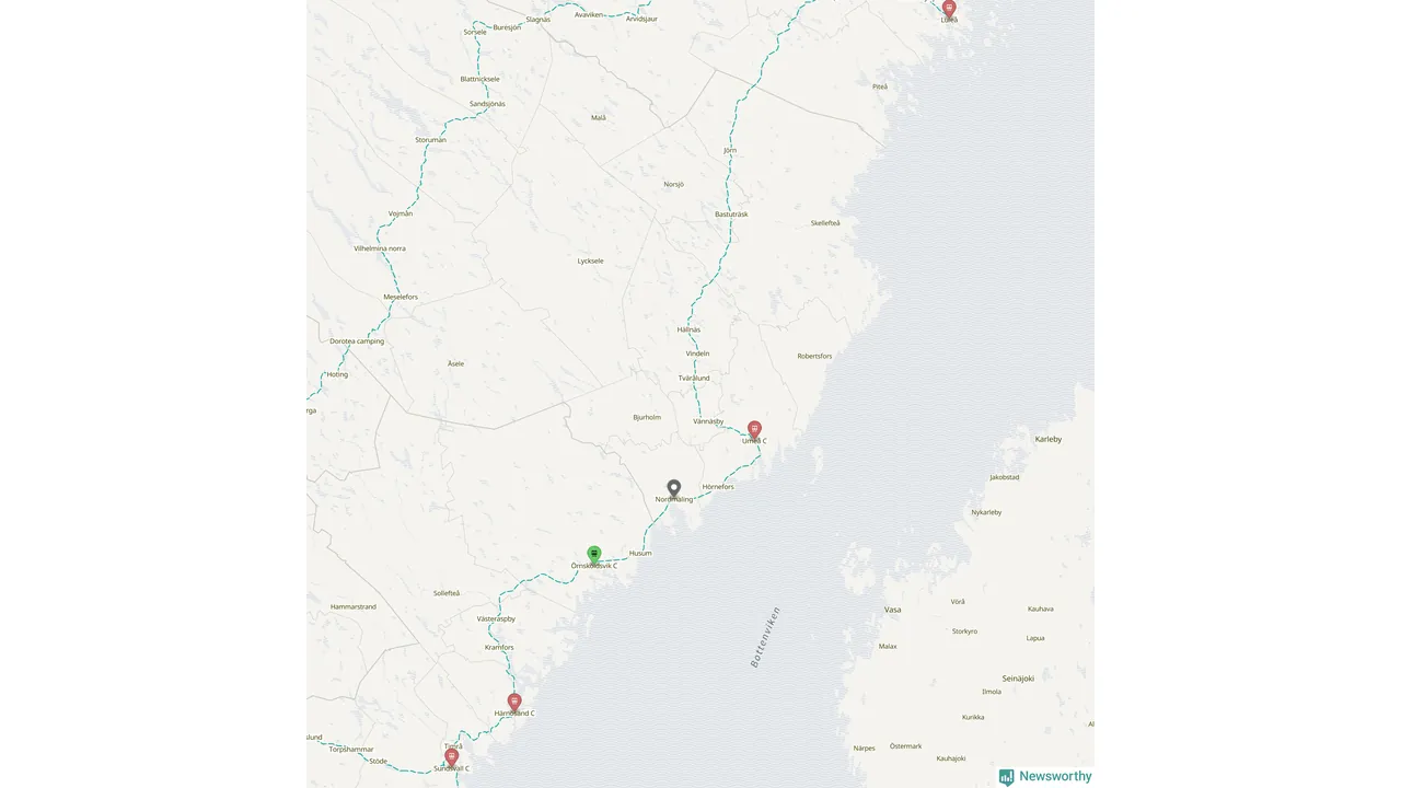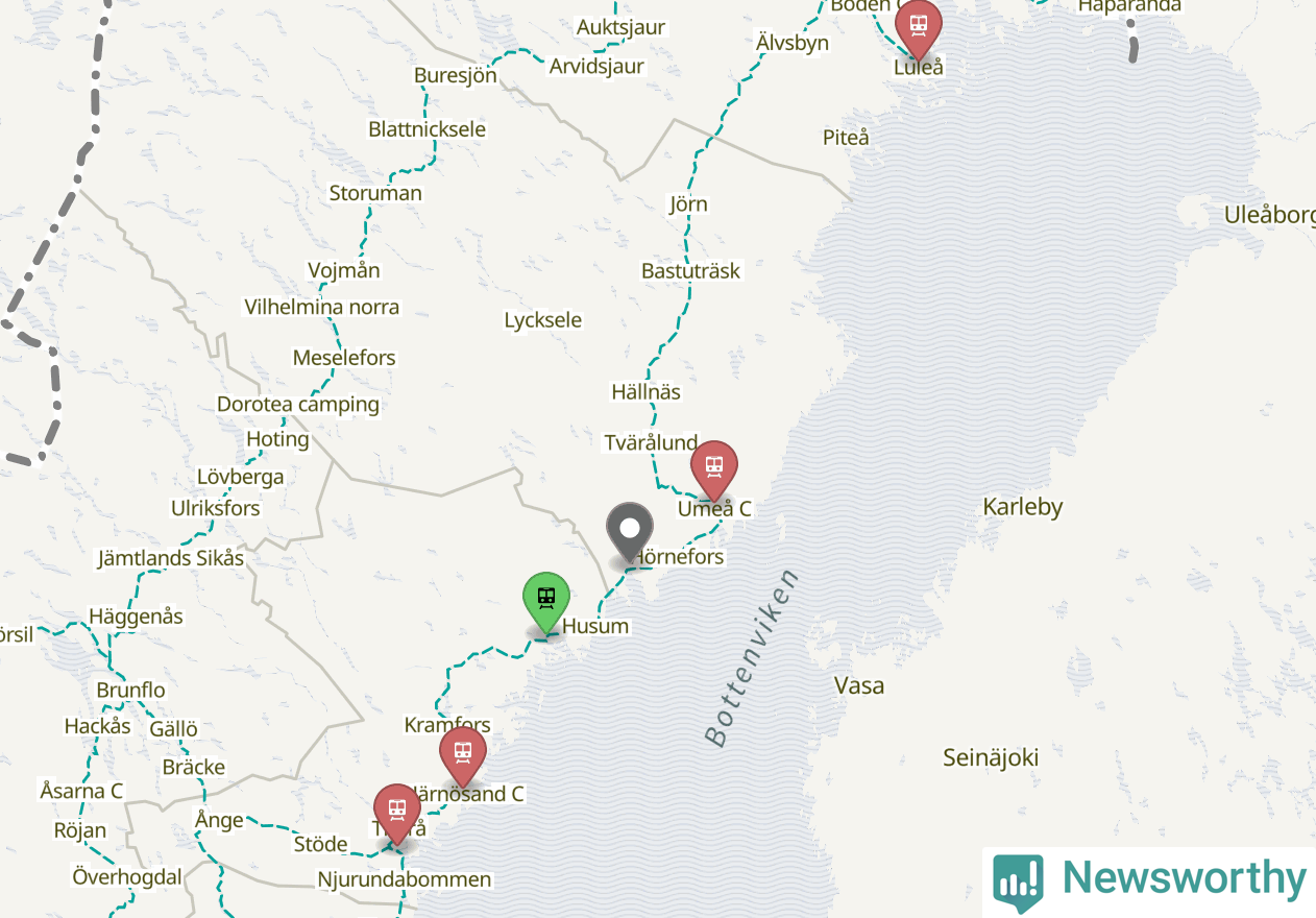 Kartdata från Mapbox, Newsworthy, OpenStreetMap och Trafikverket. Uppgifter om sträckor med passagerartrafik från jarnvag.net.