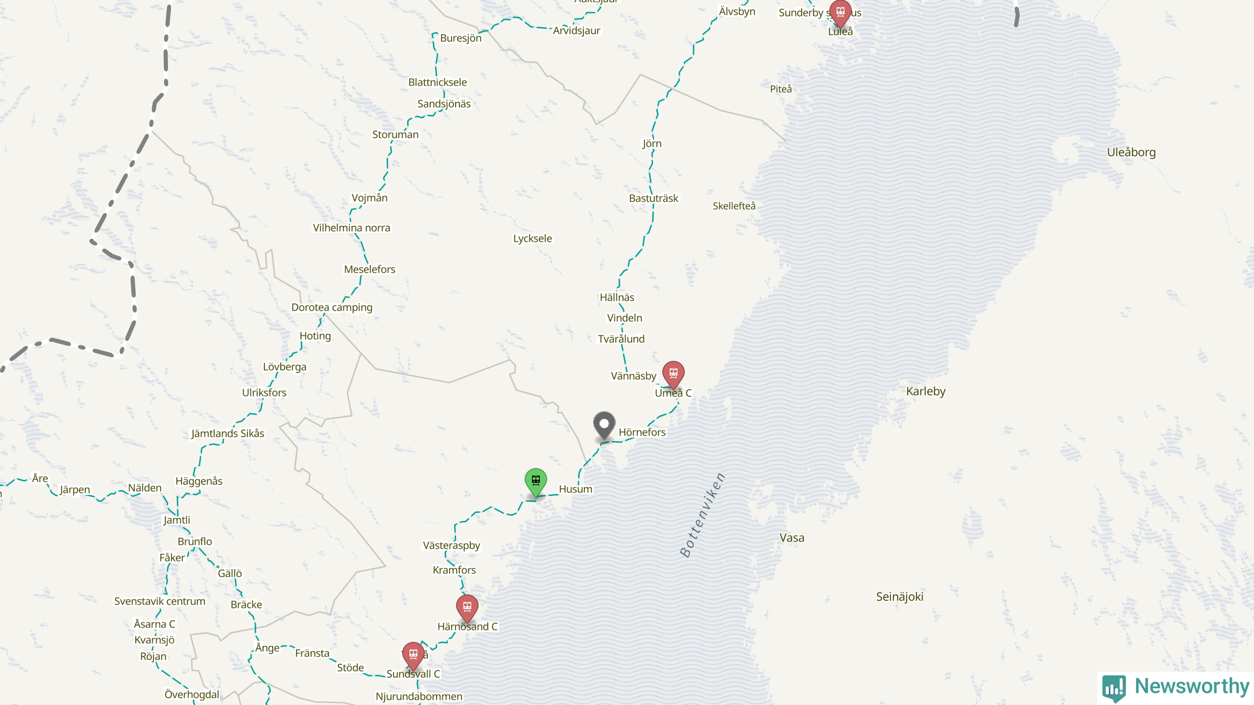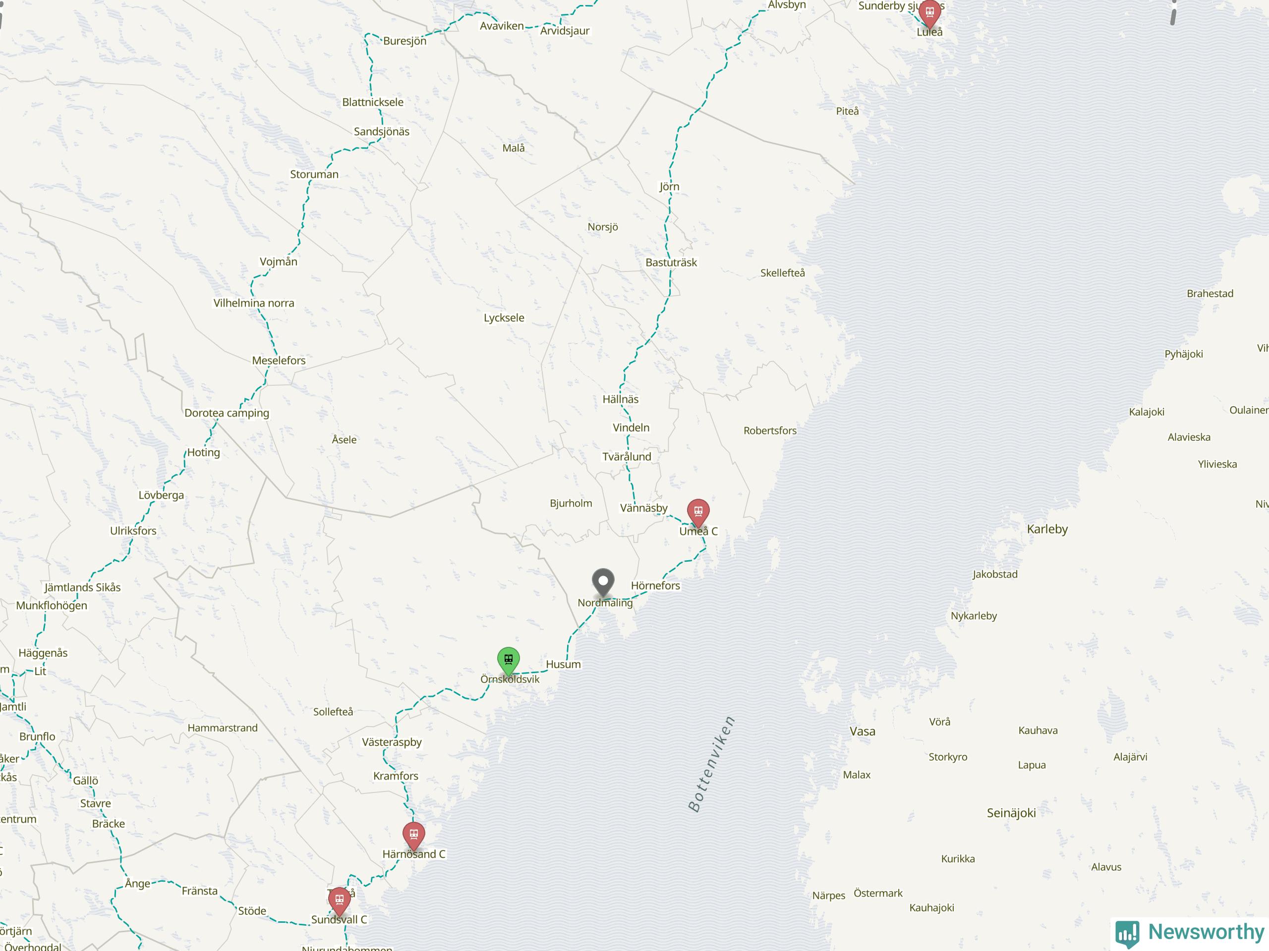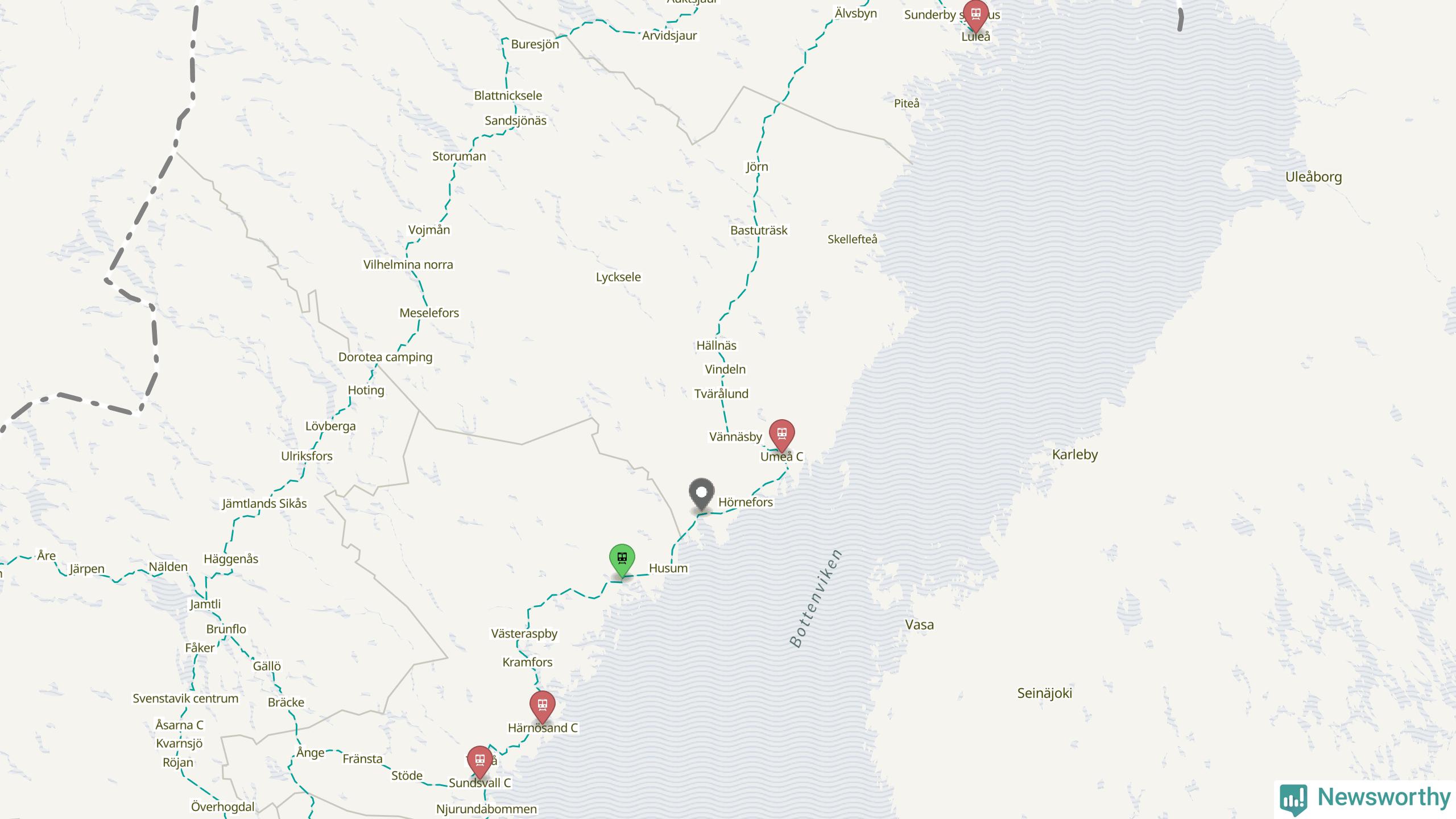 Kartdata från Mapbox, Newsworthy, OpenStreetMap och Trafikverket. Uppgifter om sträckor med passagerartrafik från jarnvag.net.