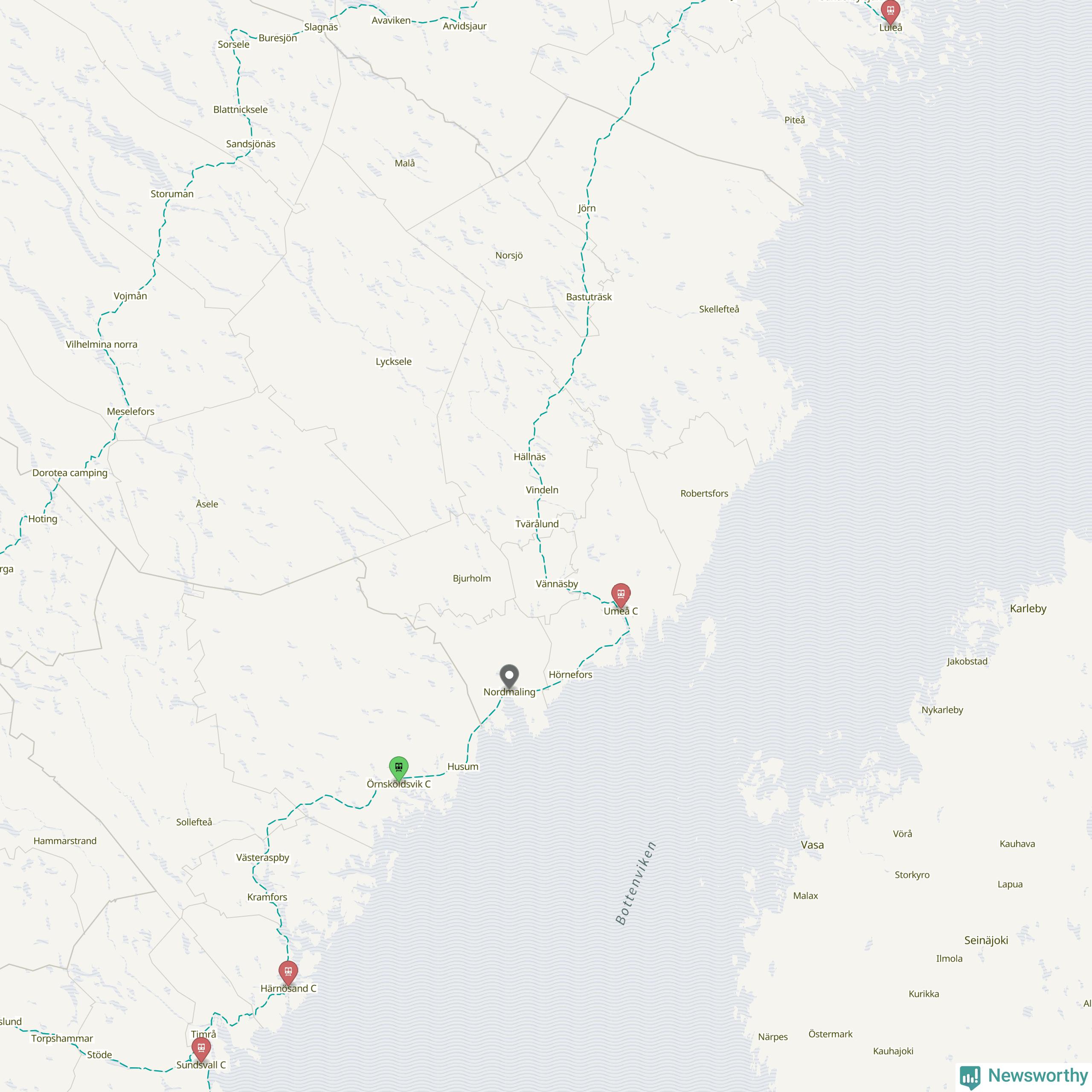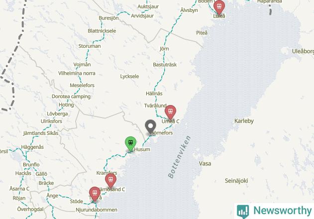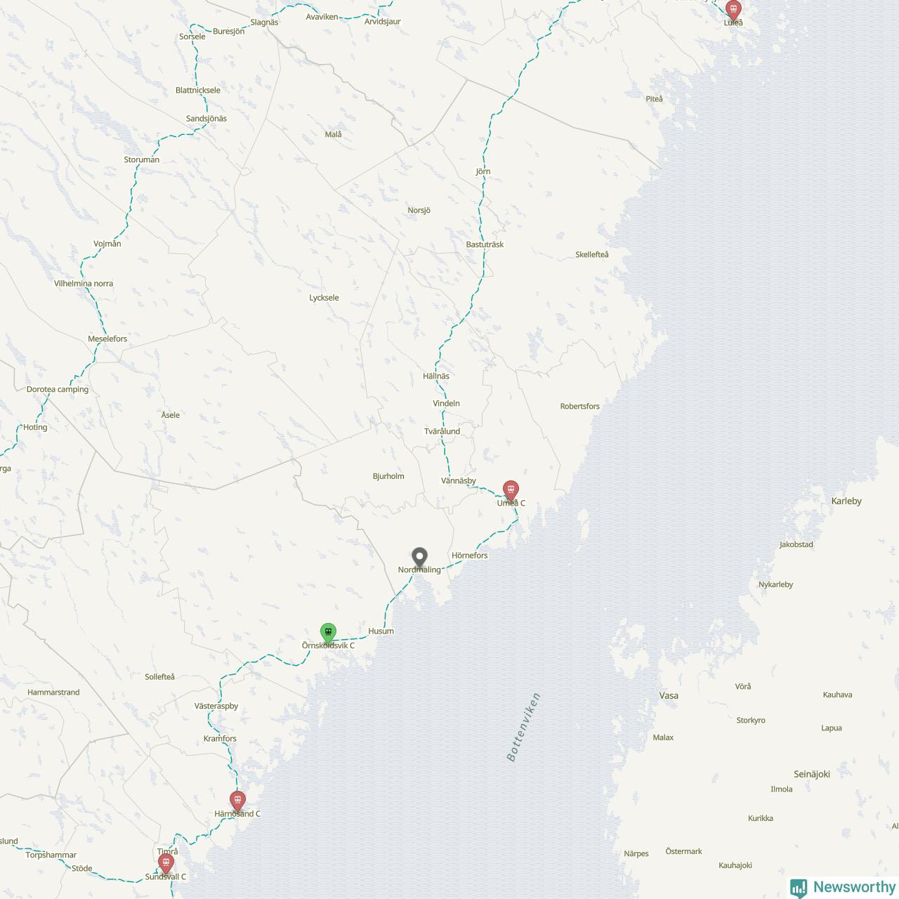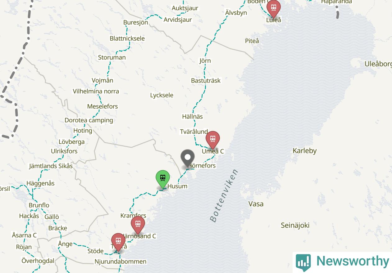 Som försenat räknas ett tåg när det varit minst fem minuter sent vid ankomst till stationerna i Nordmalings kommun.