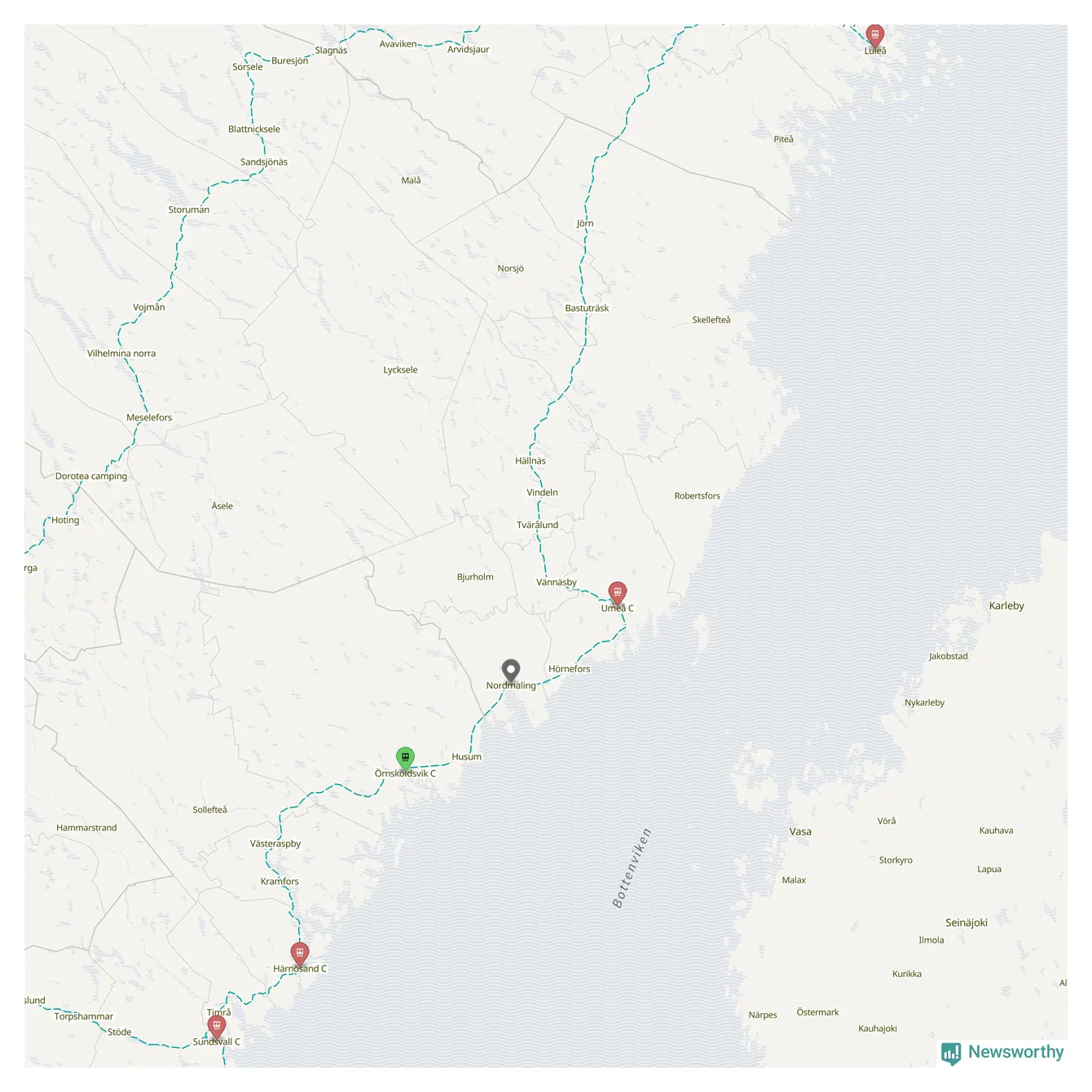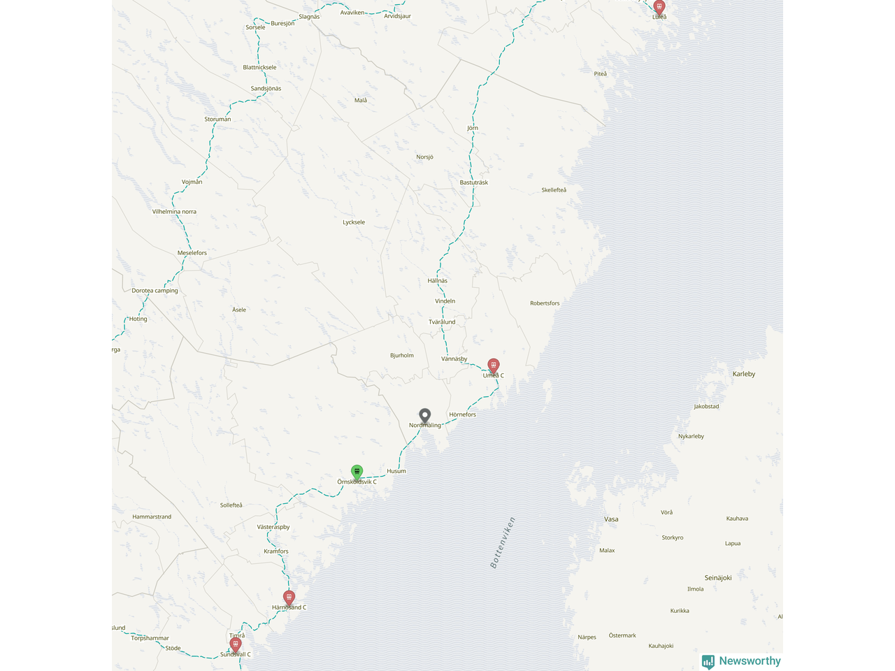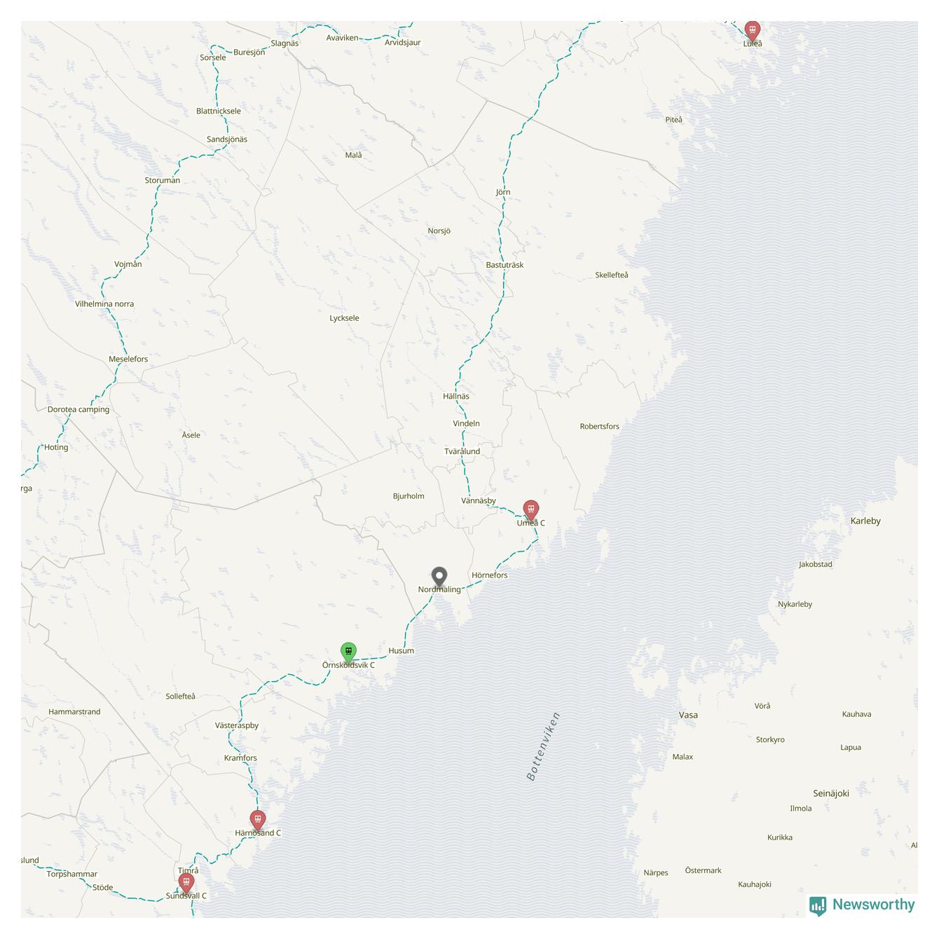 Som försenat räknas ett tåg när det varit minst fem minuter sent vid ankomst till stationerna i Nordmalings kommun.