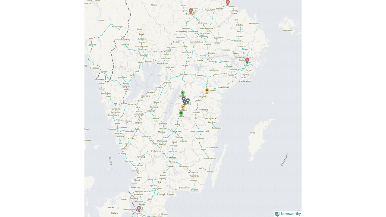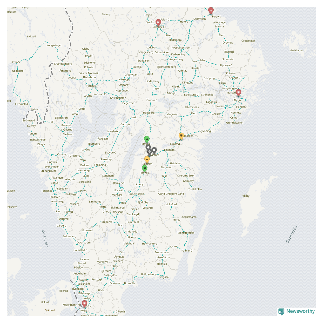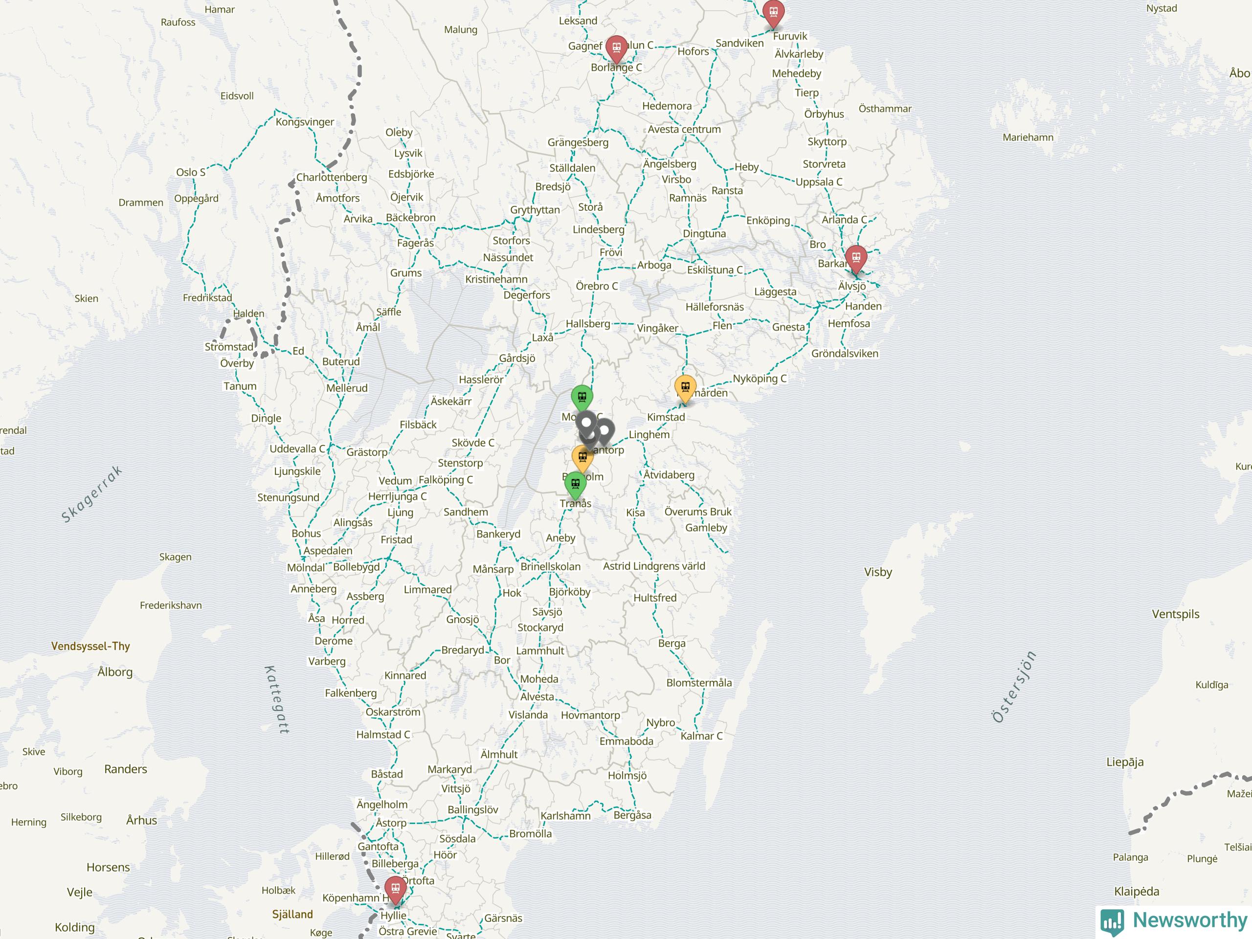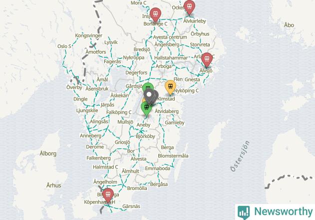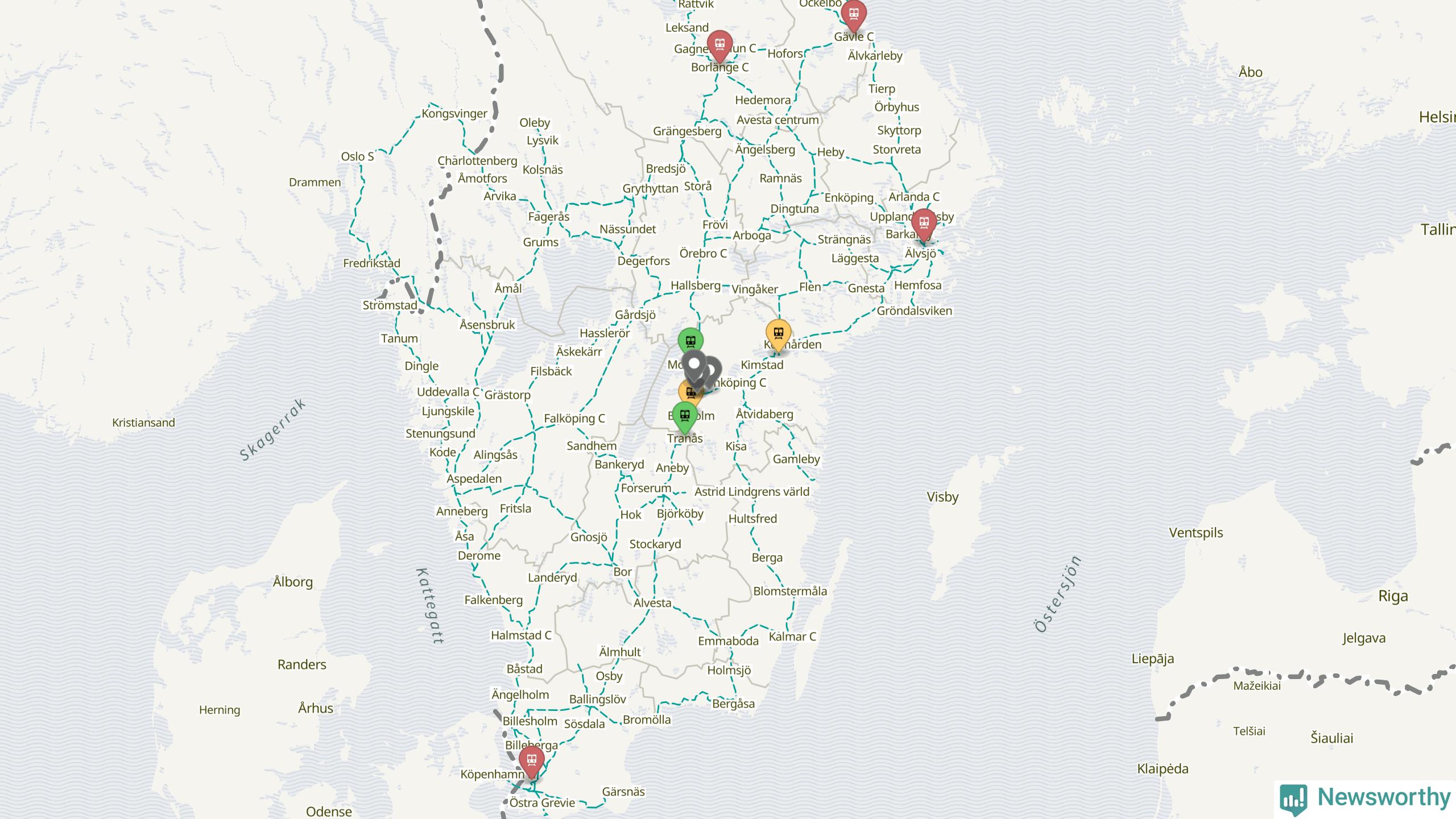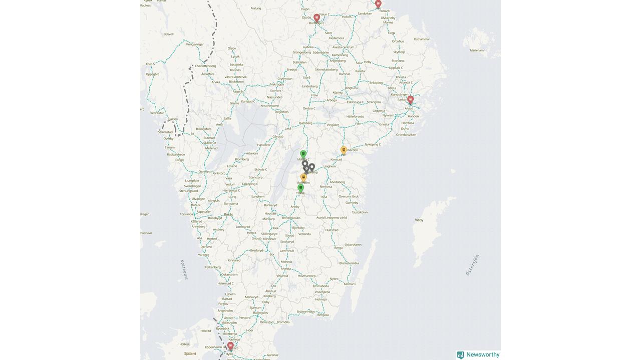 Kartdata från Mapbox, Newsworthy, OpenStreetMap och Trafikverket. Uppgifter om sträckor med passagerartrafik från jarnvag.net.