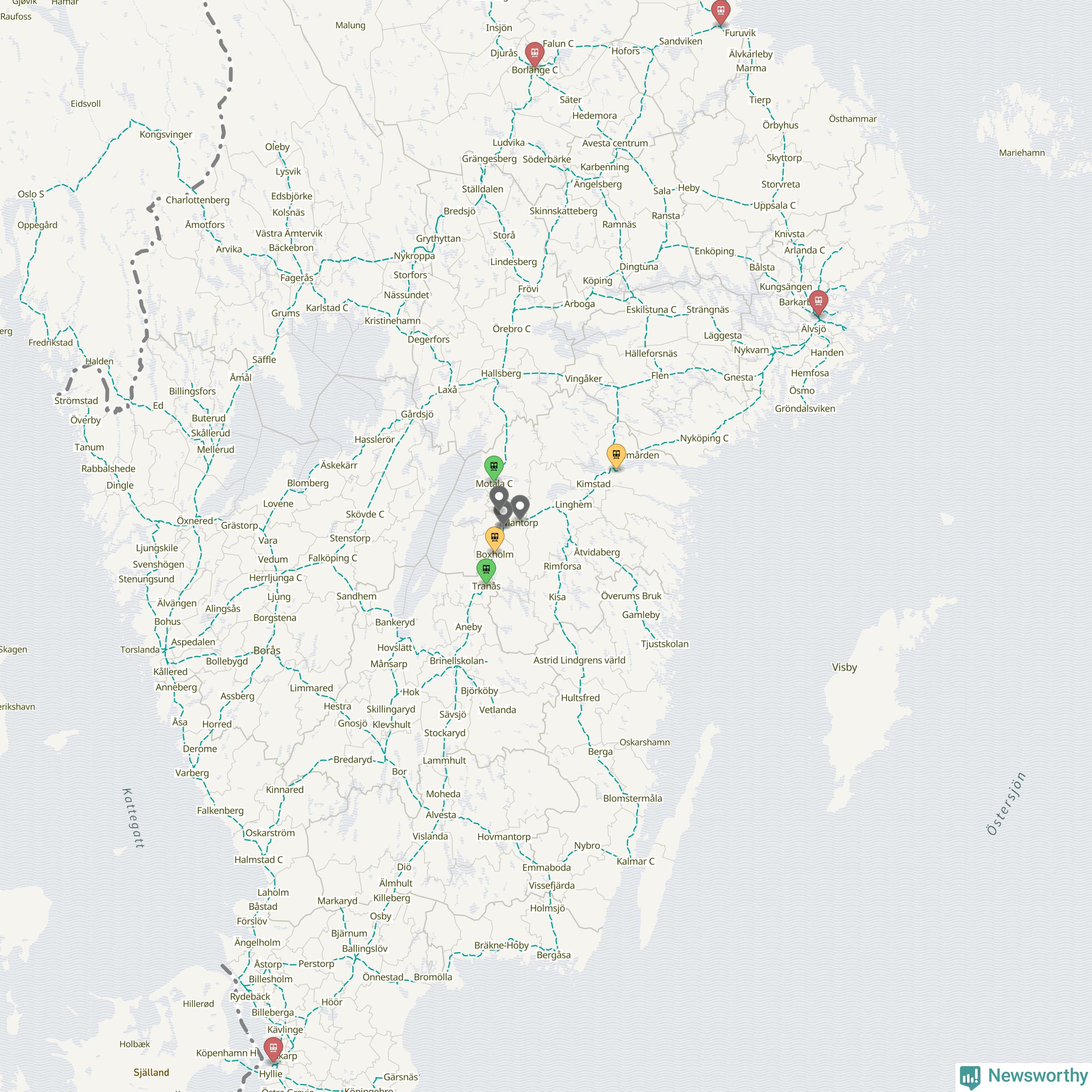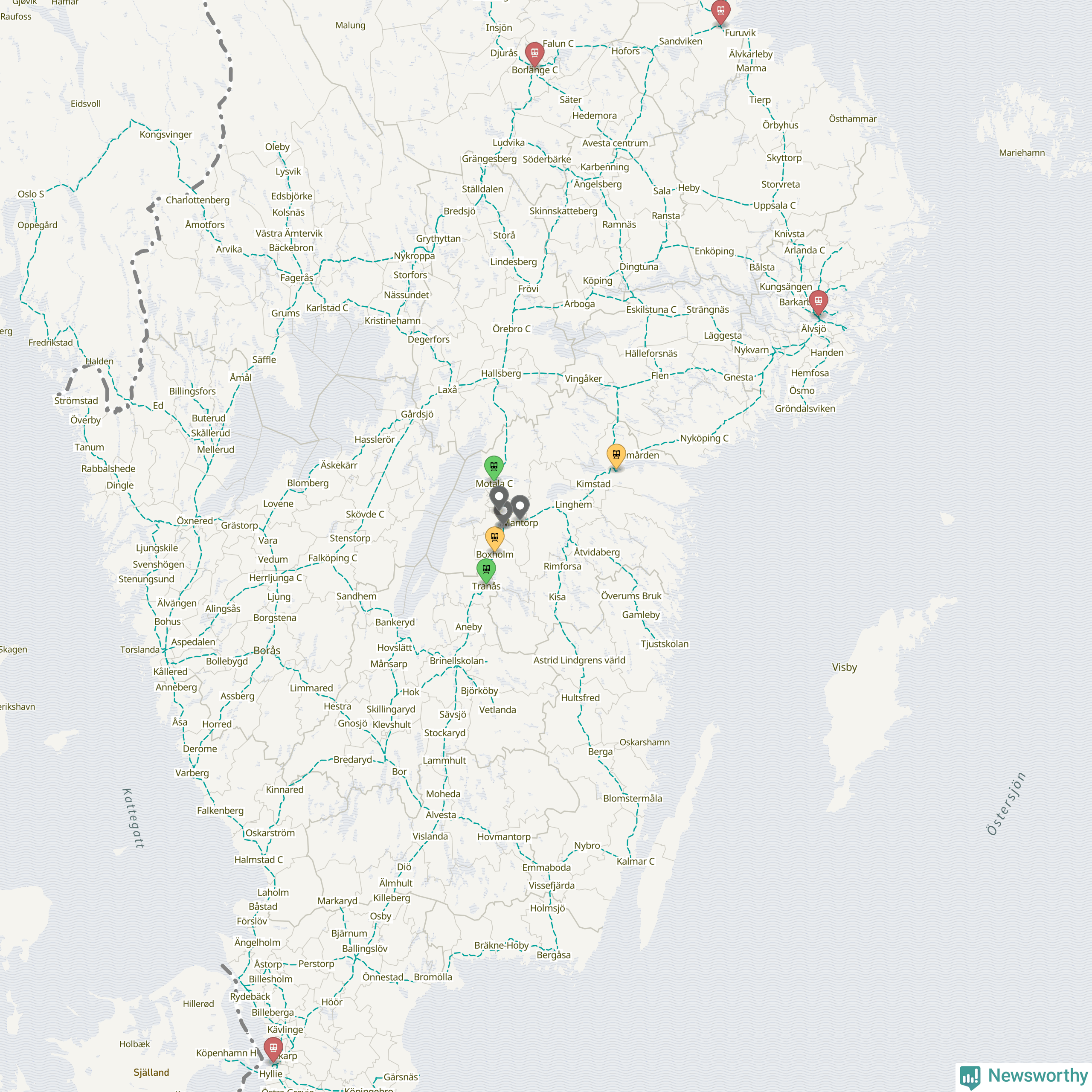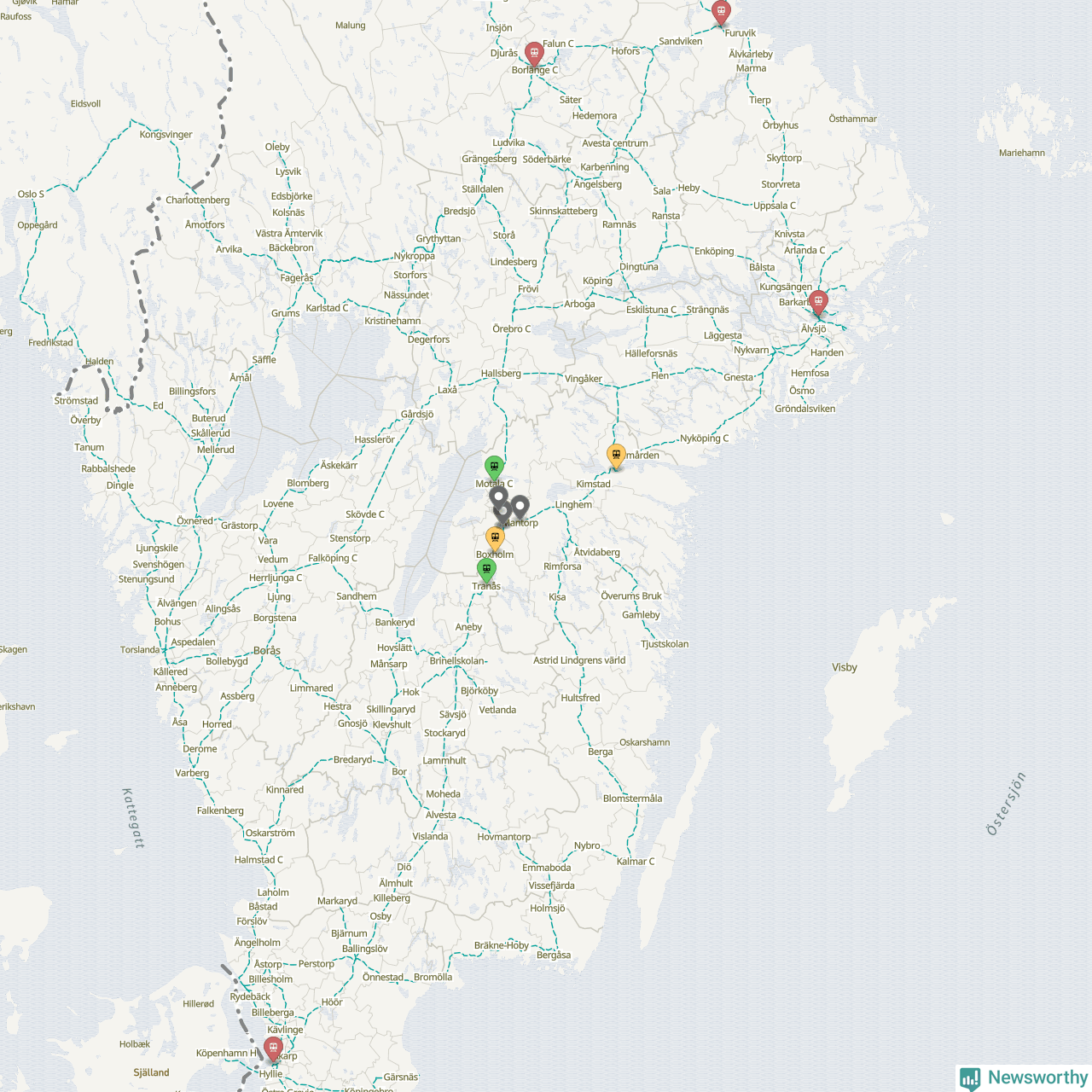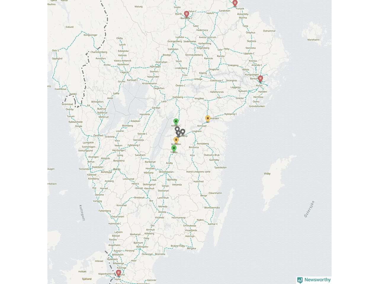 Kartdata från Mapbox, Newsworthy, OpenStreetMap och Trafikverket. Uppgifter om sträckor med passagerartrafik från jarnvag.net.