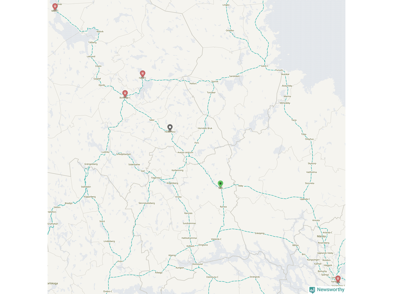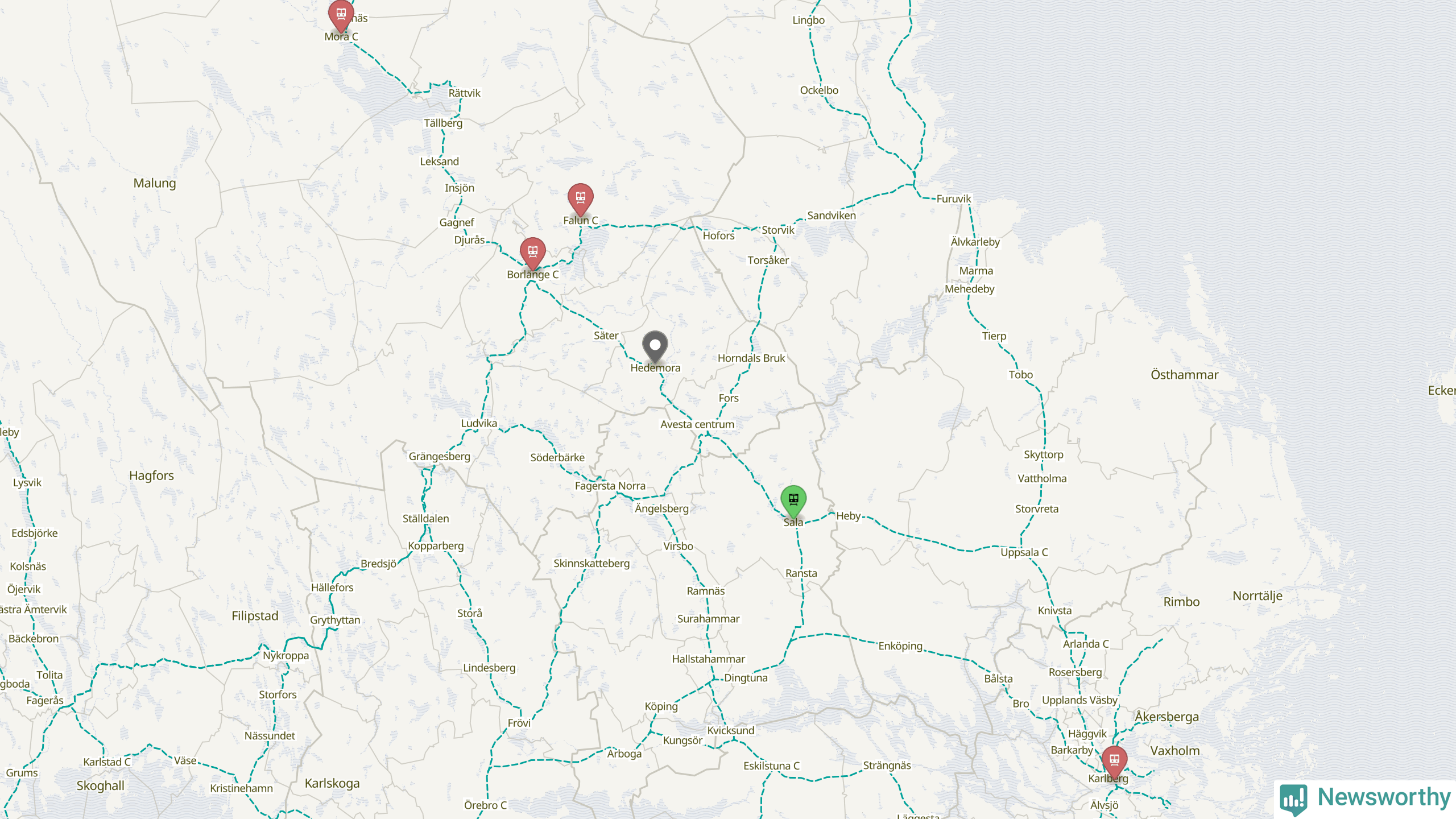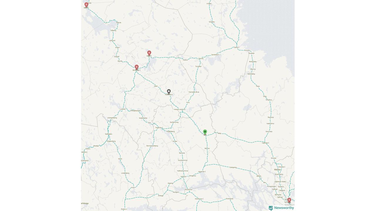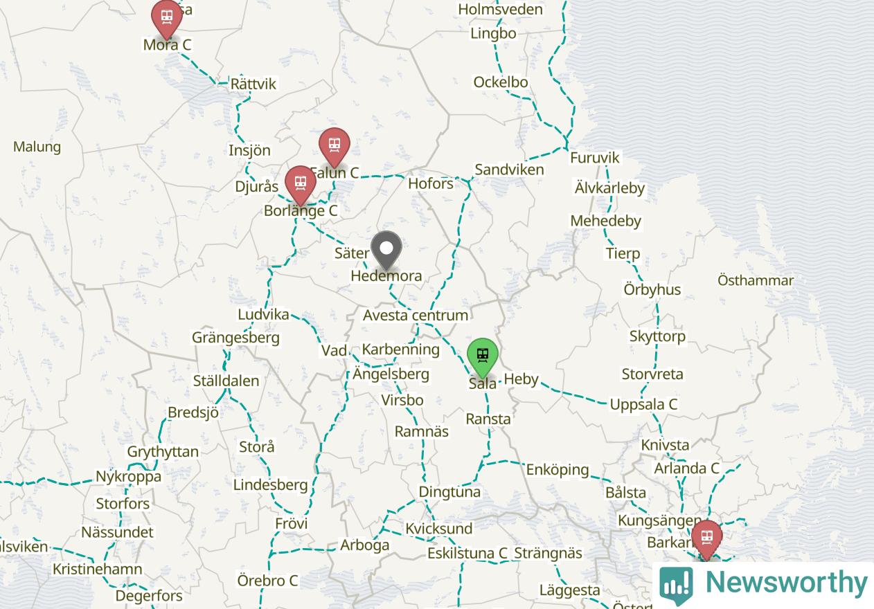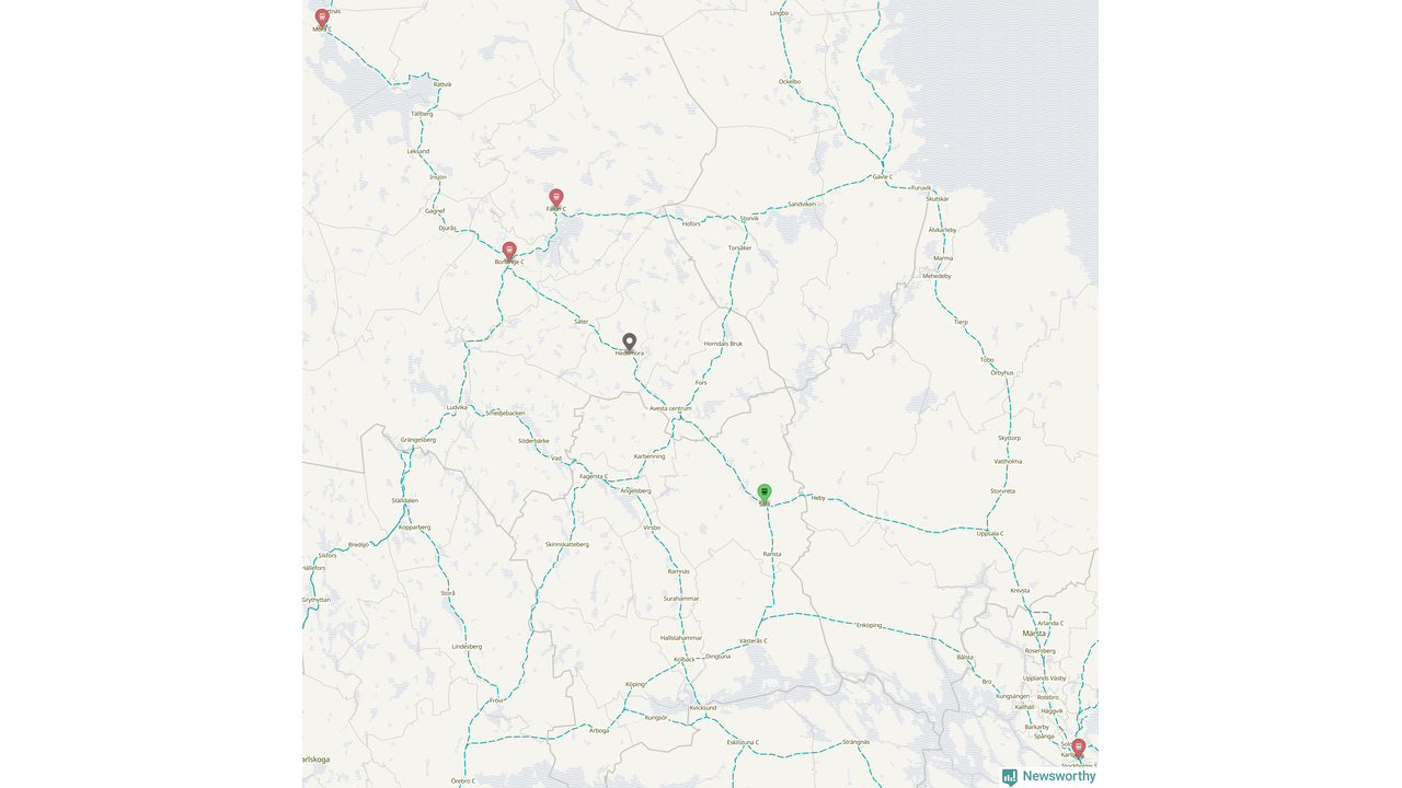 Kartdata från Mapbox, Newsworthy, OpenStreetMap och Trafikverket. Uppgifter om sträckor med passagerartrafik från jarnvag.net.