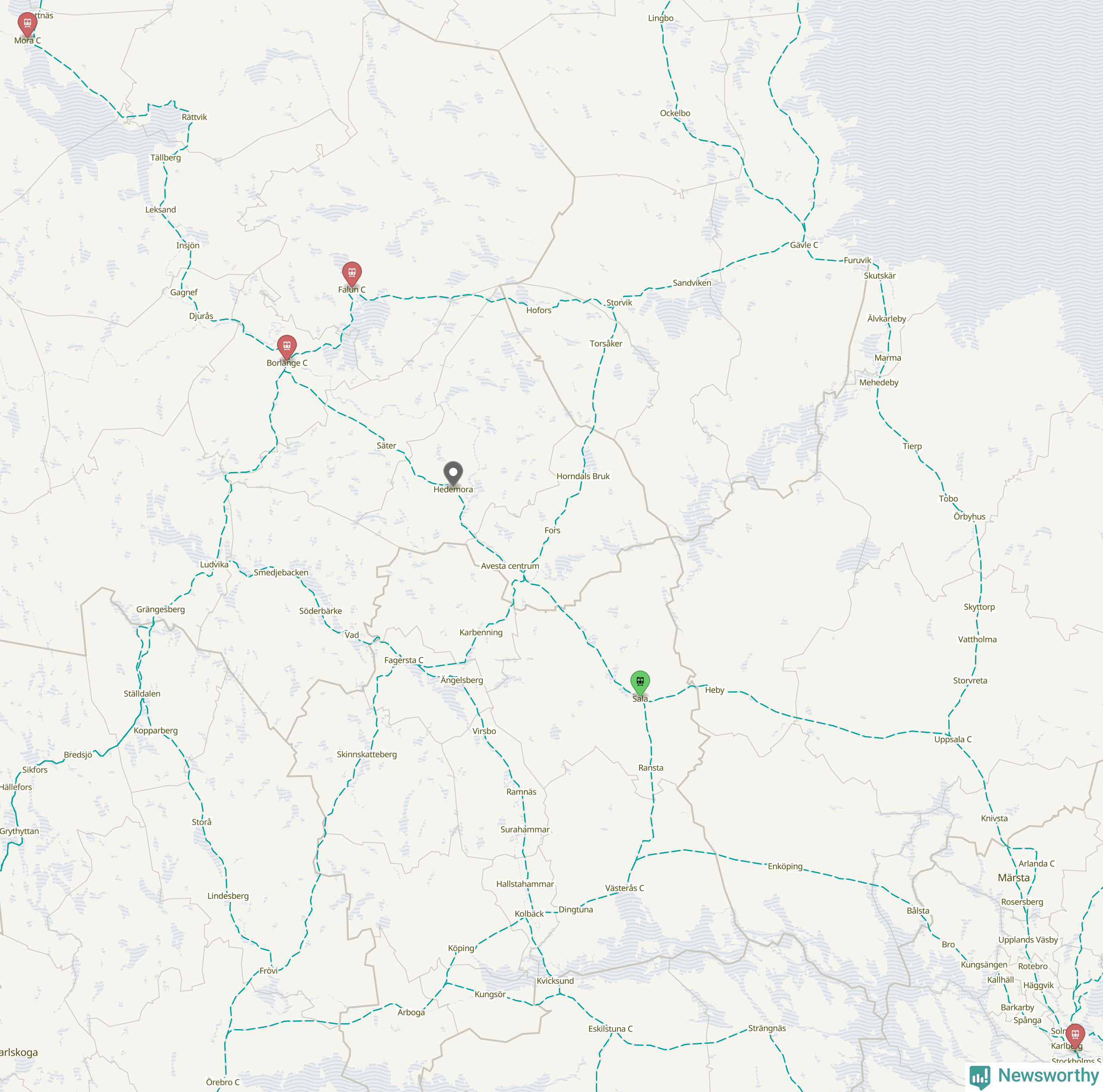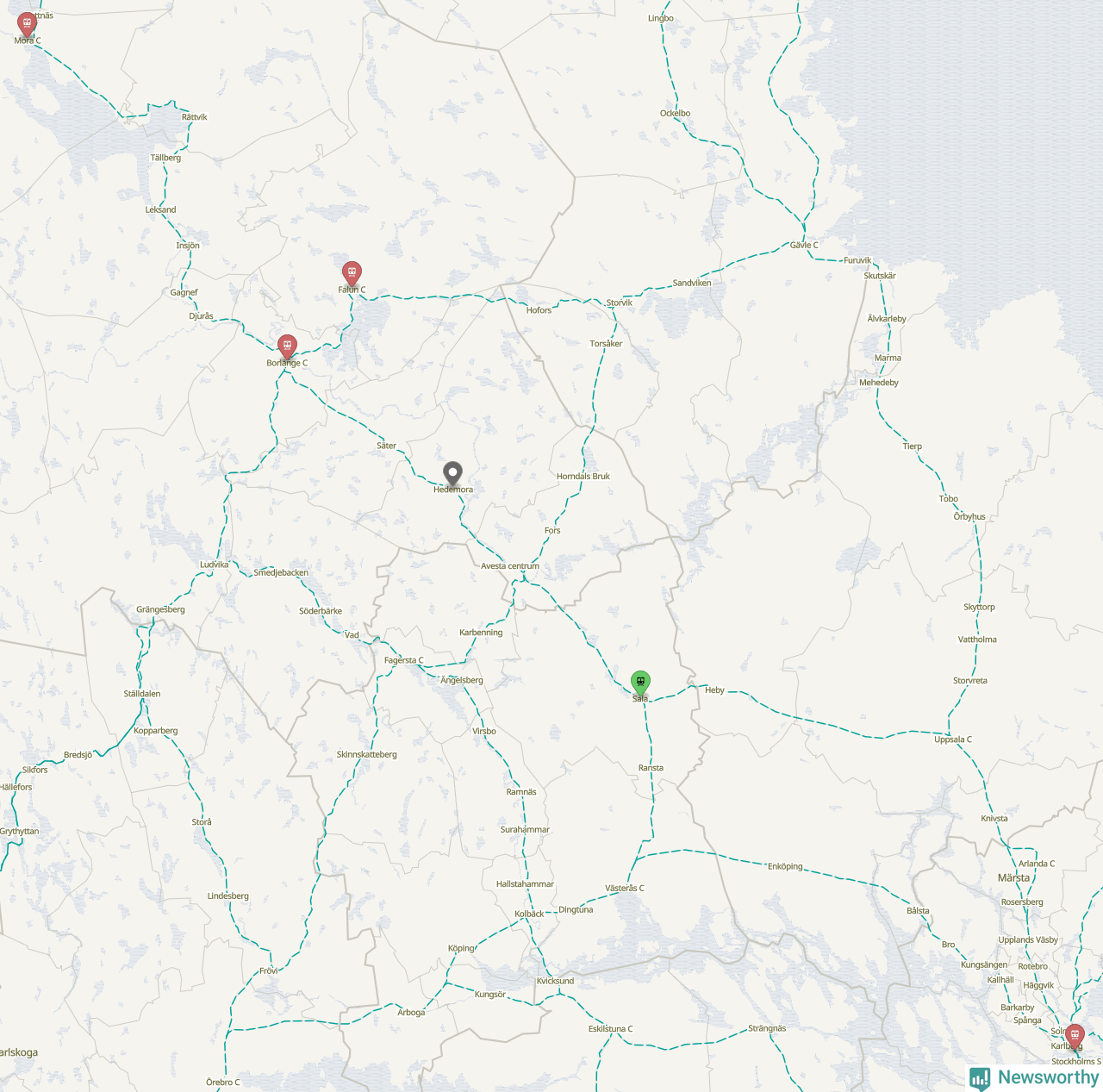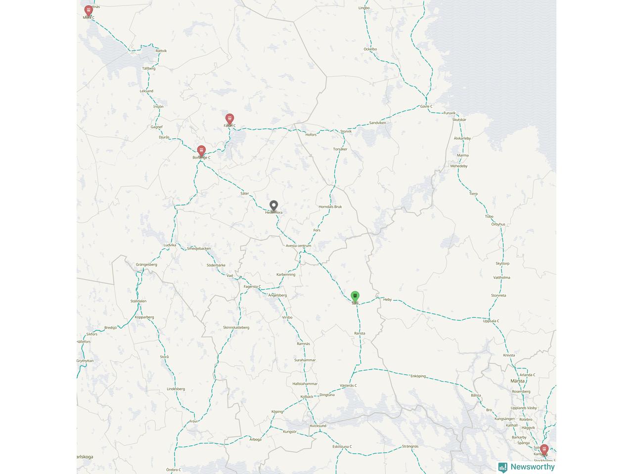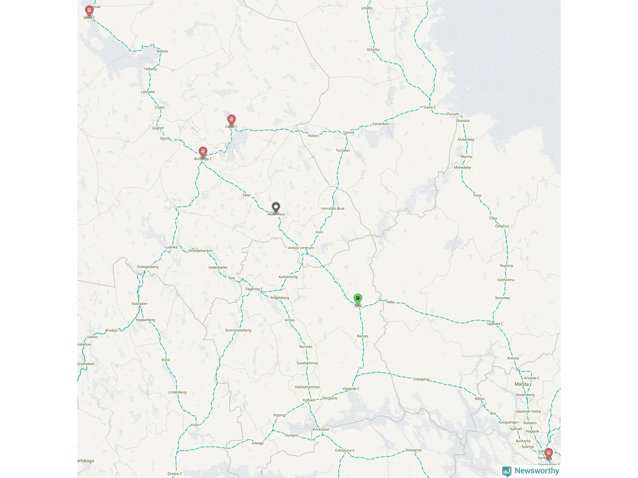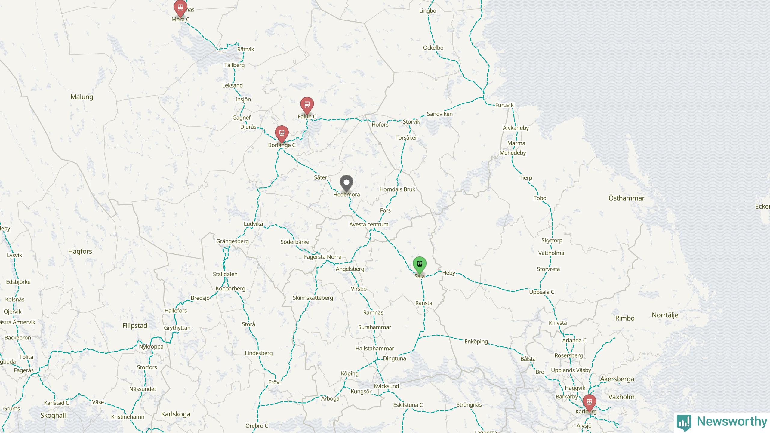 Kartdata från Mapbox, Newsworthy, OpenStreetMap och Trafikverket. Uppgifter om sträckor med passagerartrafik från jarnvag.net.