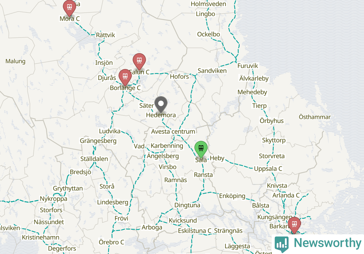 Som försenat räknas ett tåg när det varit minst fem minuter sent vid ankomst till stationerna i Hedemora kommun.