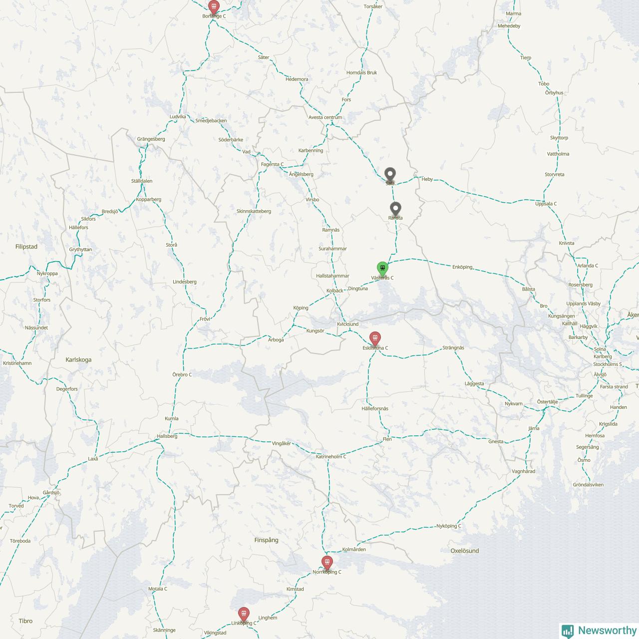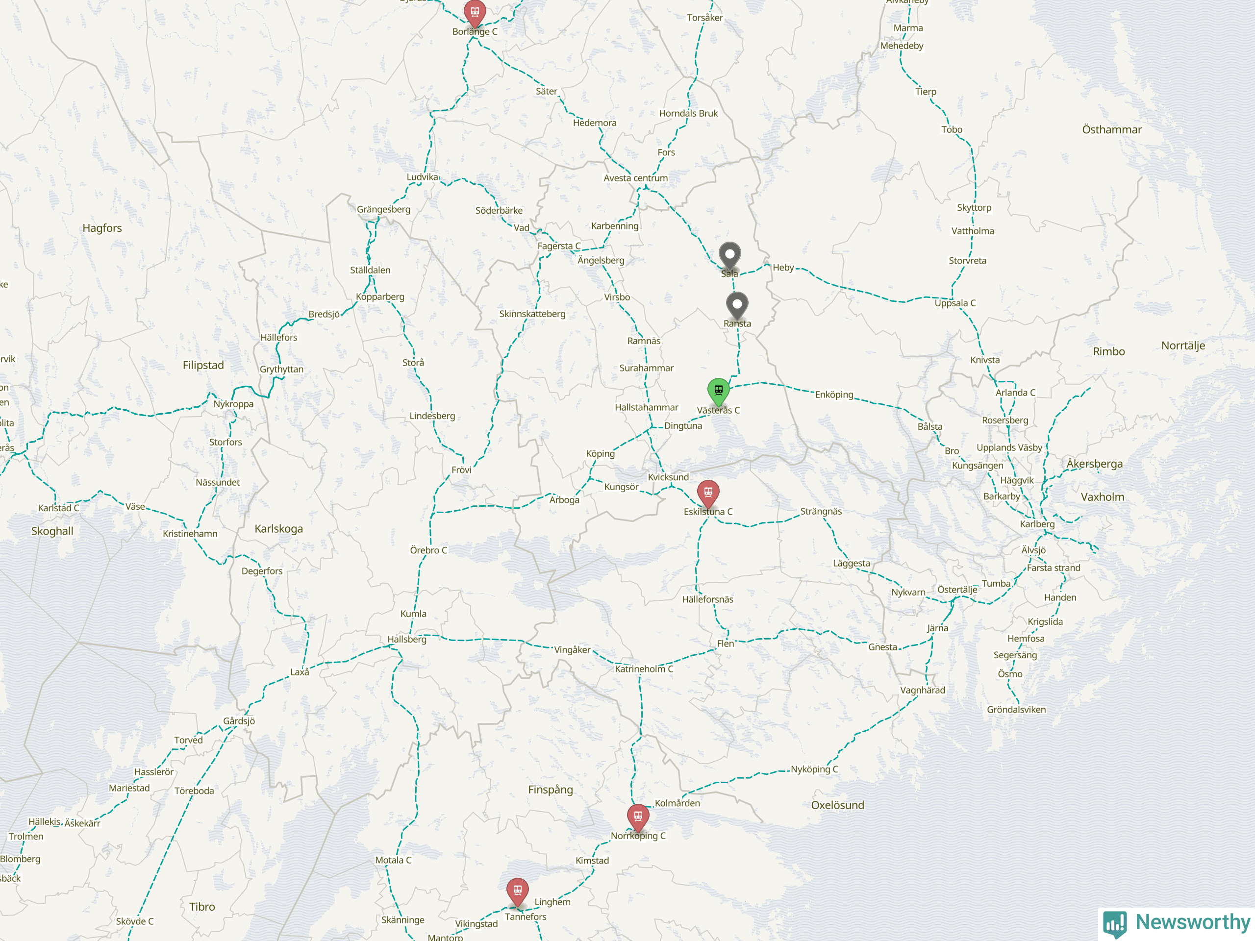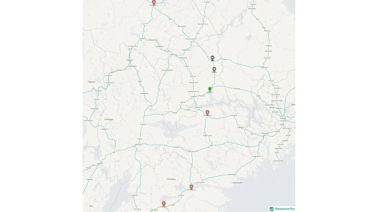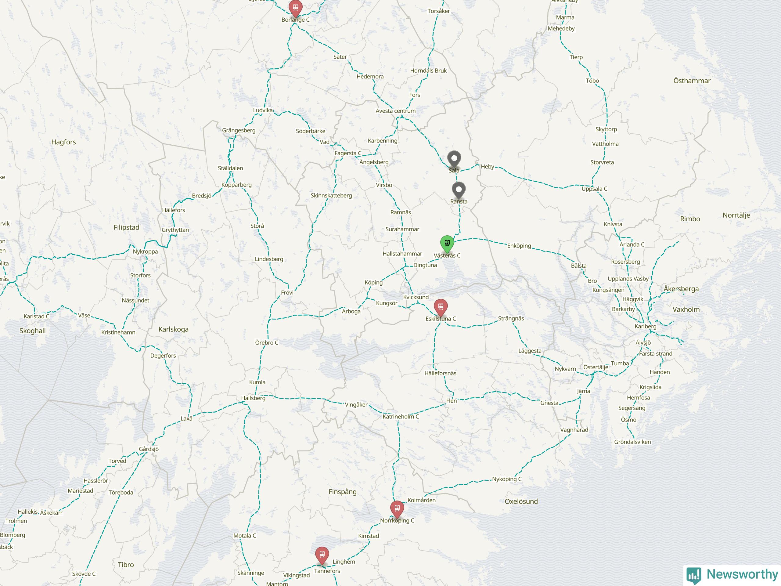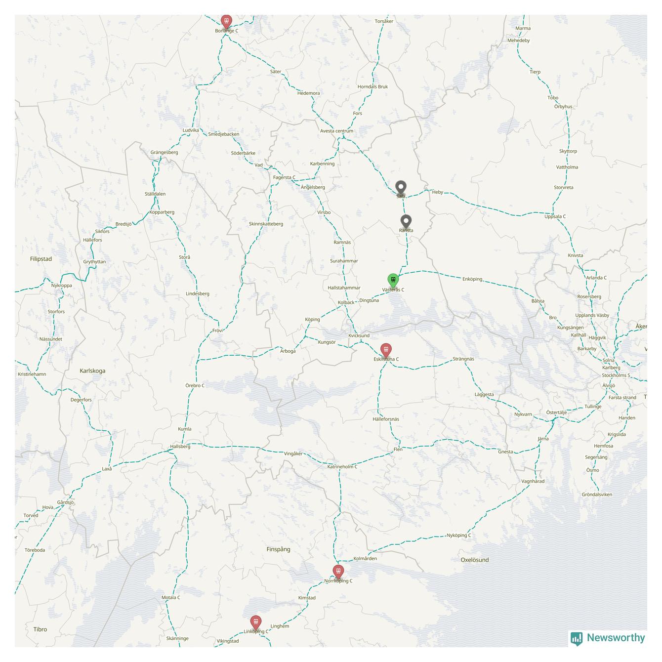Kartdata från Mapbox, Newsworthy, OpenStreetMap och Trafikverket. Uppgifter om sträckor med passagerartrafik från jarnvag.net.