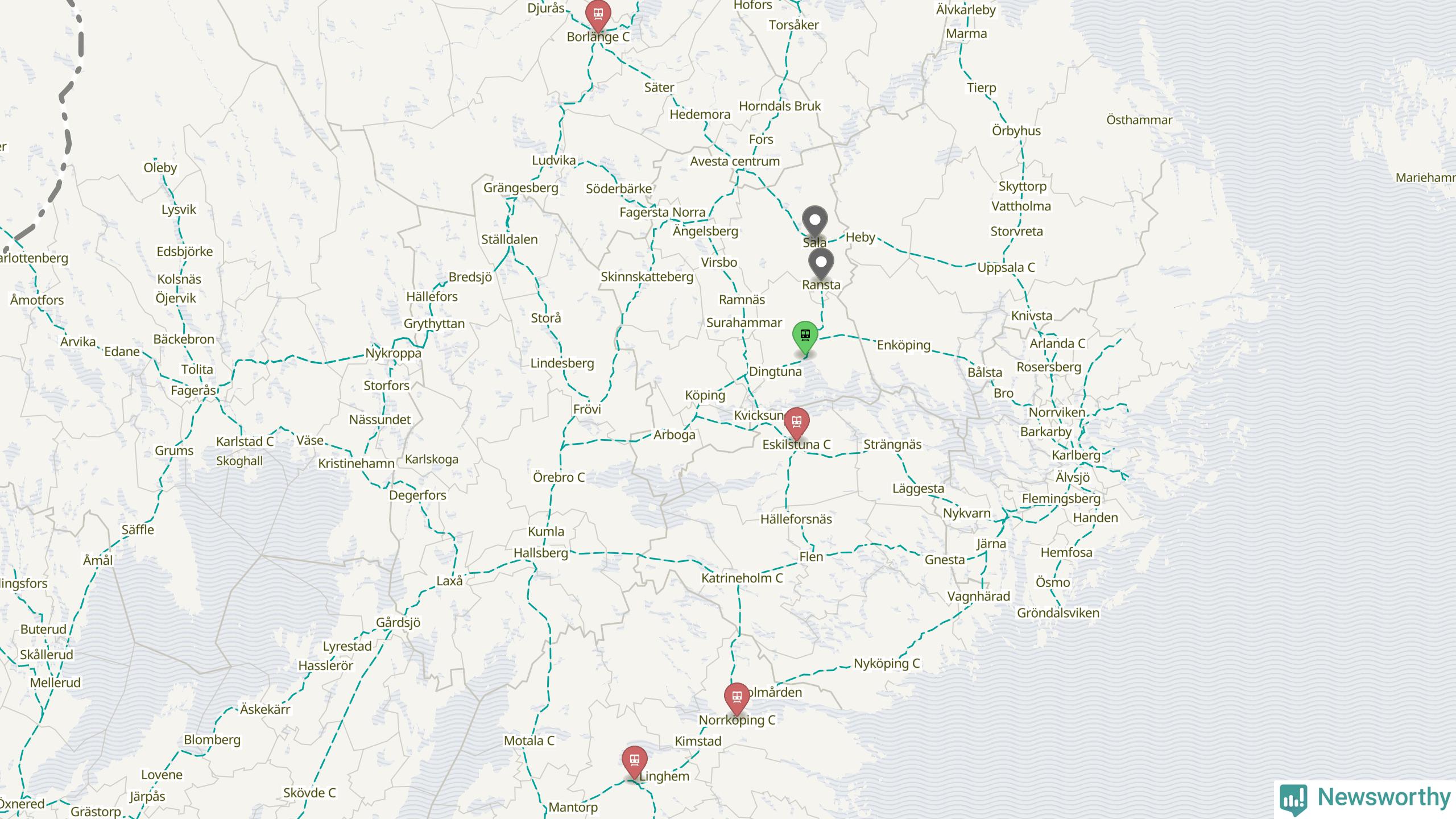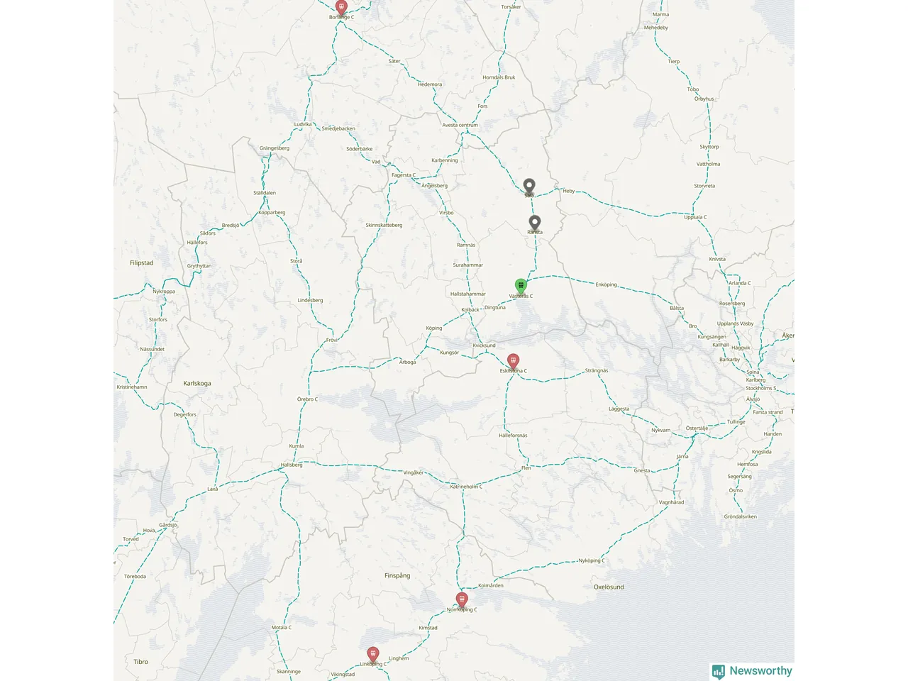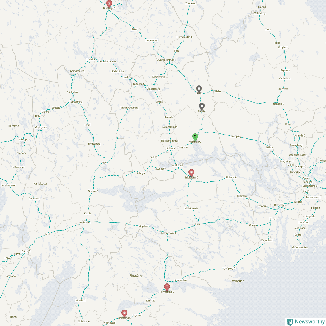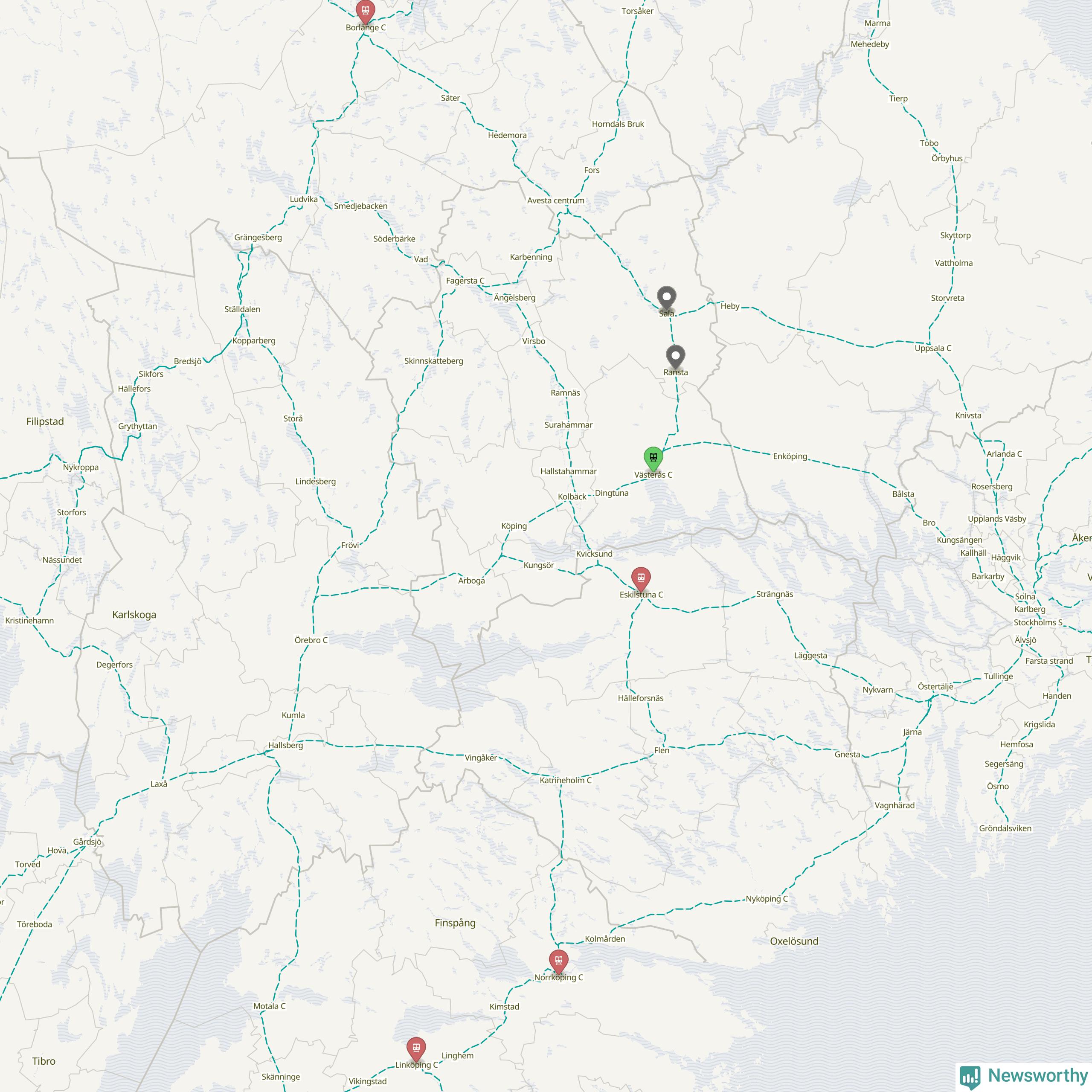 Kartdata från Mapbox, Newsworthy, OpenStreetMap och Trafikverket. Uppgifter om sträckor med passagerartrafik från jarnvag.net.