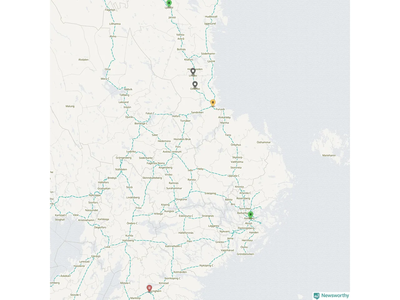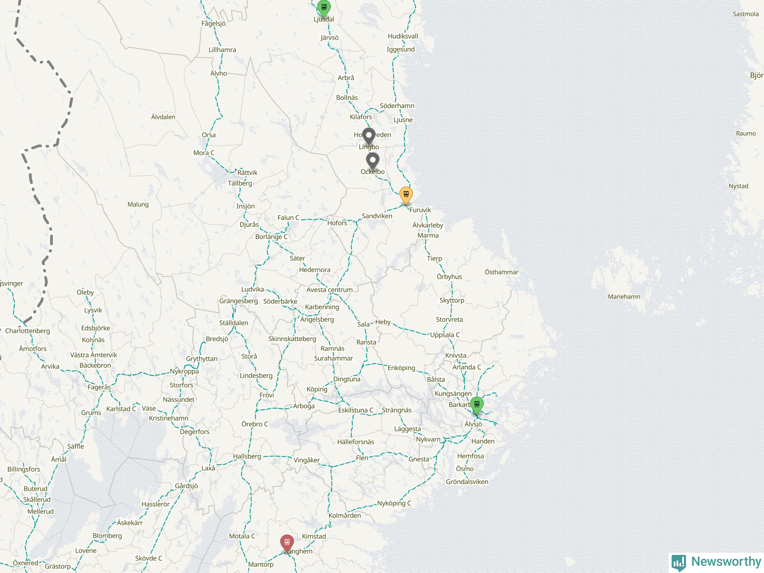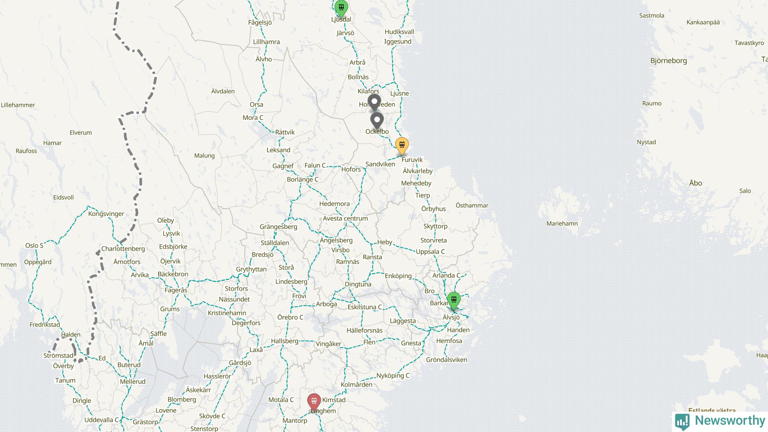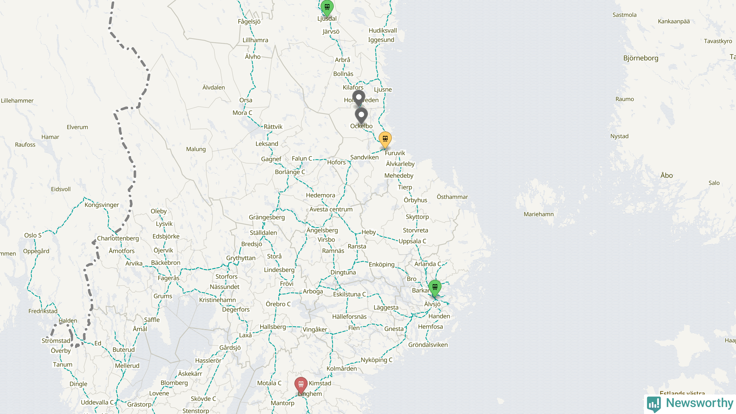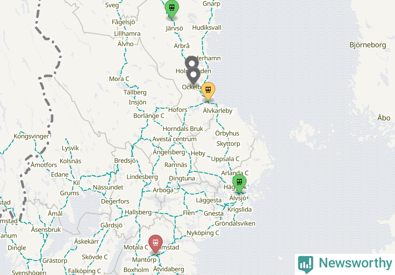 Kartdata från Mapbox, Newsworthy, OpenStreetMap och Trafikverket. Uppgifter om sträckor med passagerartrafik från jarnvag.net.