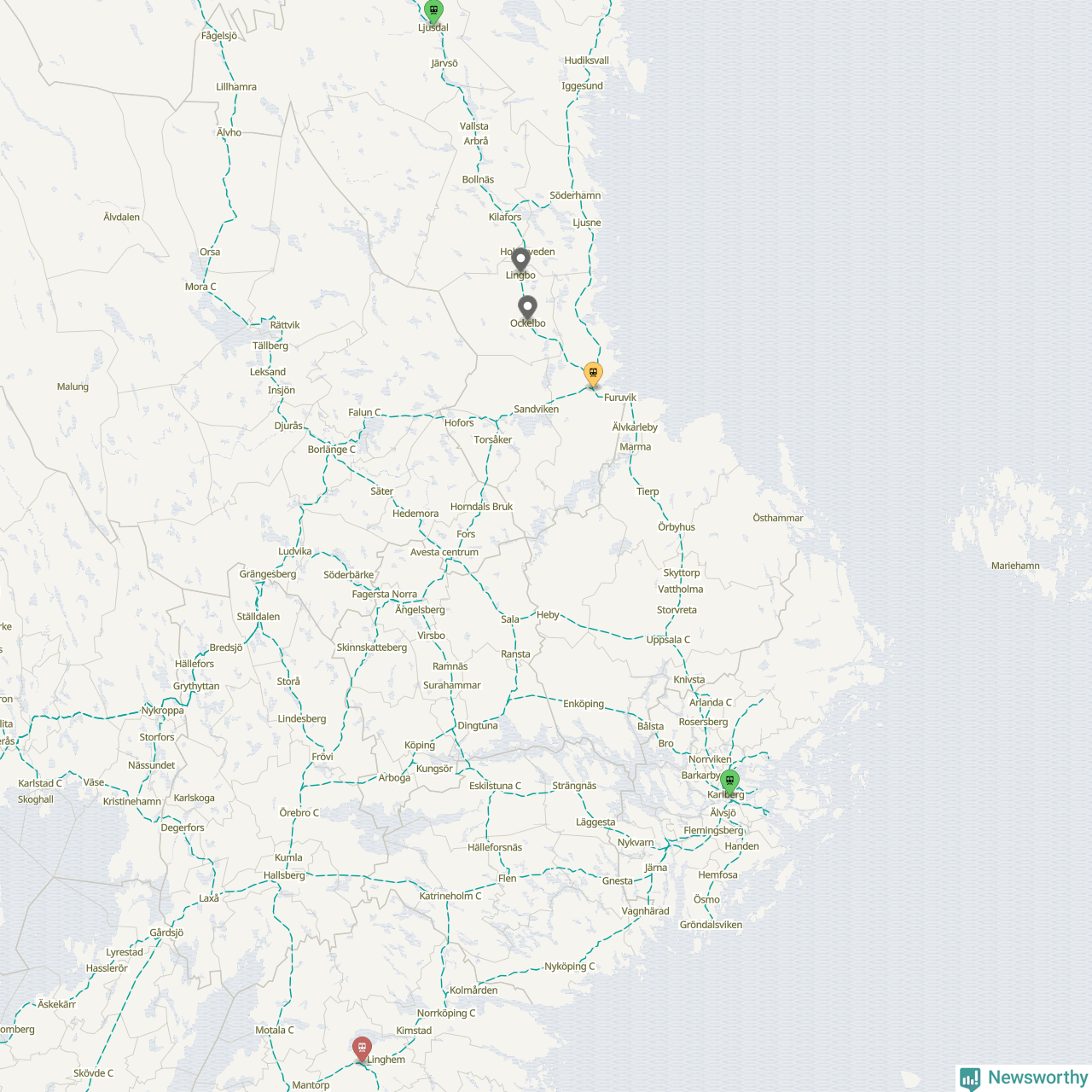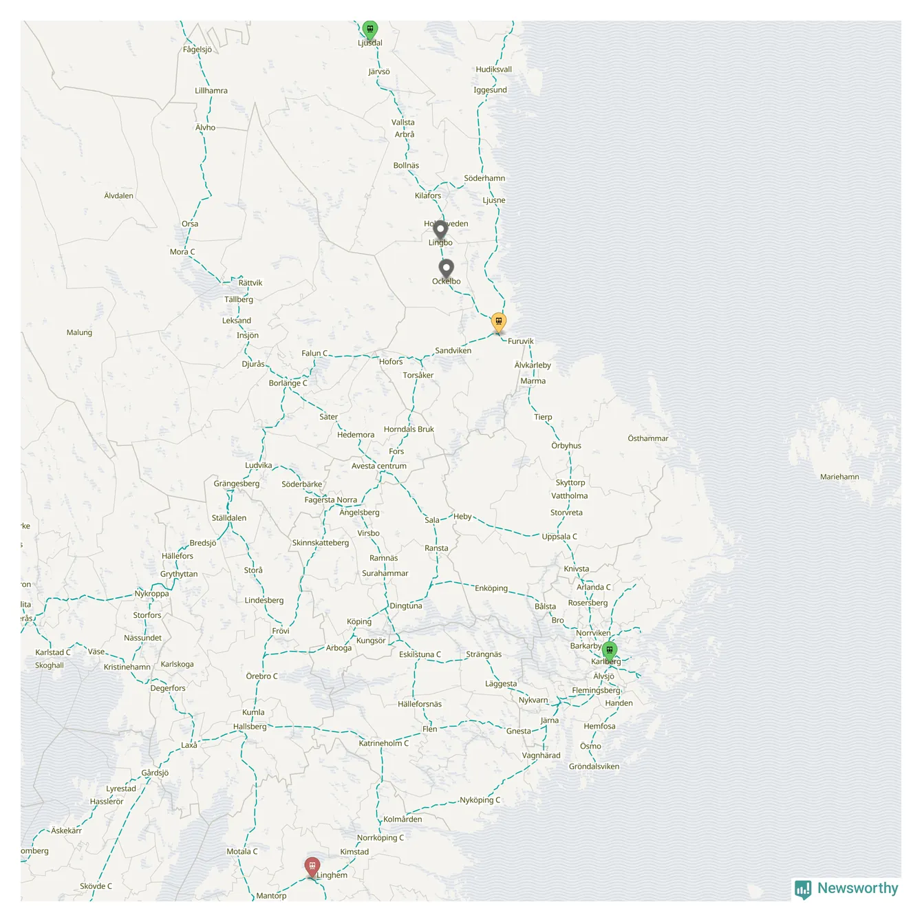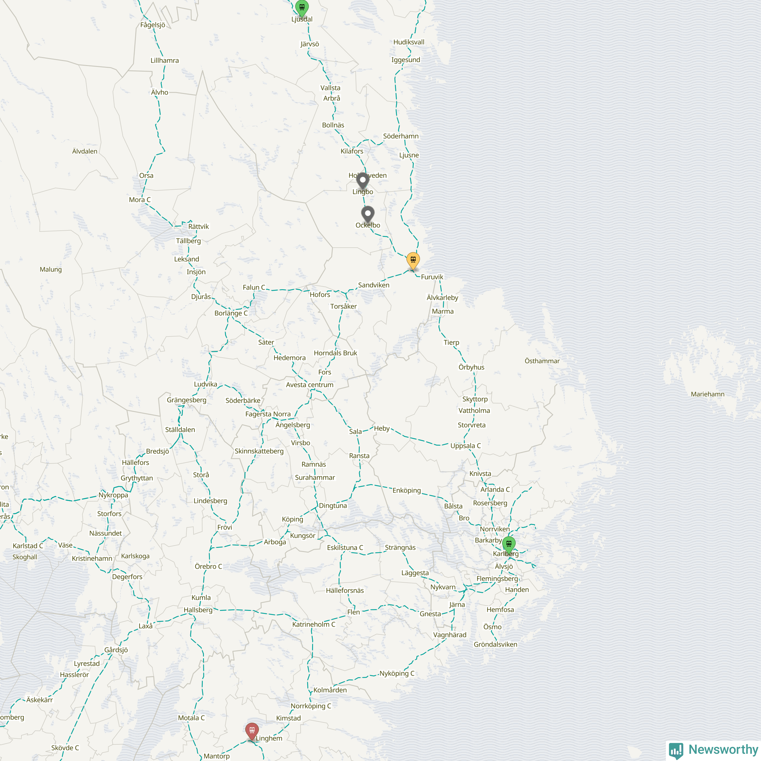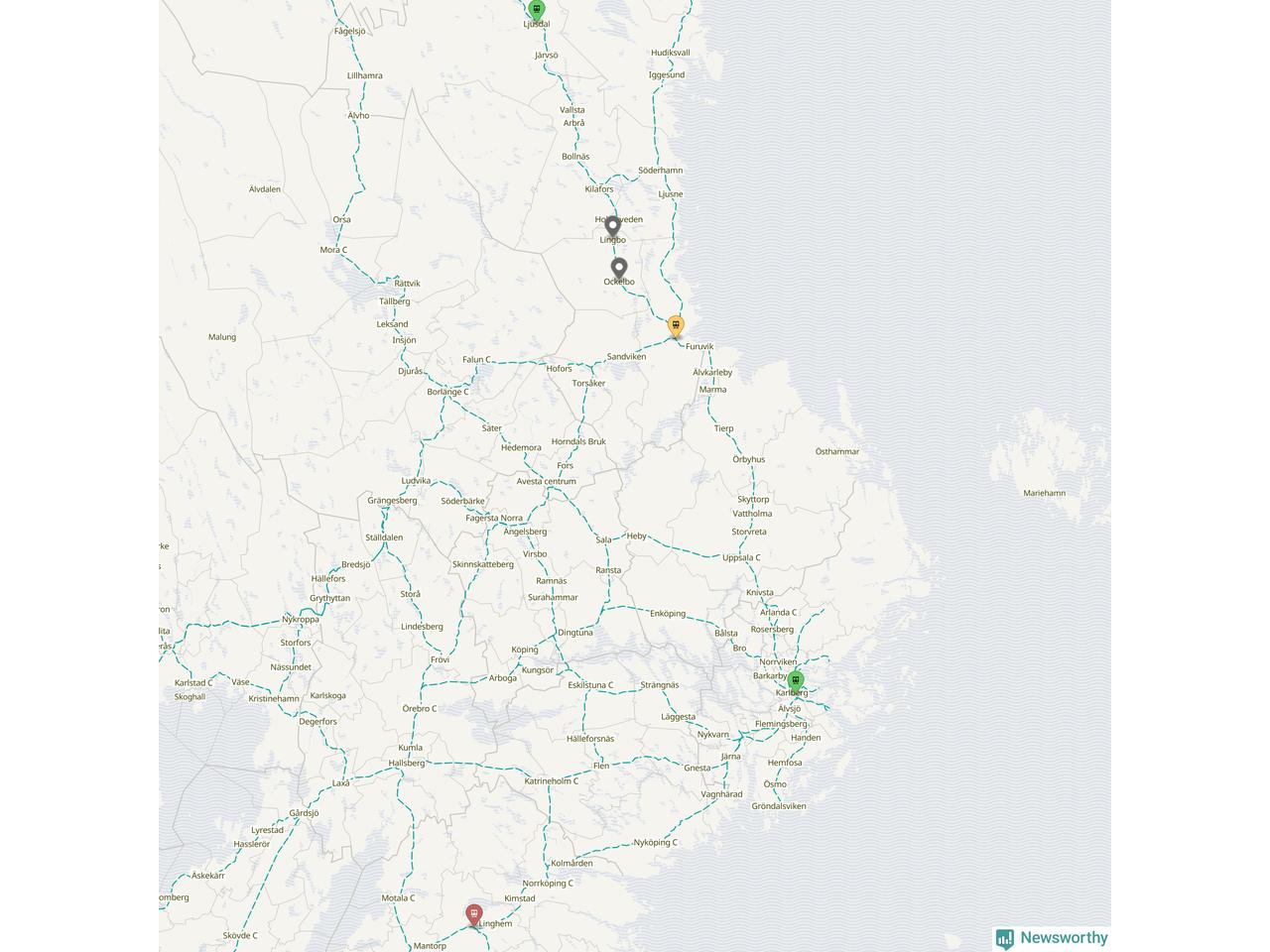 Kartdata från Mapbox, Newsworthy, OpenStreetMap och Trafikverket. Uppgifter om sträckor med passagerartrafik från jarnvag.net.