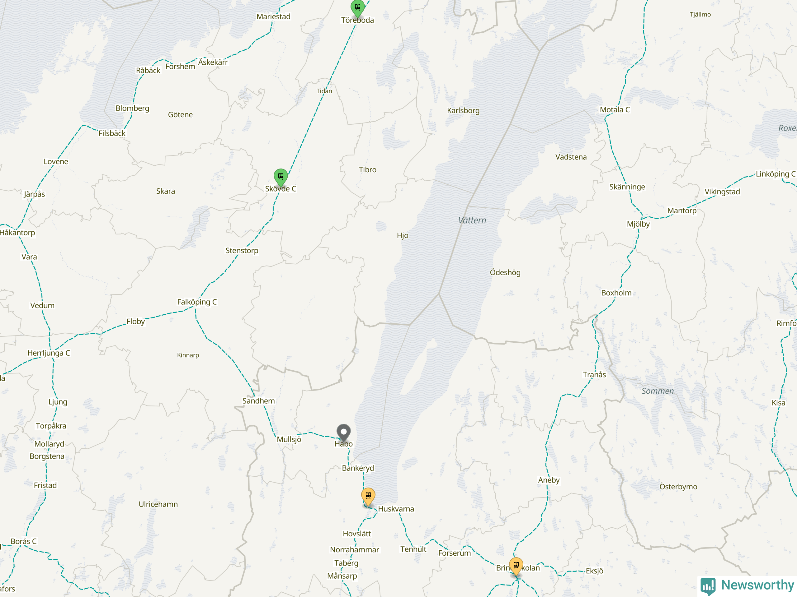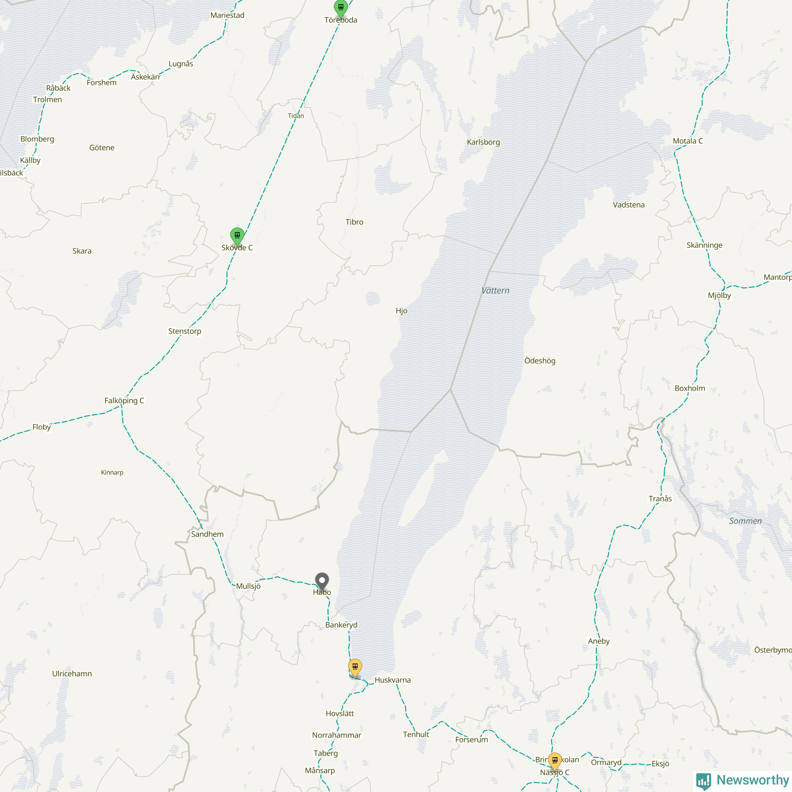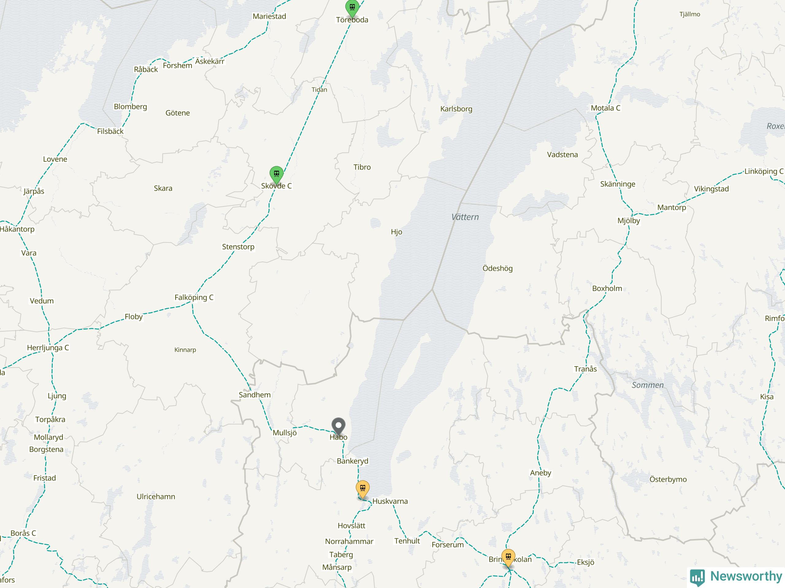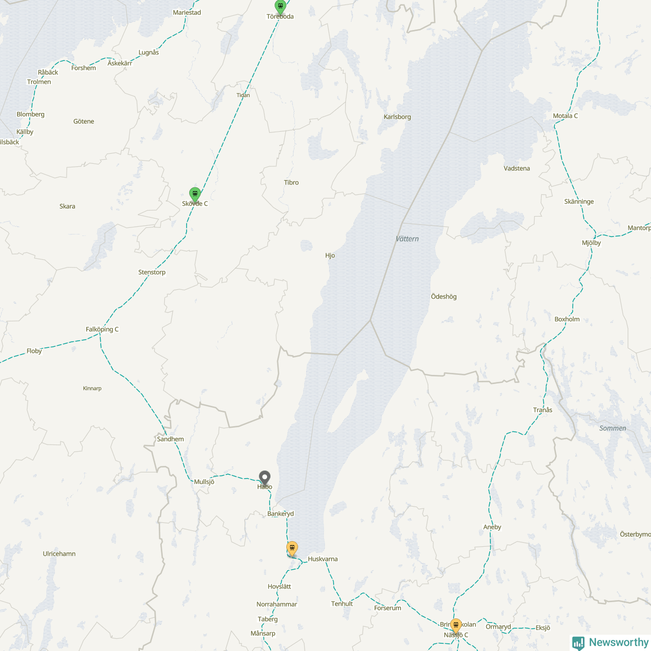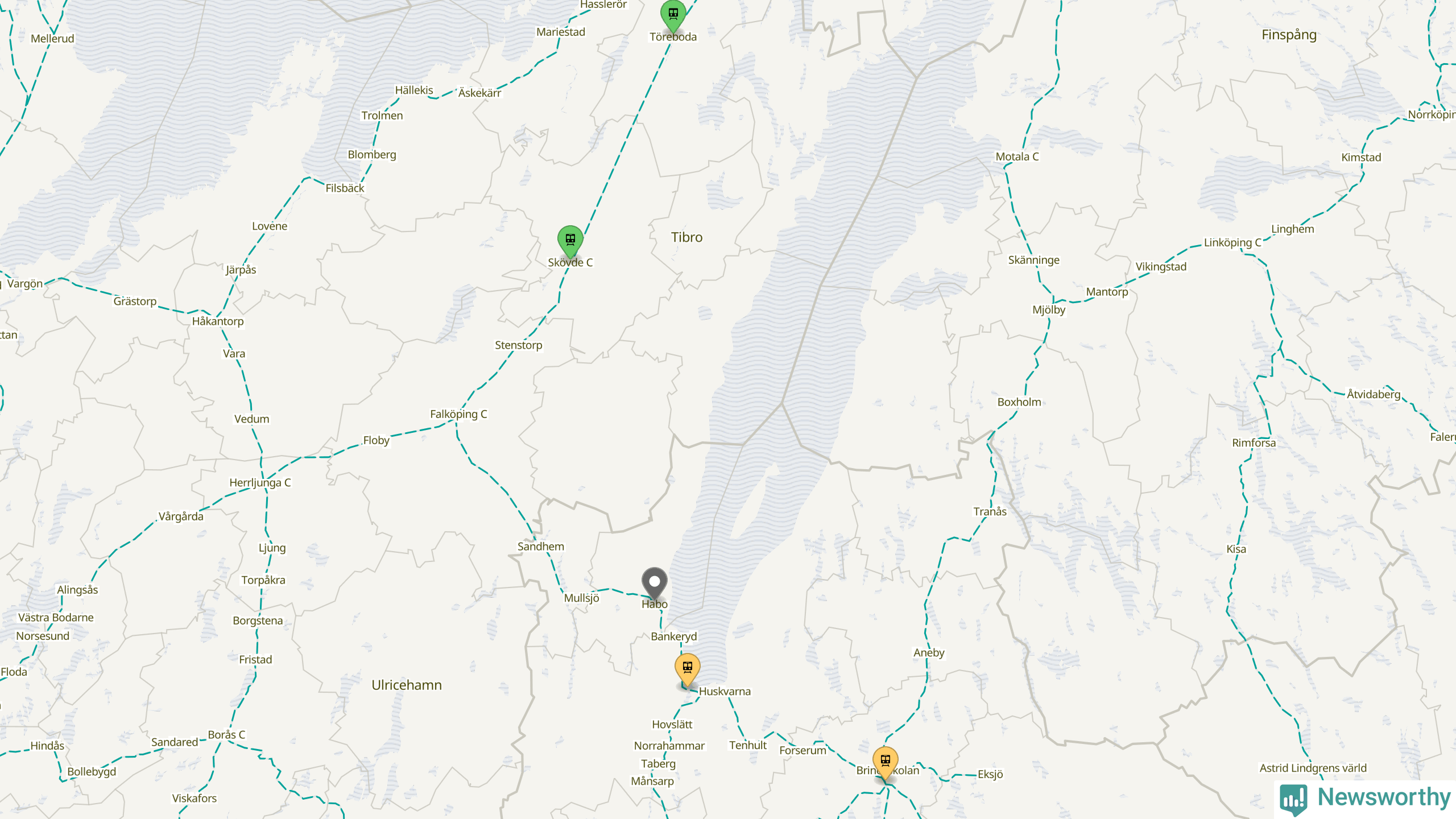 Kartdata från Mapbox, Newsworthy, OpenStreetMap och Trafikverket. Uppgifter om sträckor med passagerartrafik från jarnvag.net.