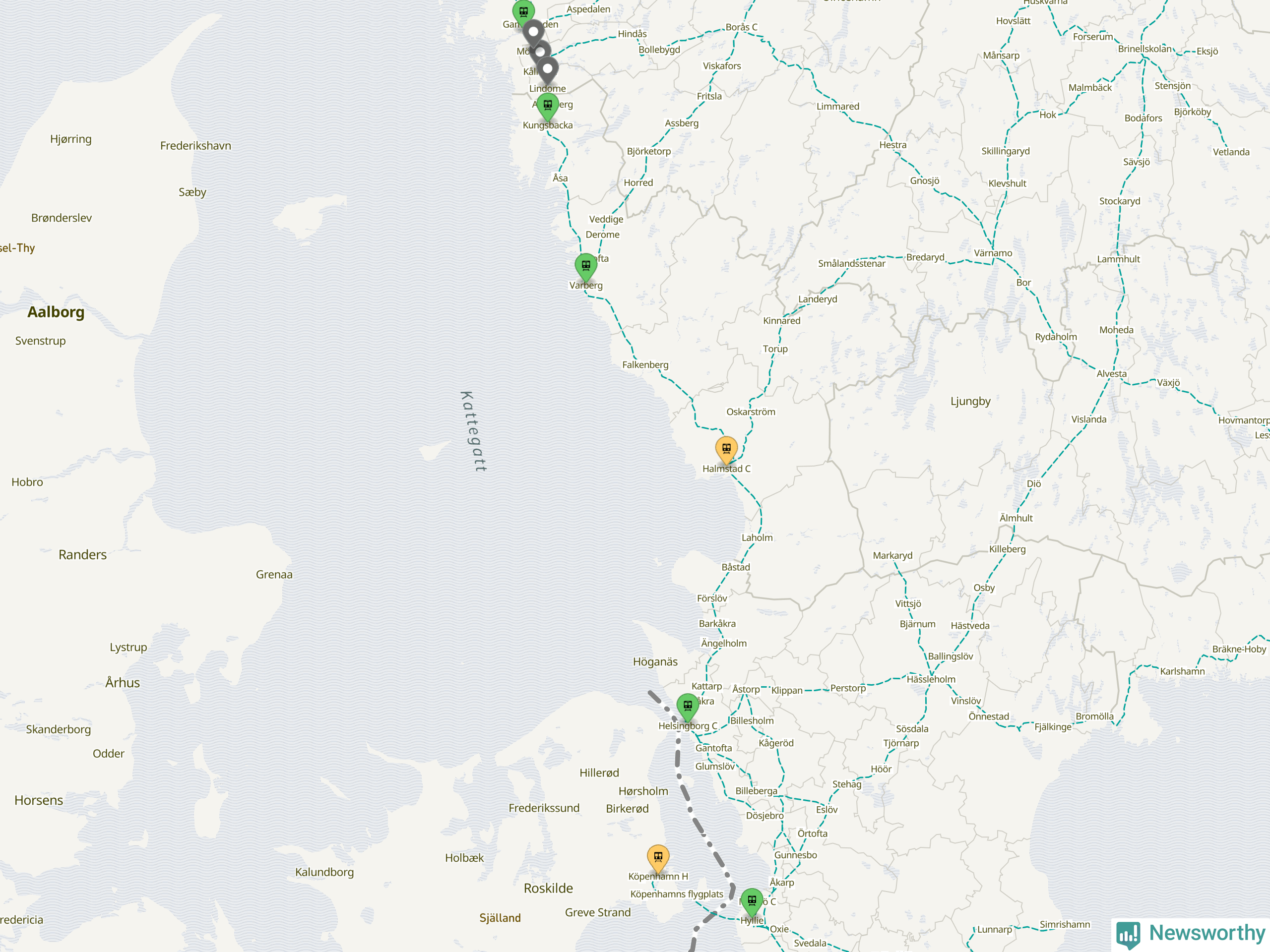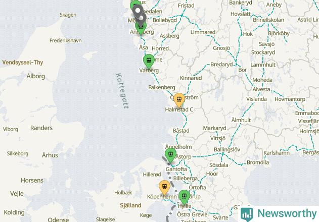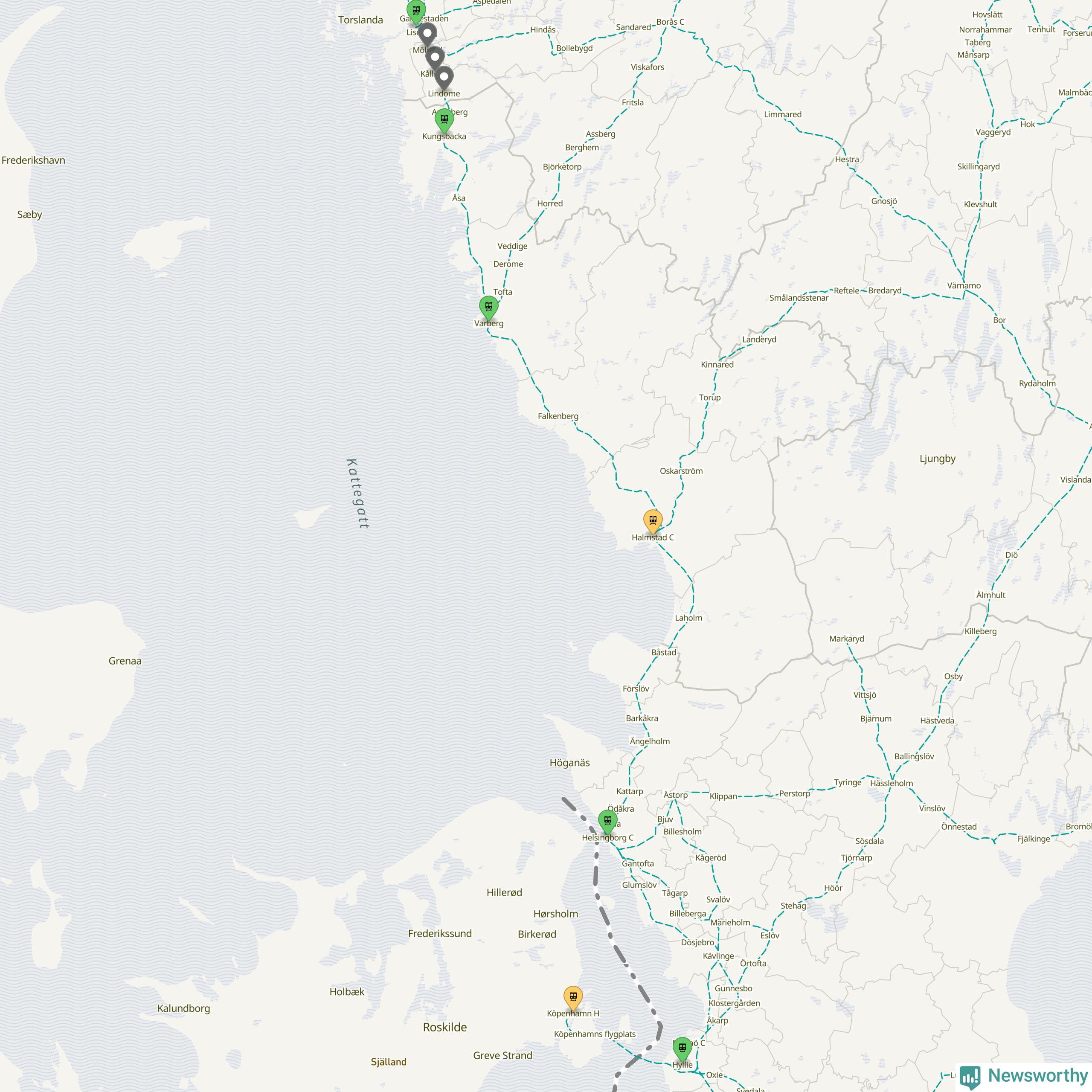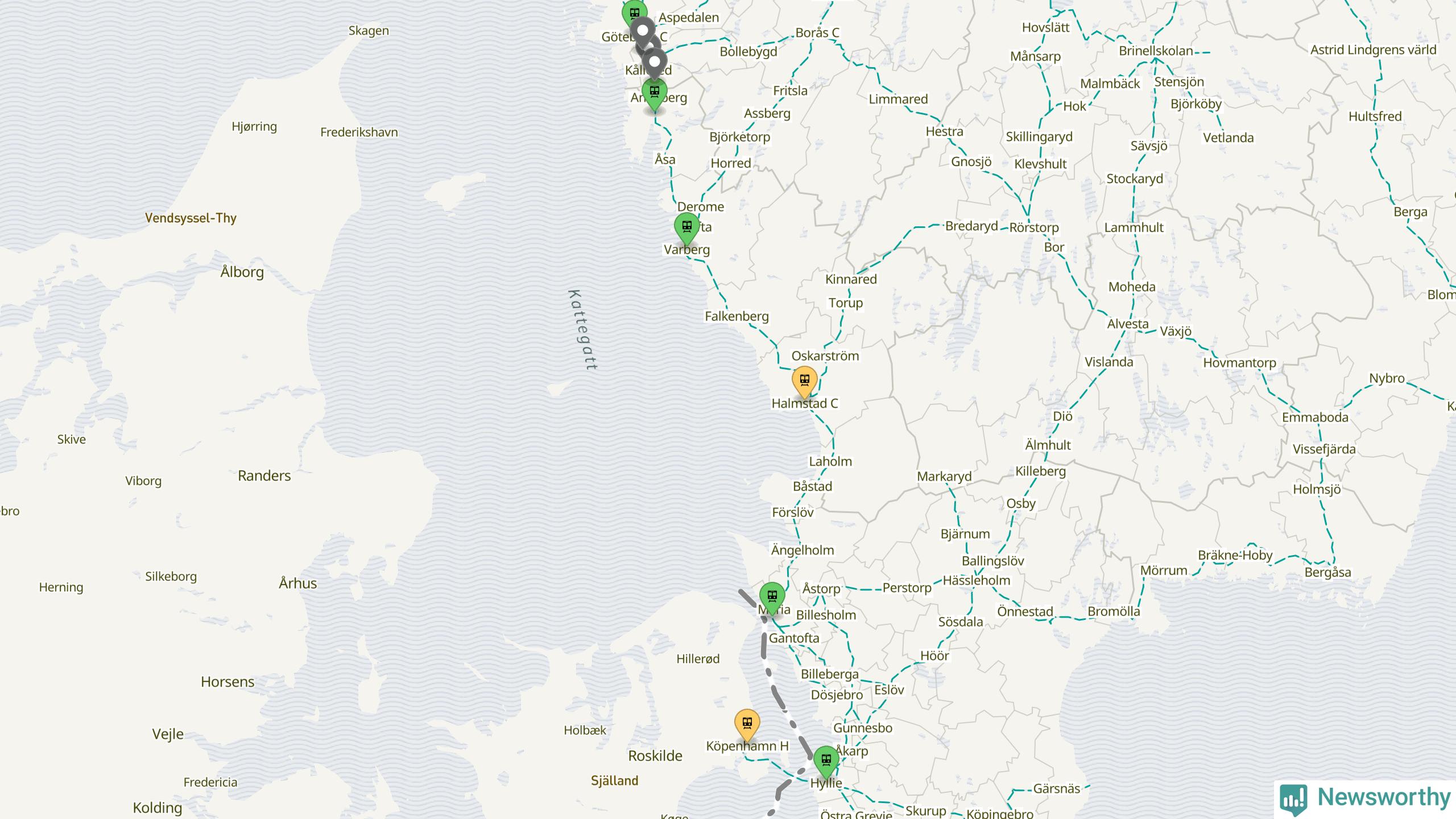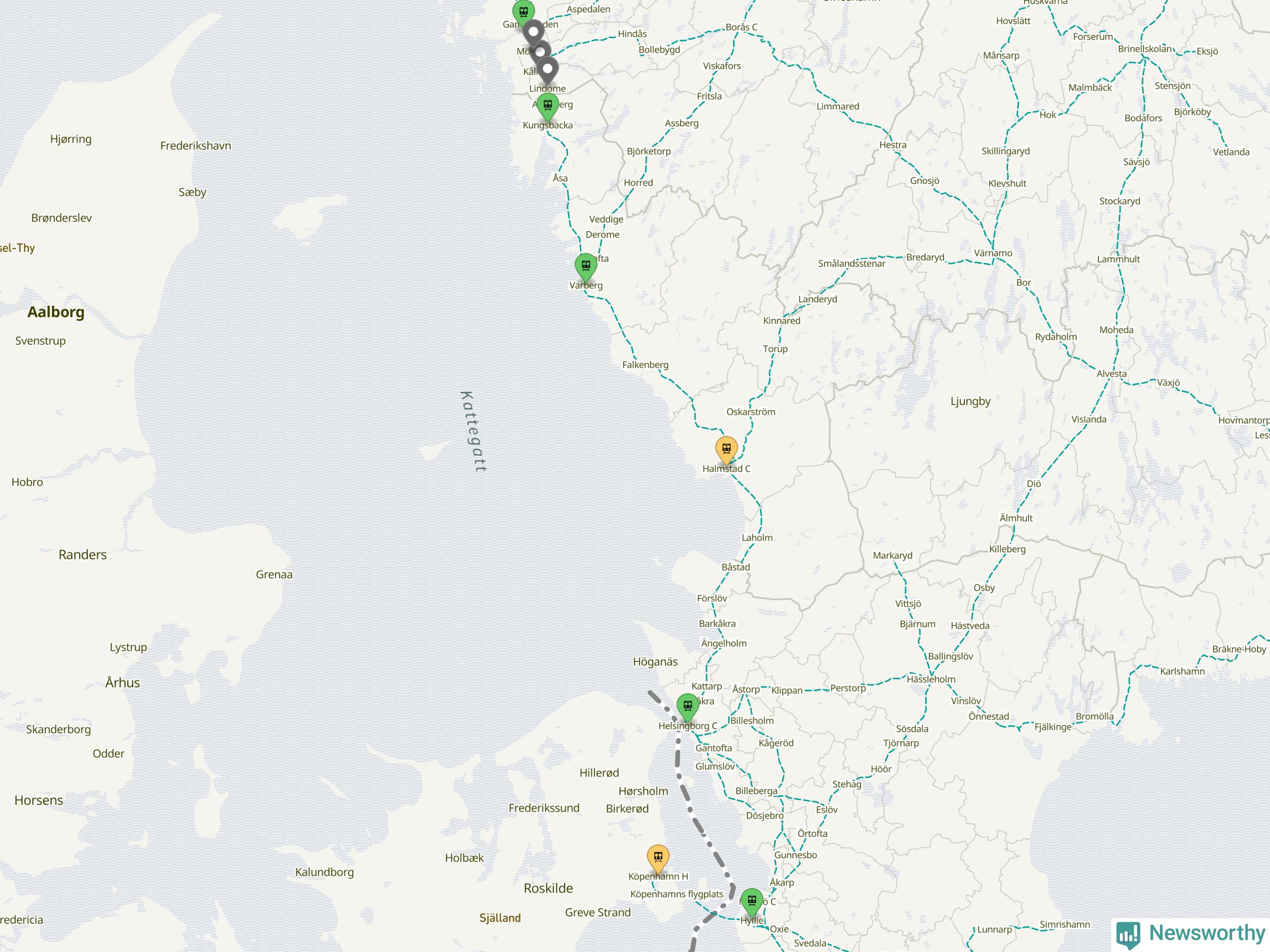 Kartdata från Mapbox, Newsworthy, OpenStreetMap och Trafikverket. Uppgifter om sträckor med passagerartrafik från jarnvag.net.