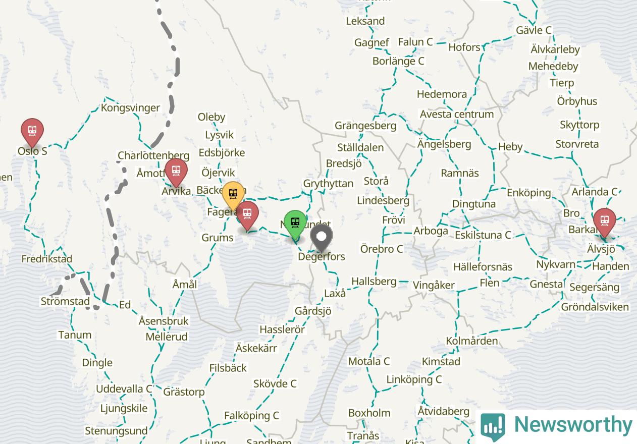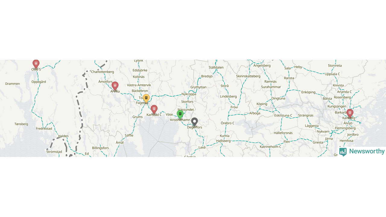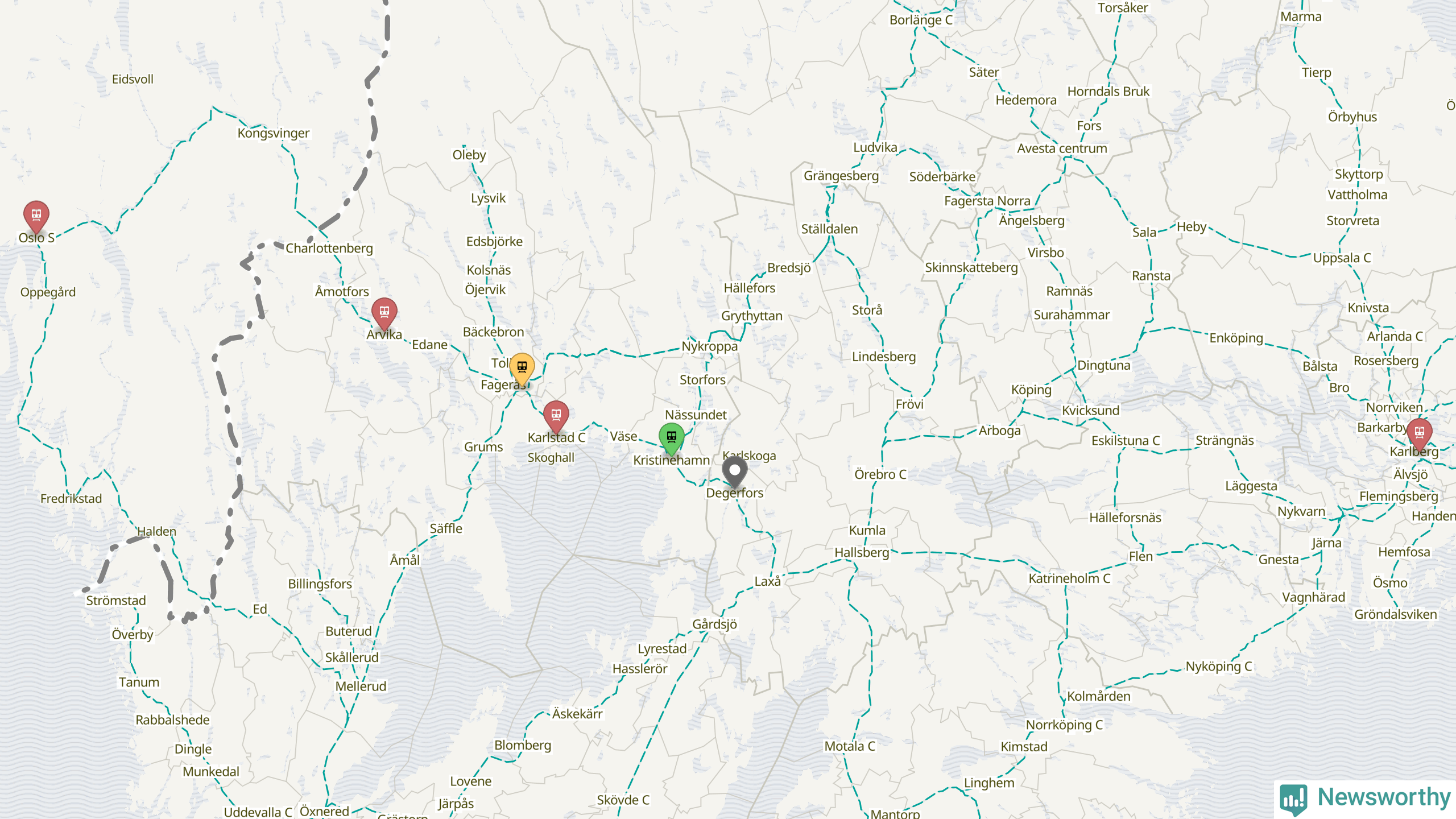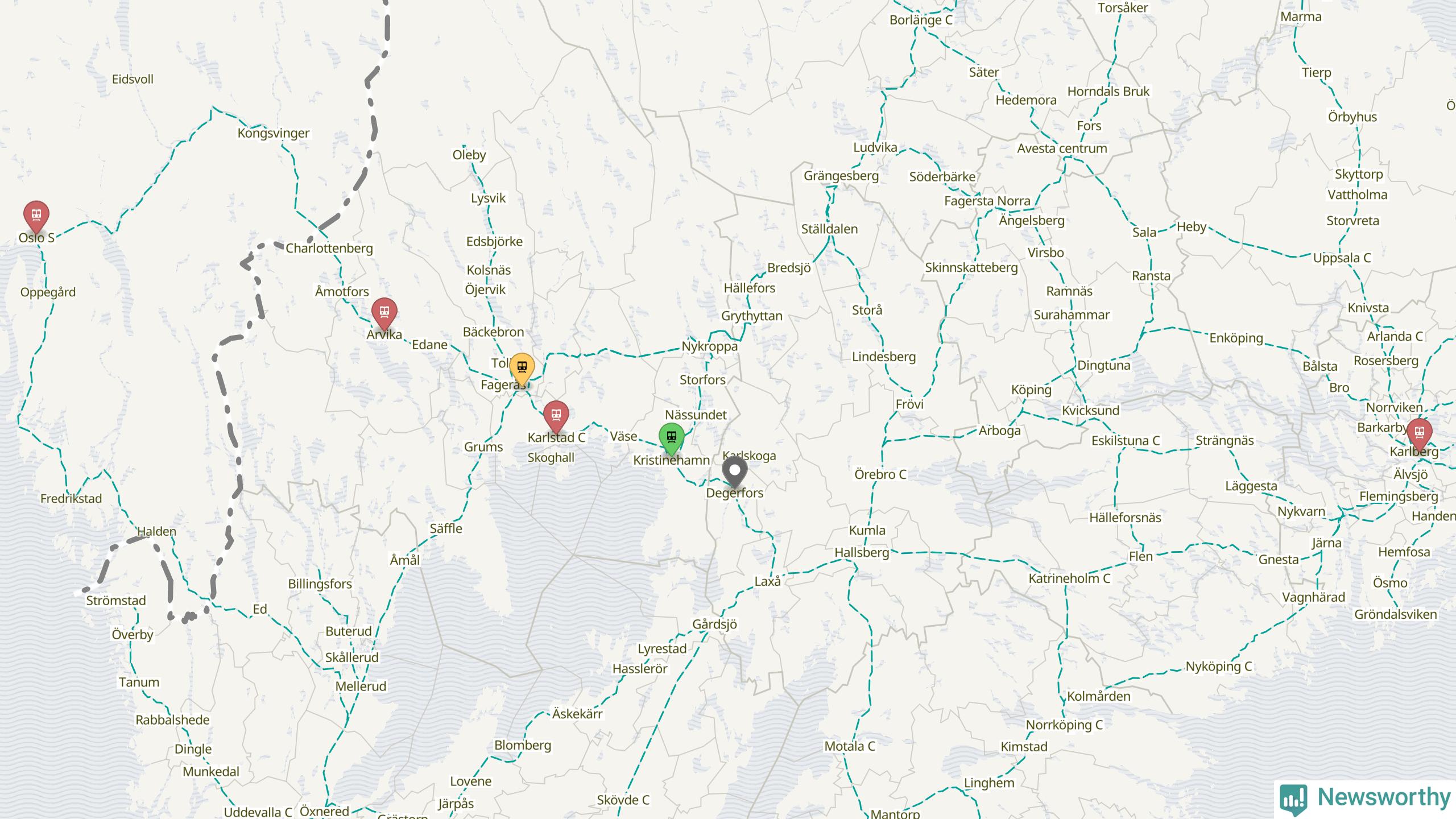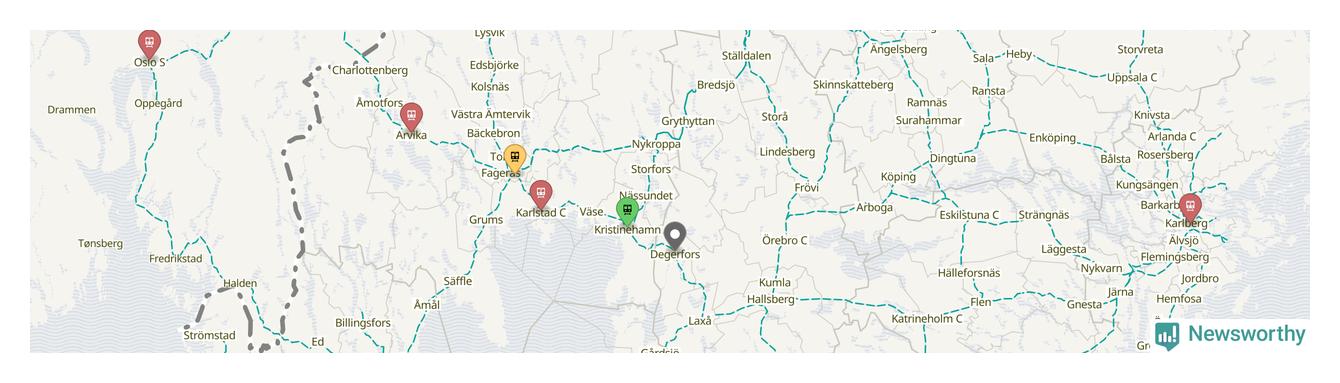 Kartdata från Mapbox, Newsworthy, OpenStreetMap och Trafikverket. Uppgifter om sträckor med passagerartrafik från jarnvag.net.