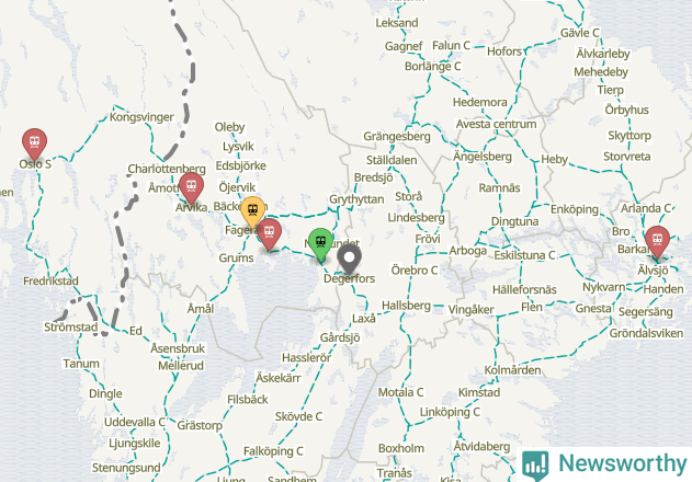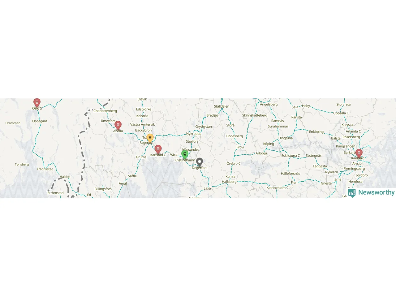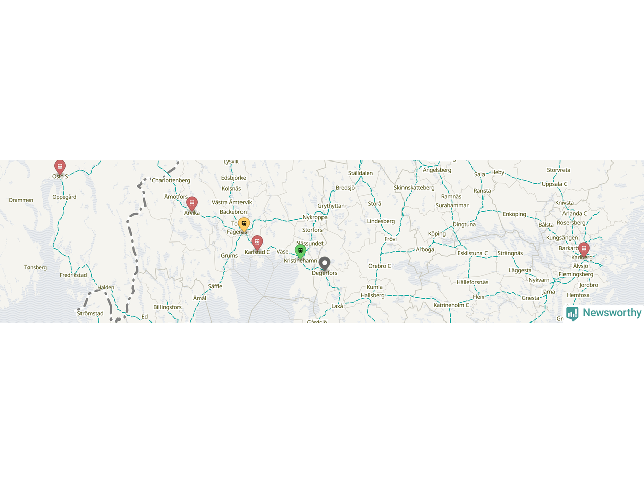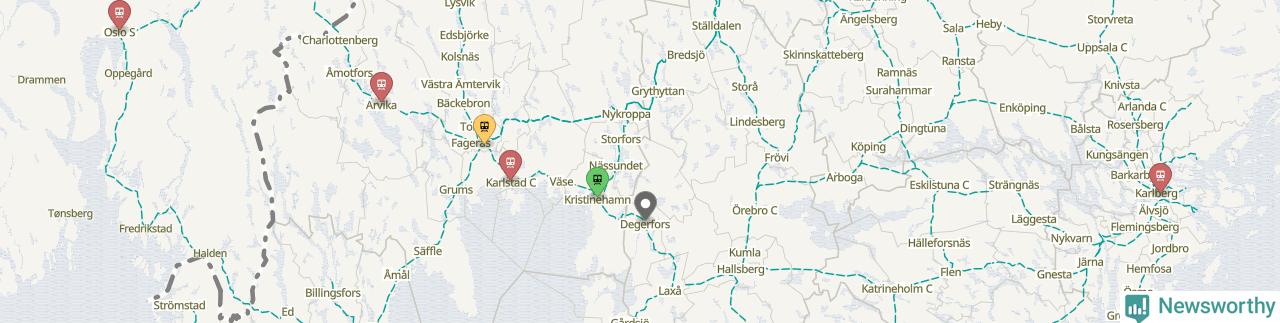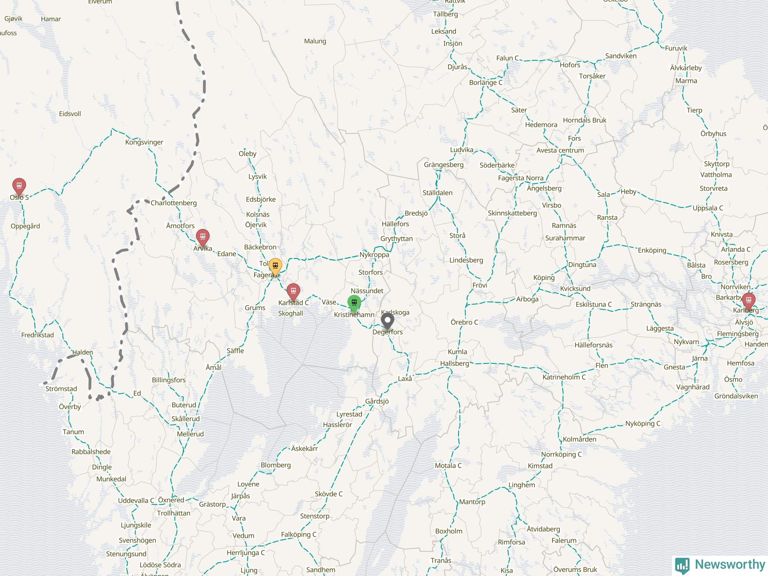 Kartdata från Mapbox, Newsworthy, OpenStreetMap och Trafikverket. Uppgifter om sträckor med passagerartrafik från jarnvag.net.