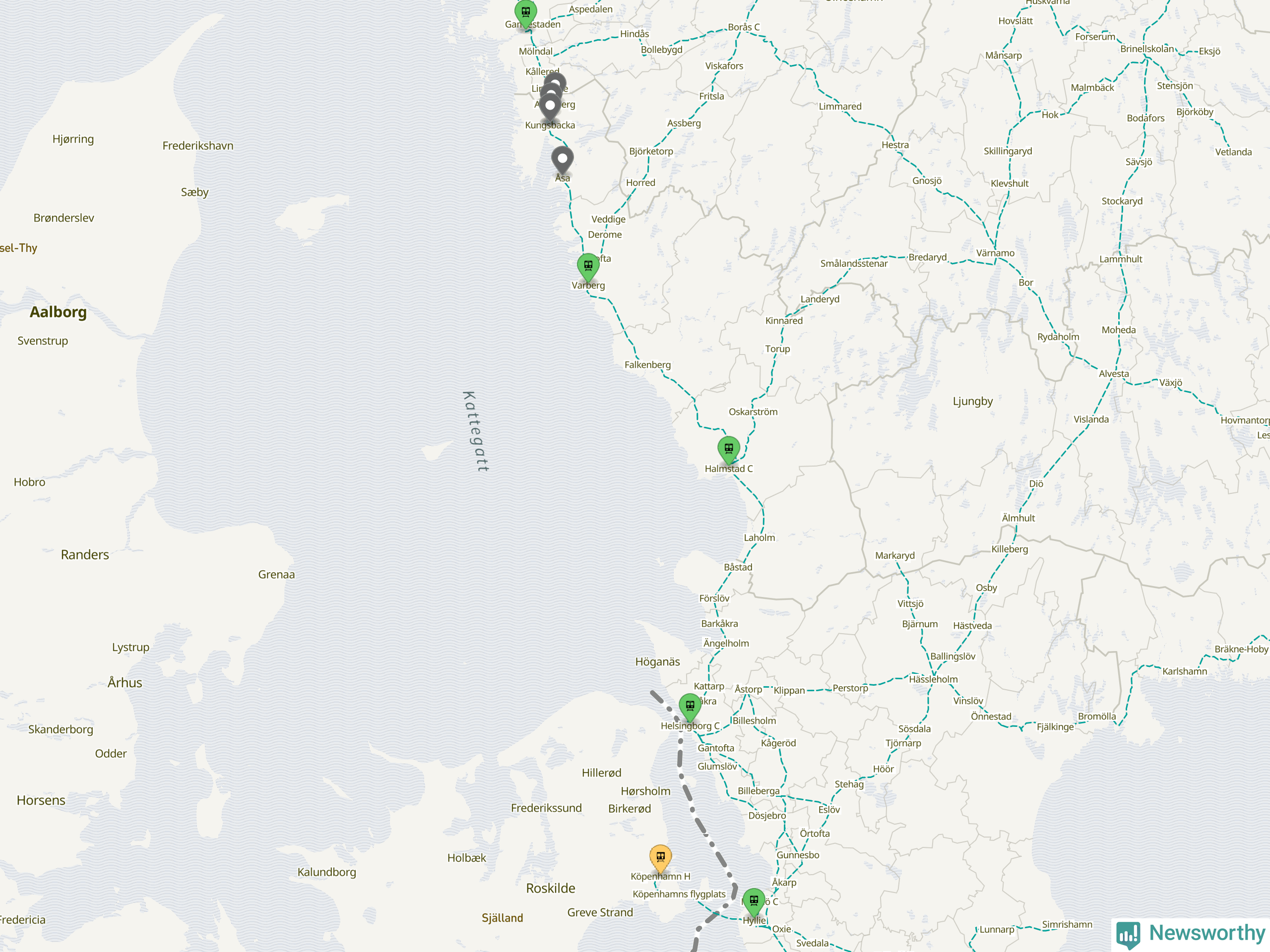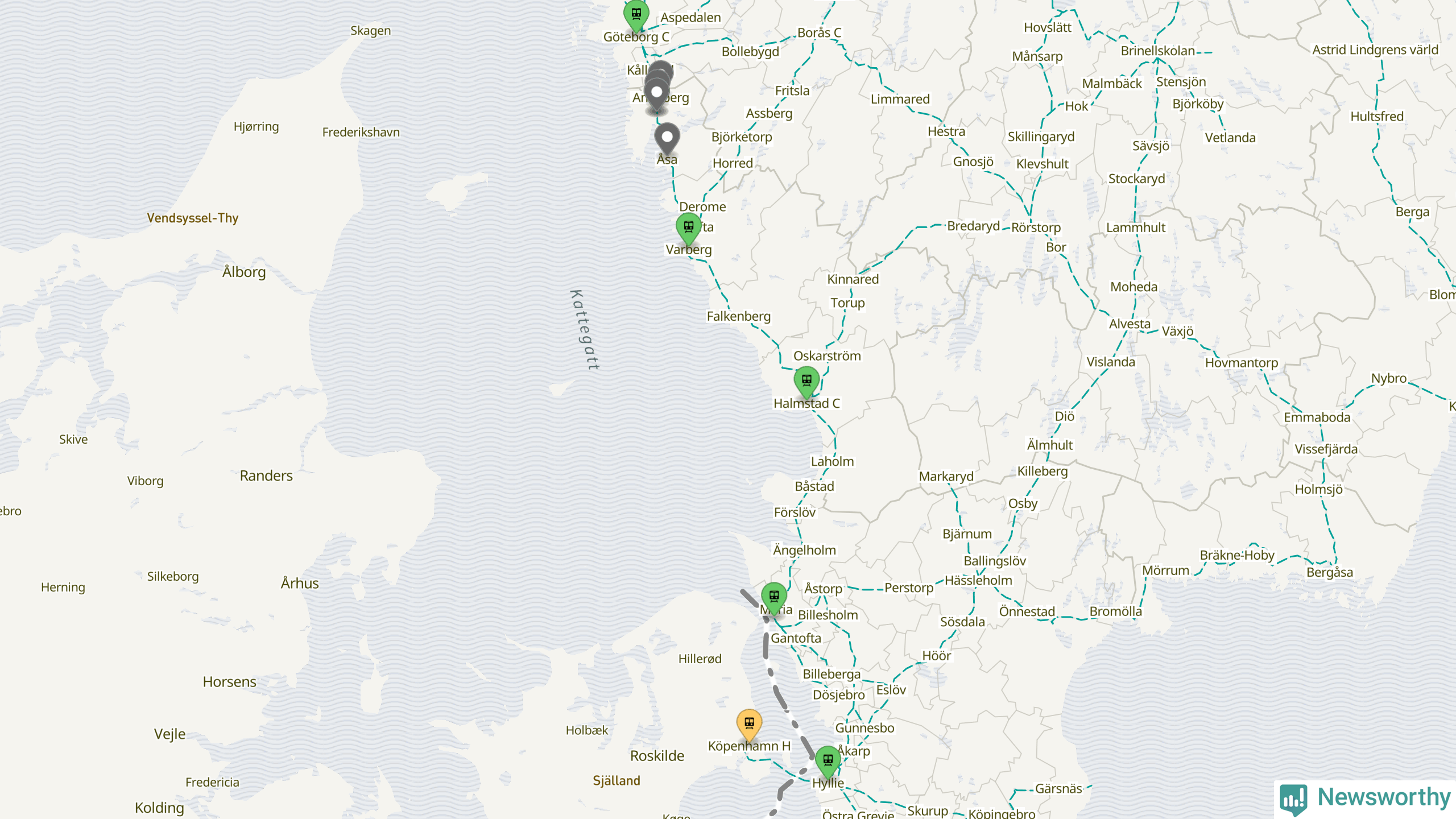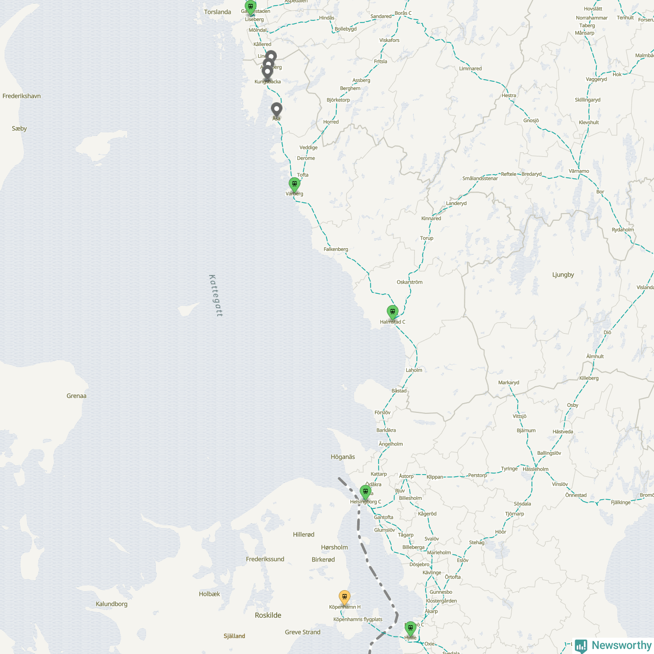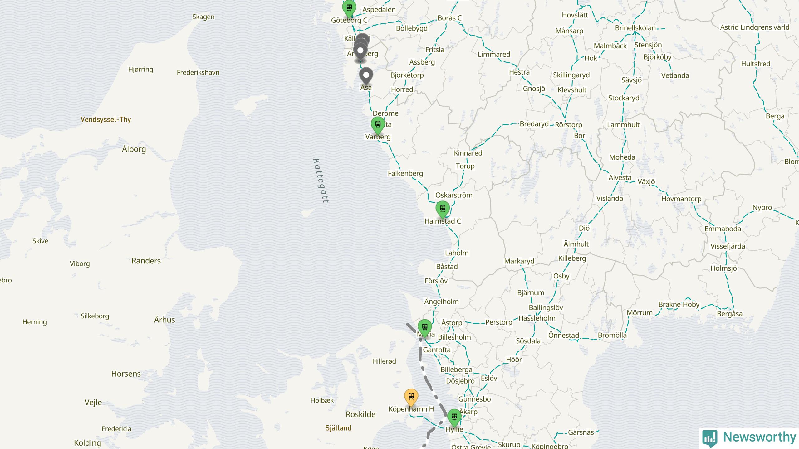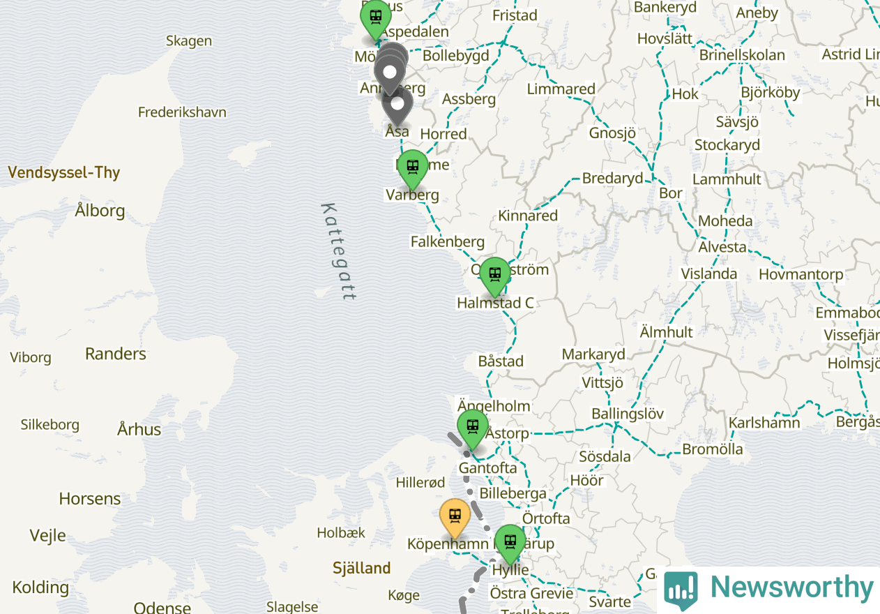 Kartdata från Mapbox, Newsworthy, OpenStreetMap och Trafikverket. Uppgifter om sträckor med passagerartrafik från jarnvag.net.