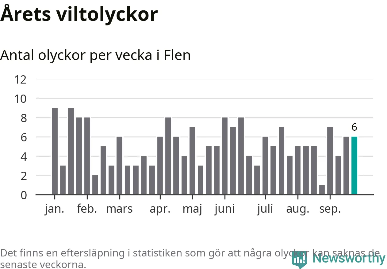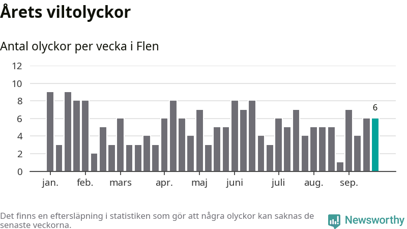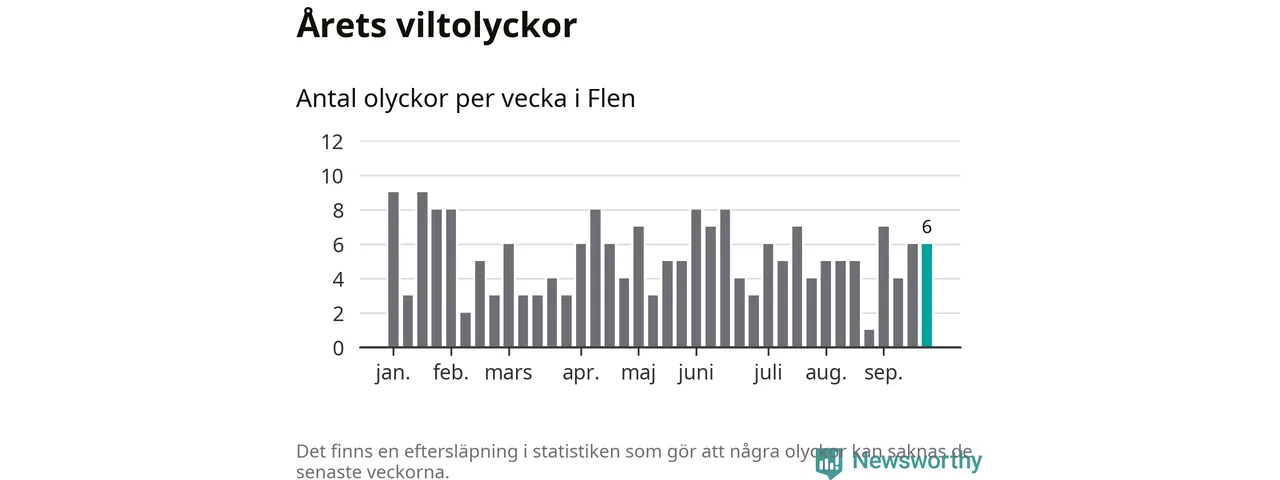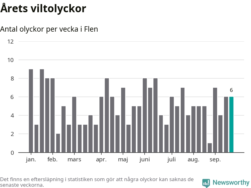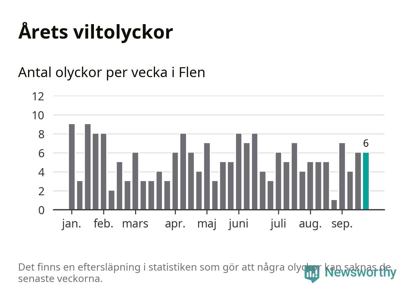 Hittills har sex viltolyckor rapporterats in i Flens kommun från vecka 39. Se listan här.