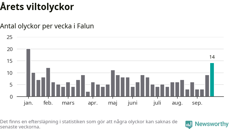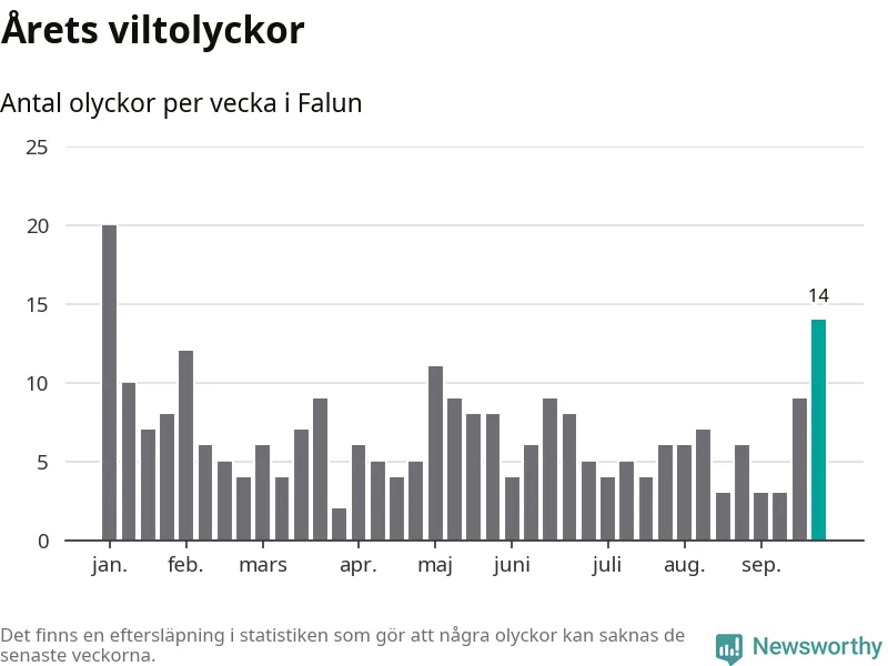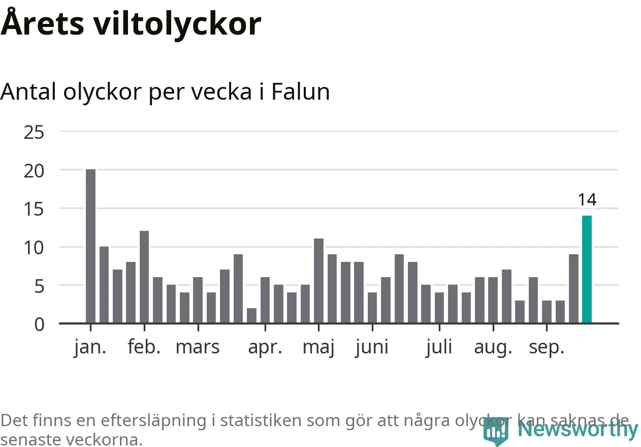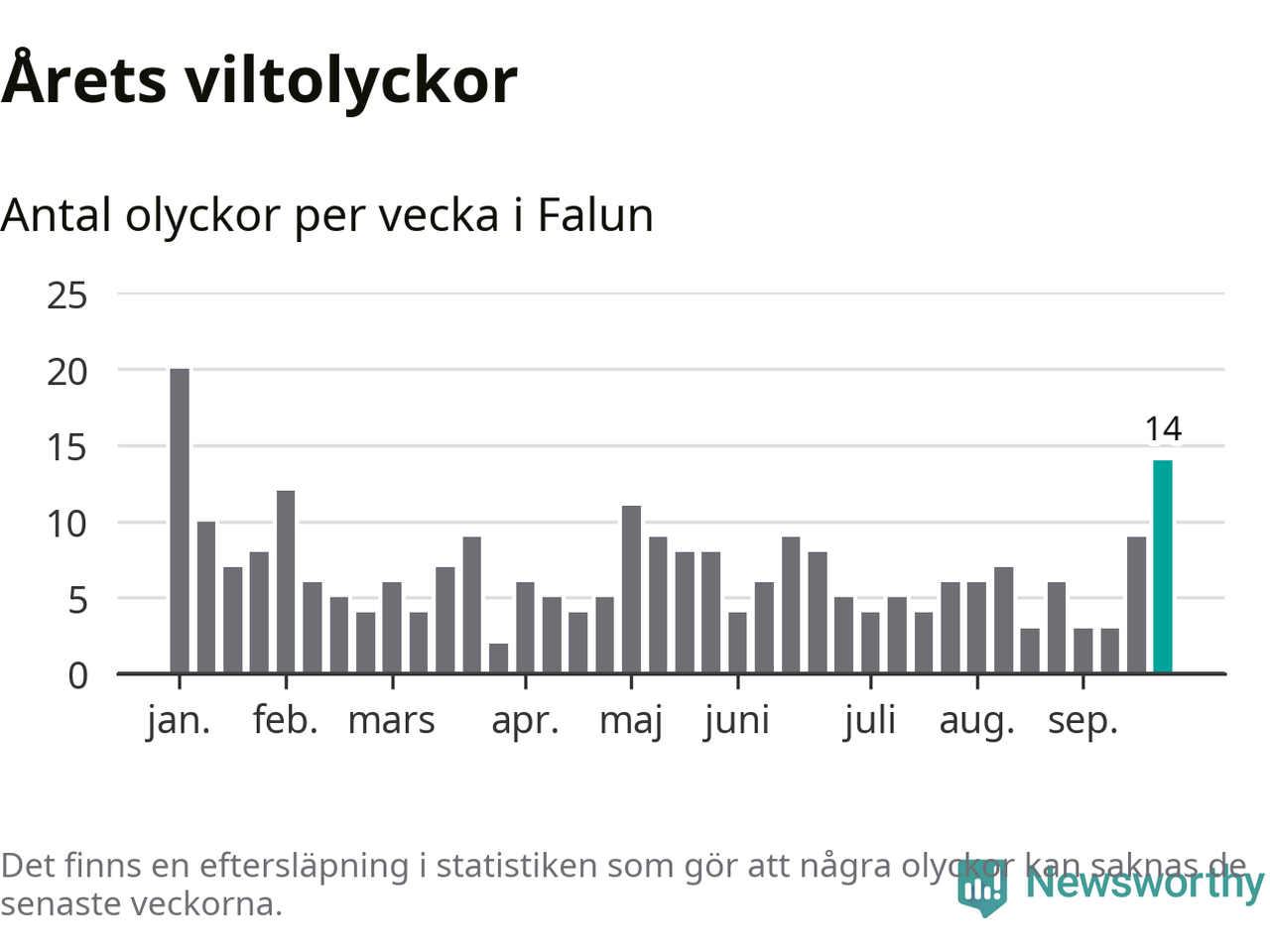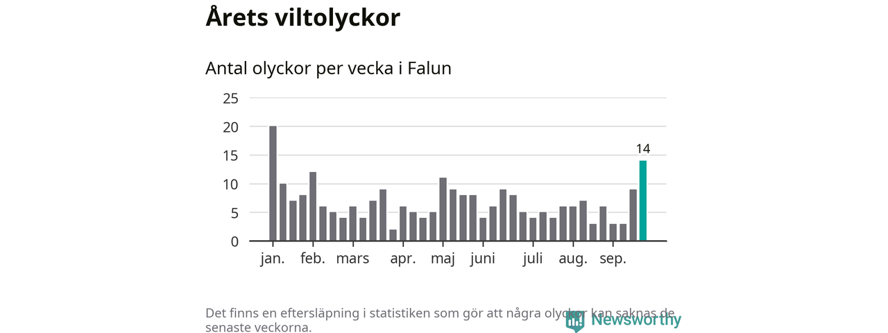 Hittills har 14 viltolyckor rapporterats in i Falu kommun från vecka 39. Se listan här.
