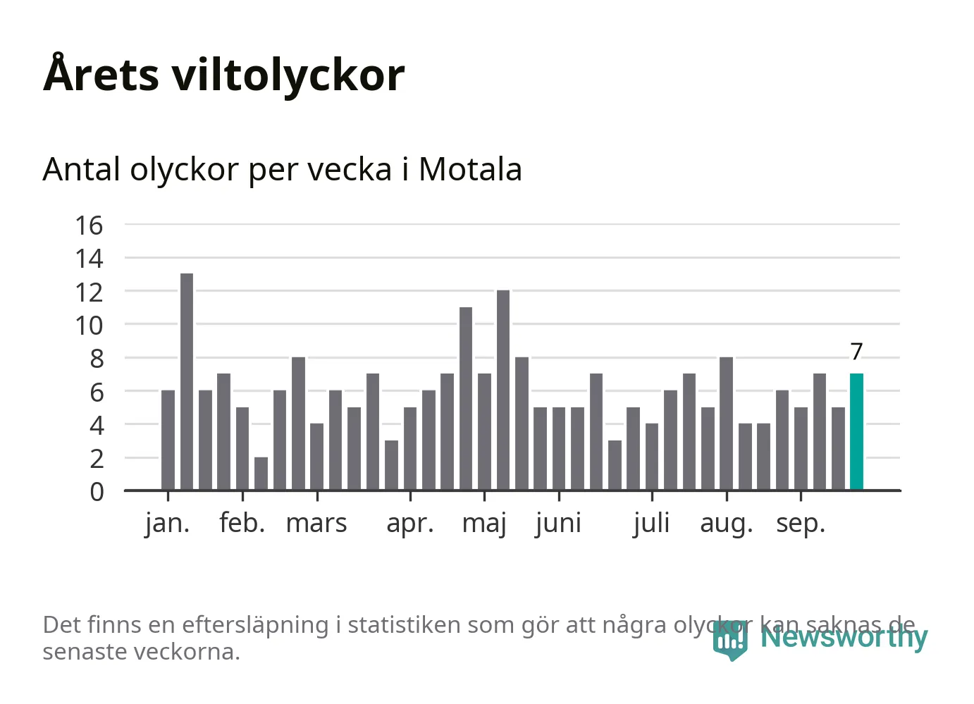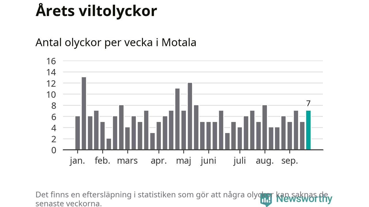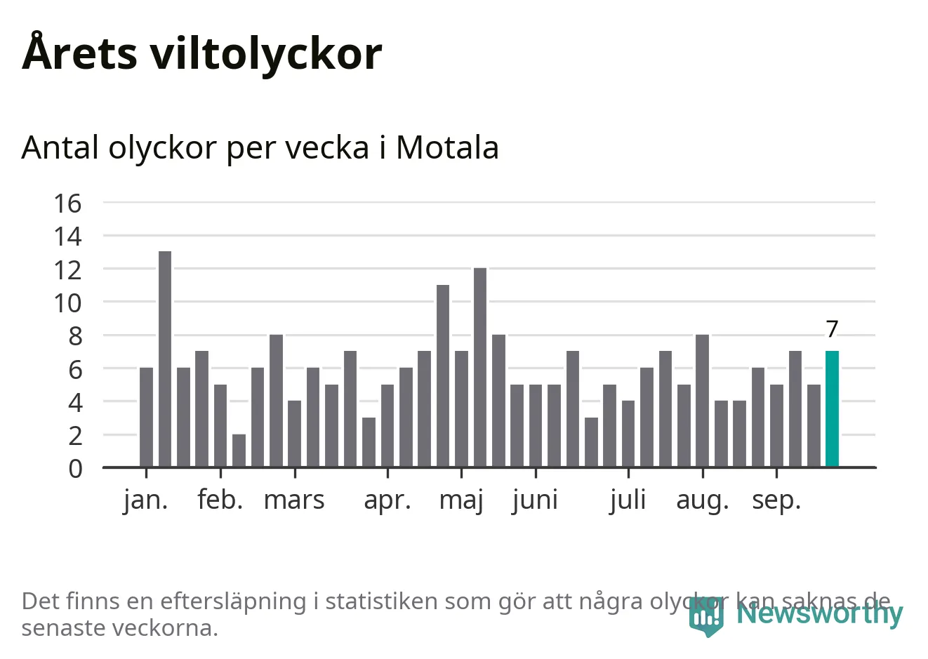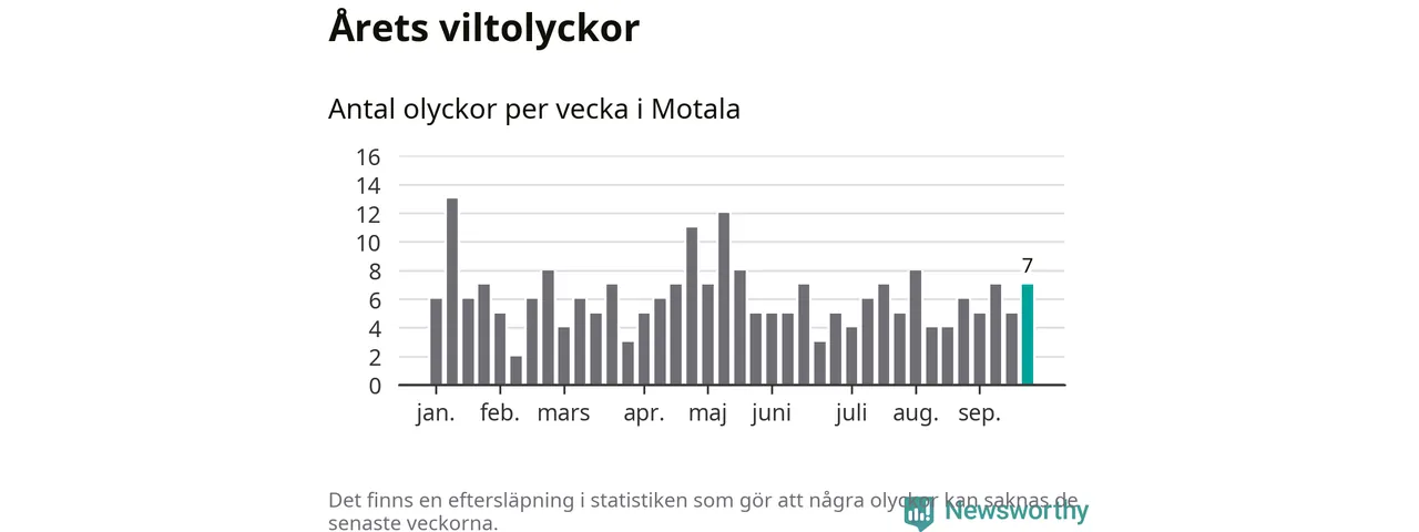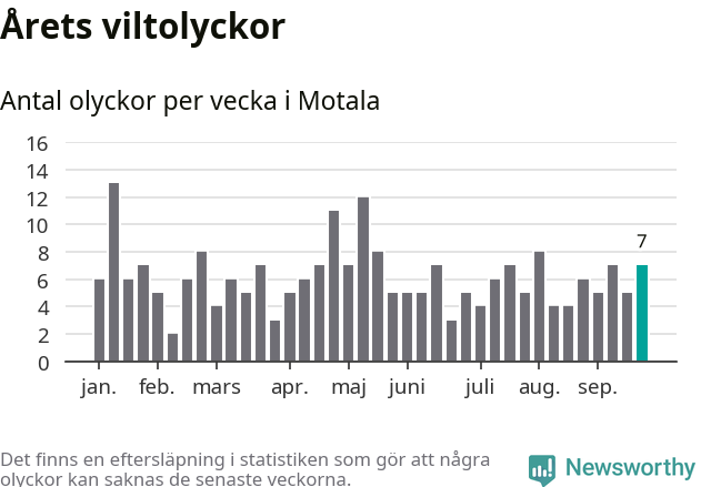 Hittills har sju viltolyckor rapporterats in i Motala kommun från vecka 39. Se listan här.