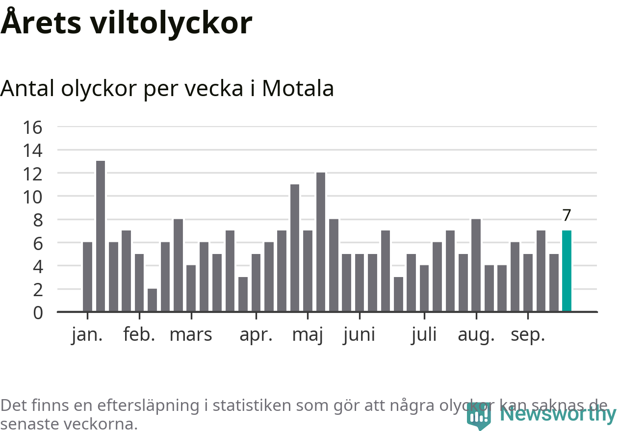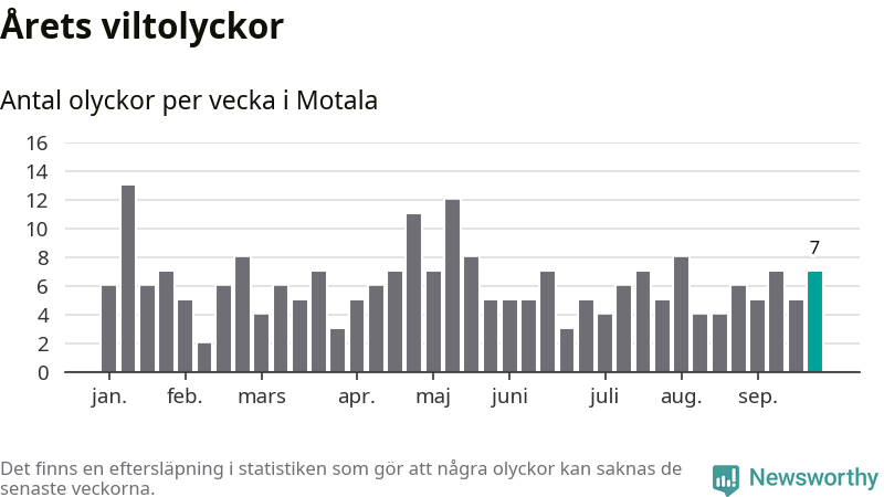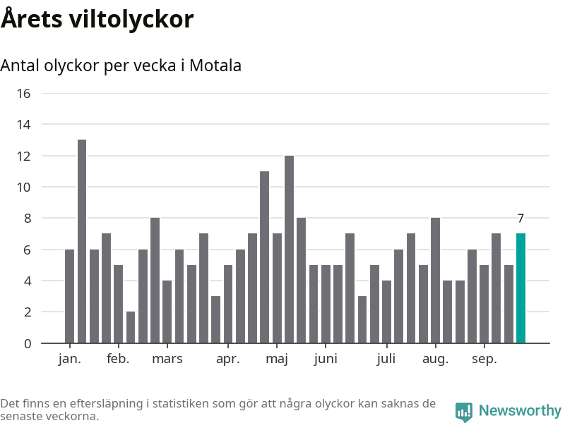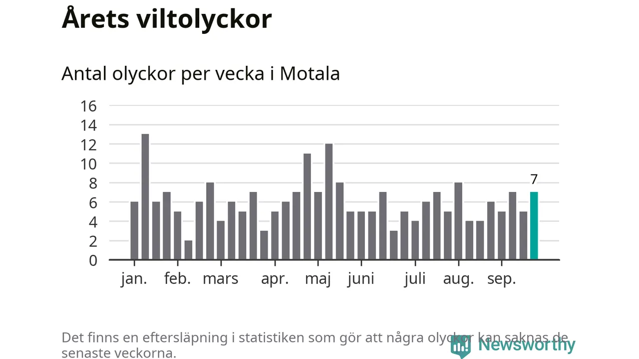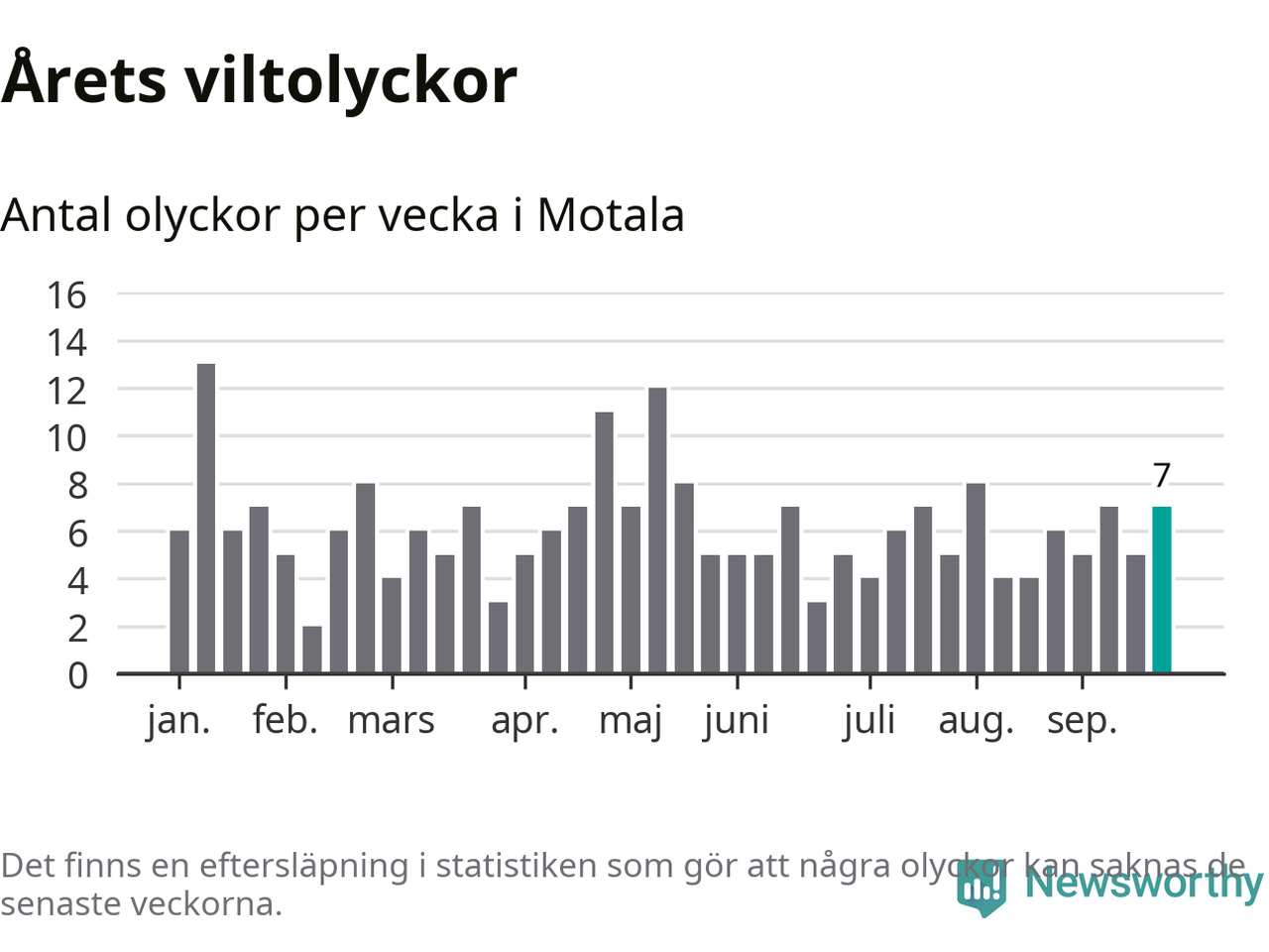 Hittills har sju viltolyckor rapporterats in i Motala kommun från vecka 39. Se listan här.