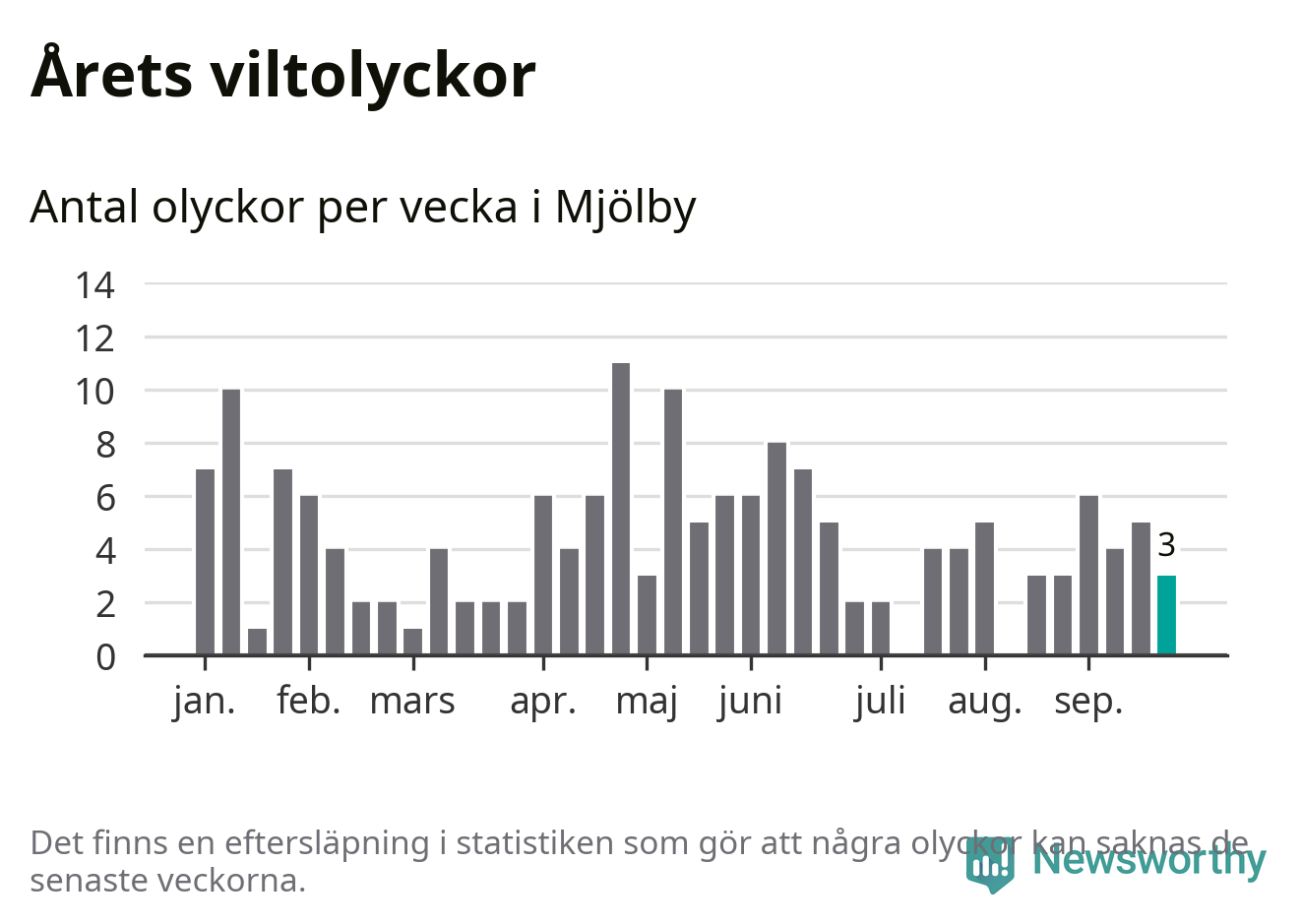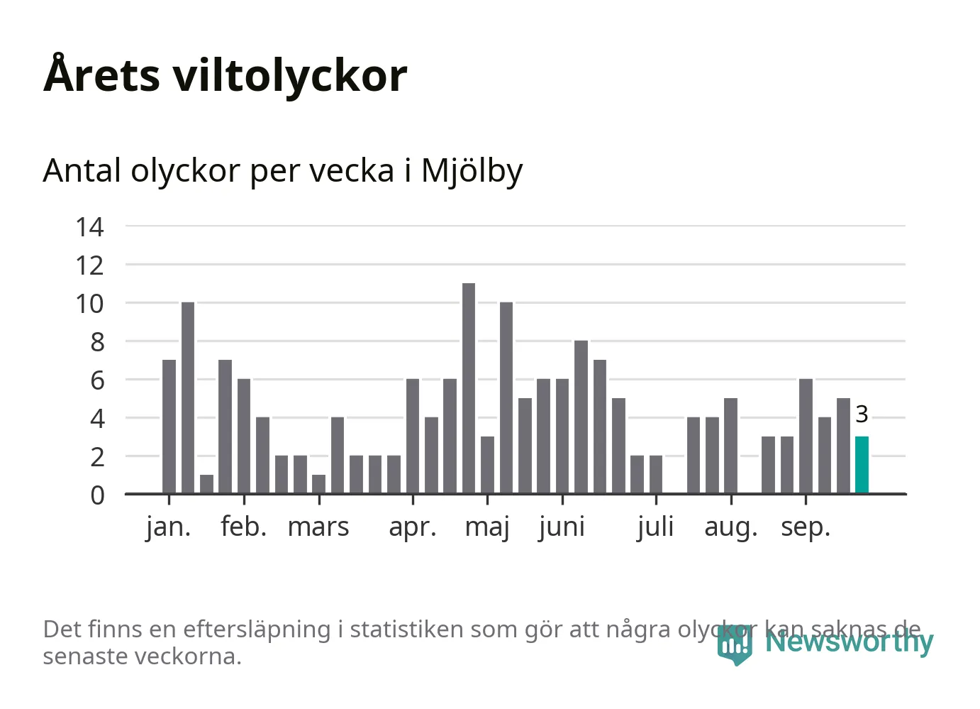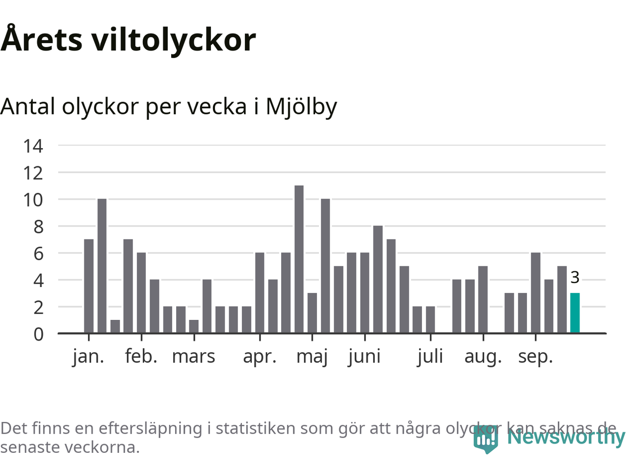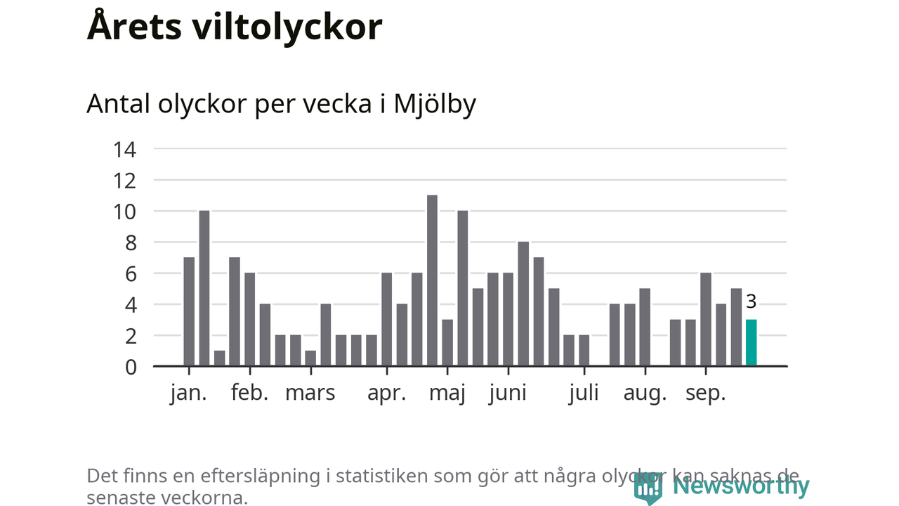 Hittills har tre viltolyckor rapporterats in i Mjölby kommun från vecka 39. Se listan här.